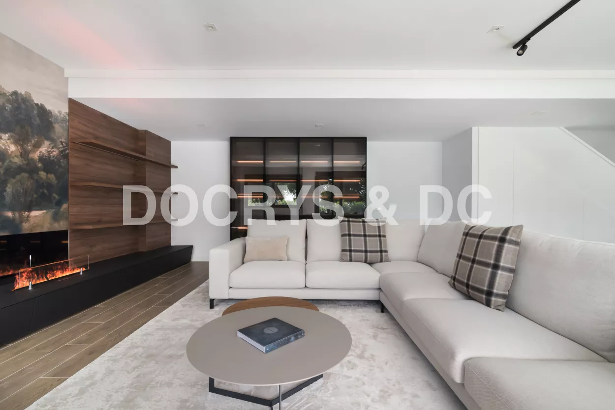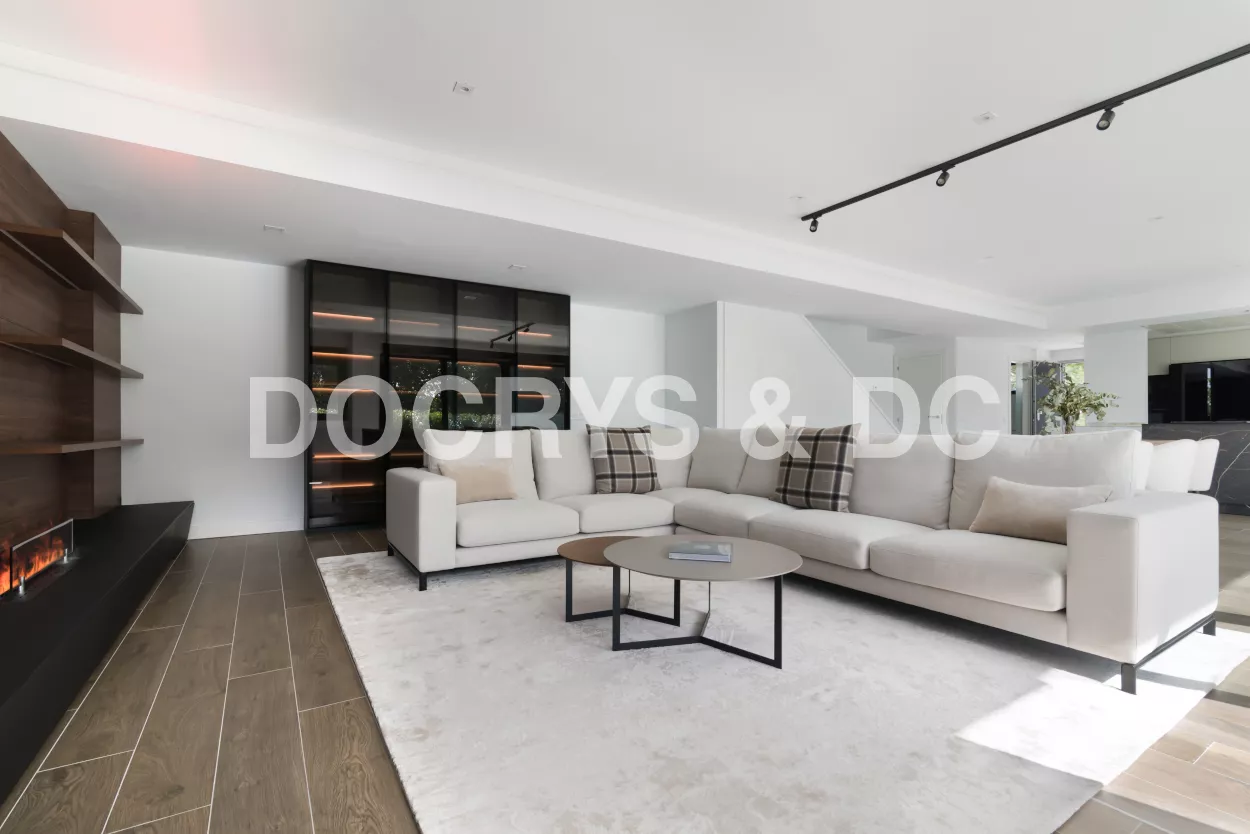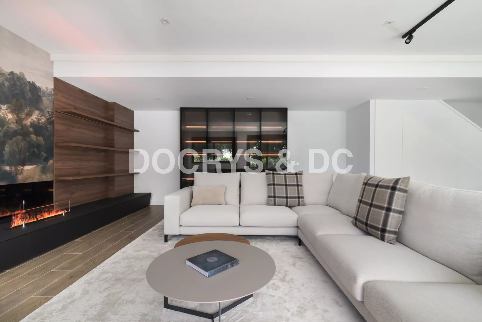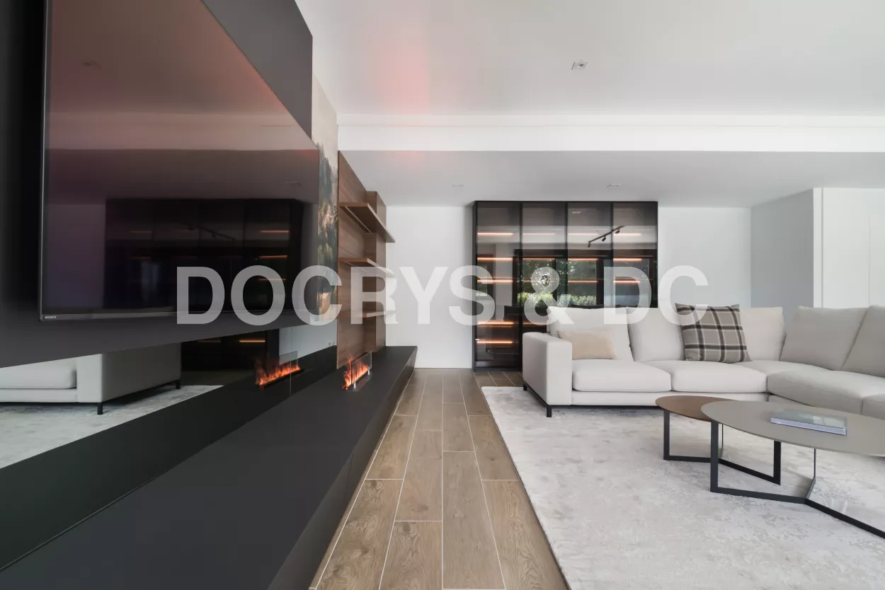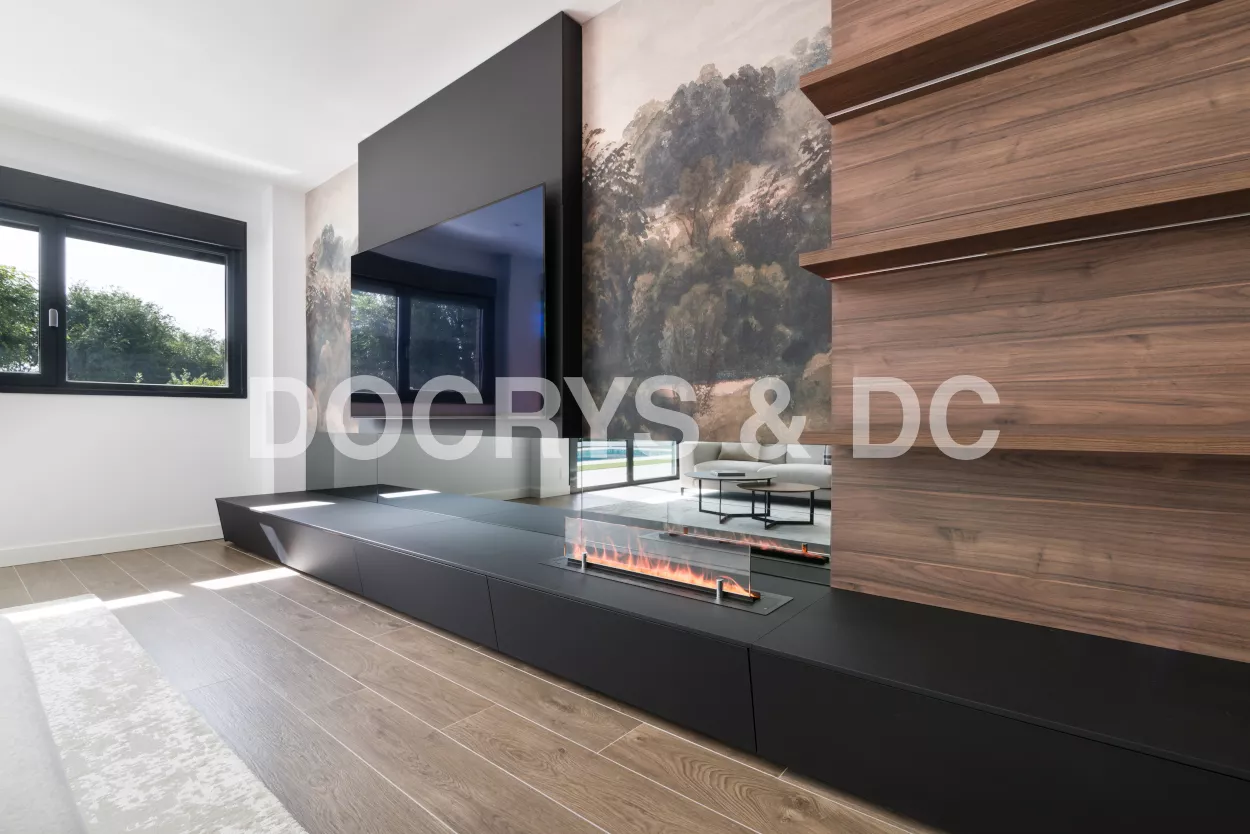 Un salón moderno de diseño con vitrina Santos