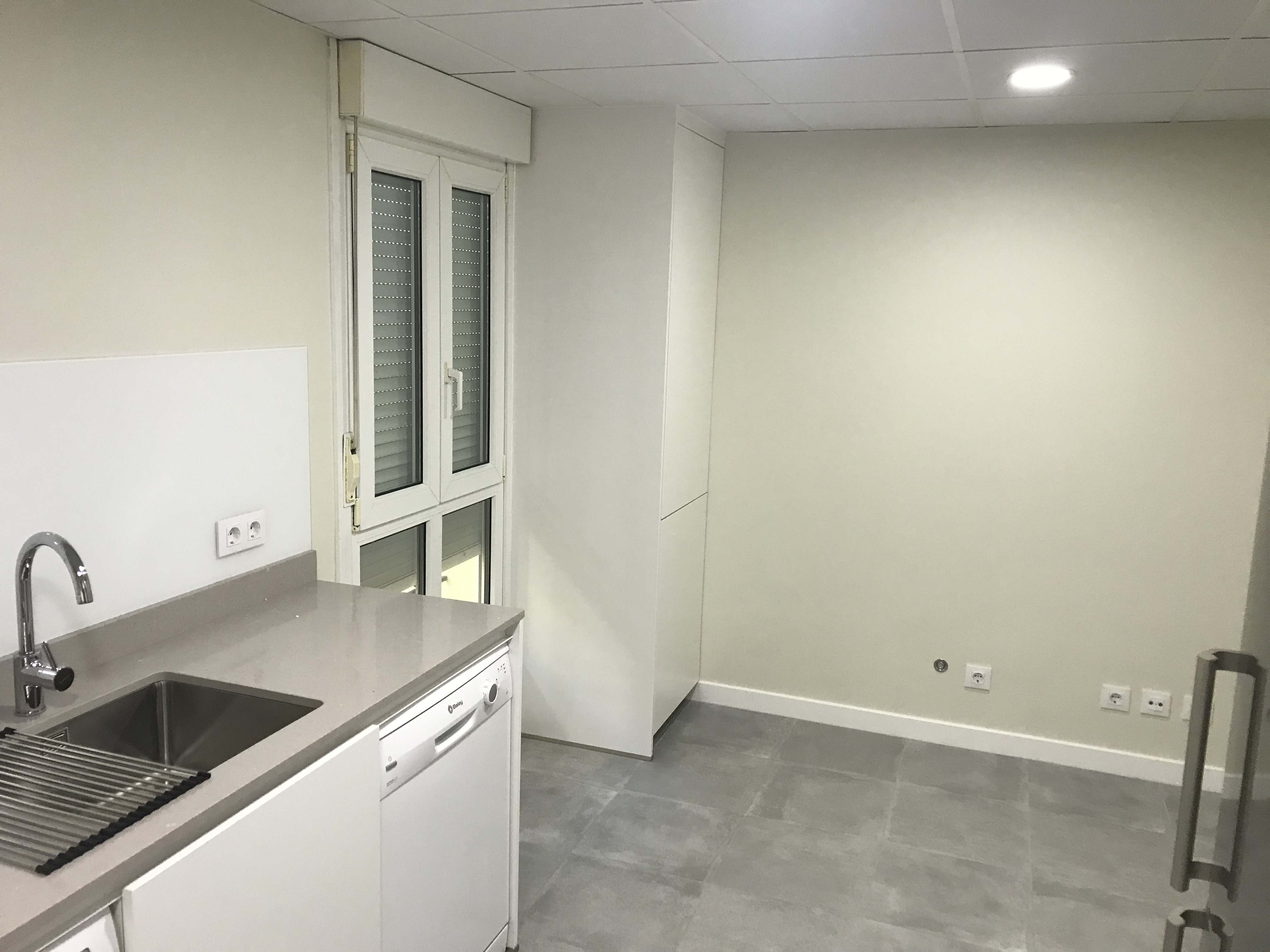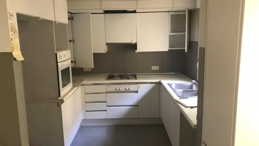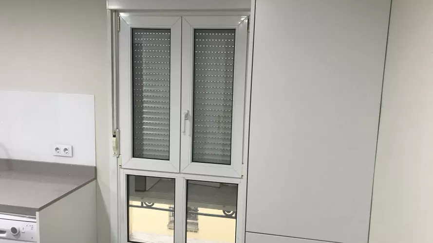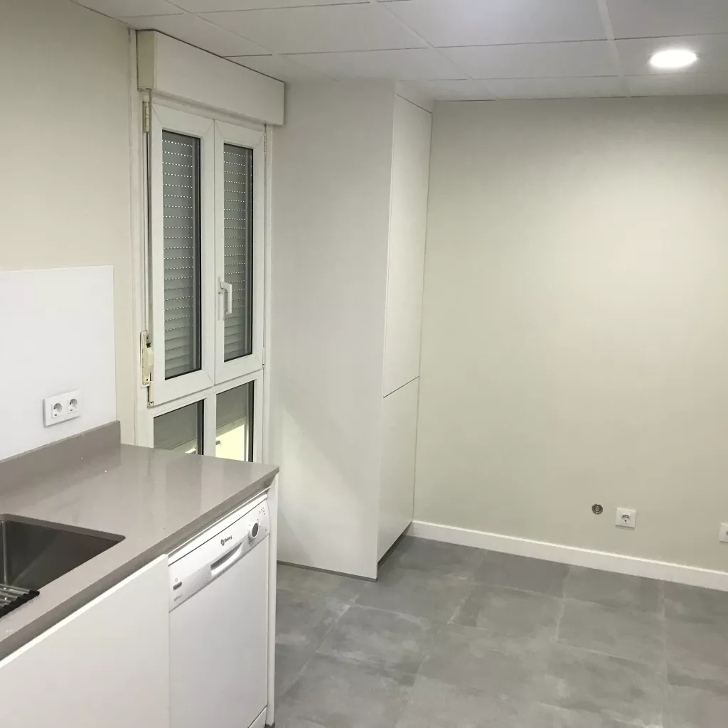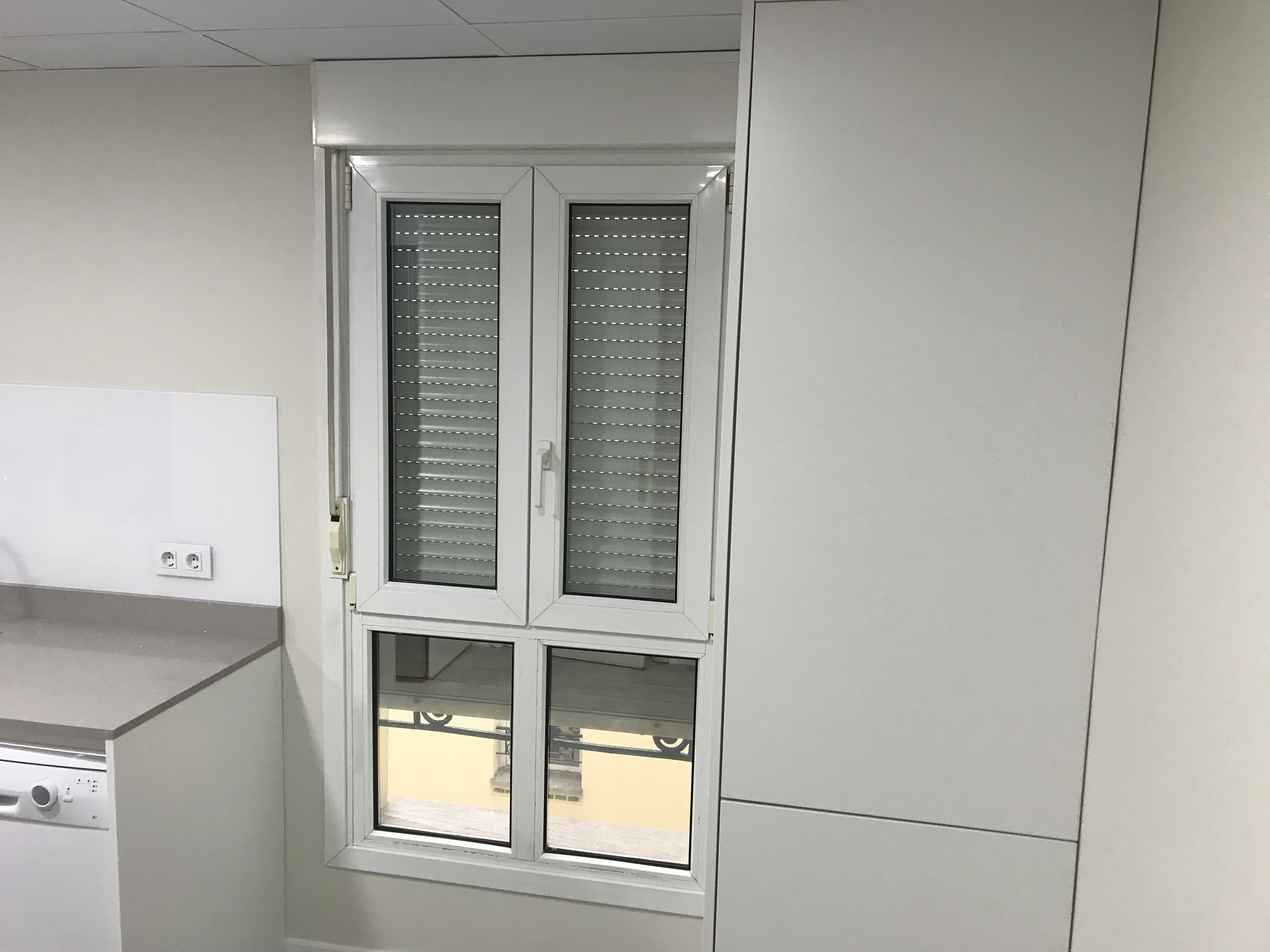 ¡Incluso en los espacios reducidos se puede hacer magia si el mobiliario y los profesionales te acompañan! En este proyecto de renovación de cocina en Madrid hemos apostado por los tonos blancos, como hacemos generalmente, ya que aumentan la amplitud visual del ambiente, pero los hemos combinado con un marrón frío que es mucho menos "sucio" al ojo. Este tono lo combinamos con la madera, que no tiene una excesiva calidez. De esta forma, una de las estrellas de la cocina, somo no puede ser de otra manera, es el mobiliario Santos, siempre elegante y con una de las mejores calidades del mercado. Los electrodomésticos Balay, nevera, placa, horno y microondas, agregan el contraste justo y dan al ambiente un toque moderno y funcional. Los interioristas de nuestro estudio de diseño apostaron por un equilibrio en cuanto a colores y materiales, dejando un ambiente lo más "desnudo" posible para que los inquilinos tengan libertad a la hora de decorar en el futuro el ambiente según sus necesidades y deseos. Los materiales utilizados en este proyecto de cocina son los siguientes: - MODELO: LINE 13 EN BAJOS ALTOS APERTURA LATERAL COLUMNAS PUSCH - MATERIAL: ESTRATIFICADO - ACABADO: BLANCO SEFF COLUMNAS Y BAJOS ROBLE BARRICA HORIZONTAL - ENCIMERA: SILESTONE ROYAL REFF PULIDO.
