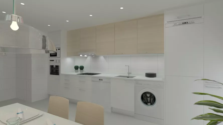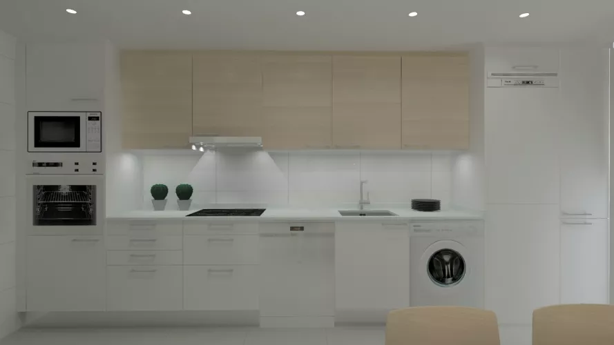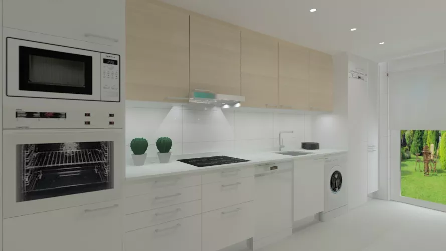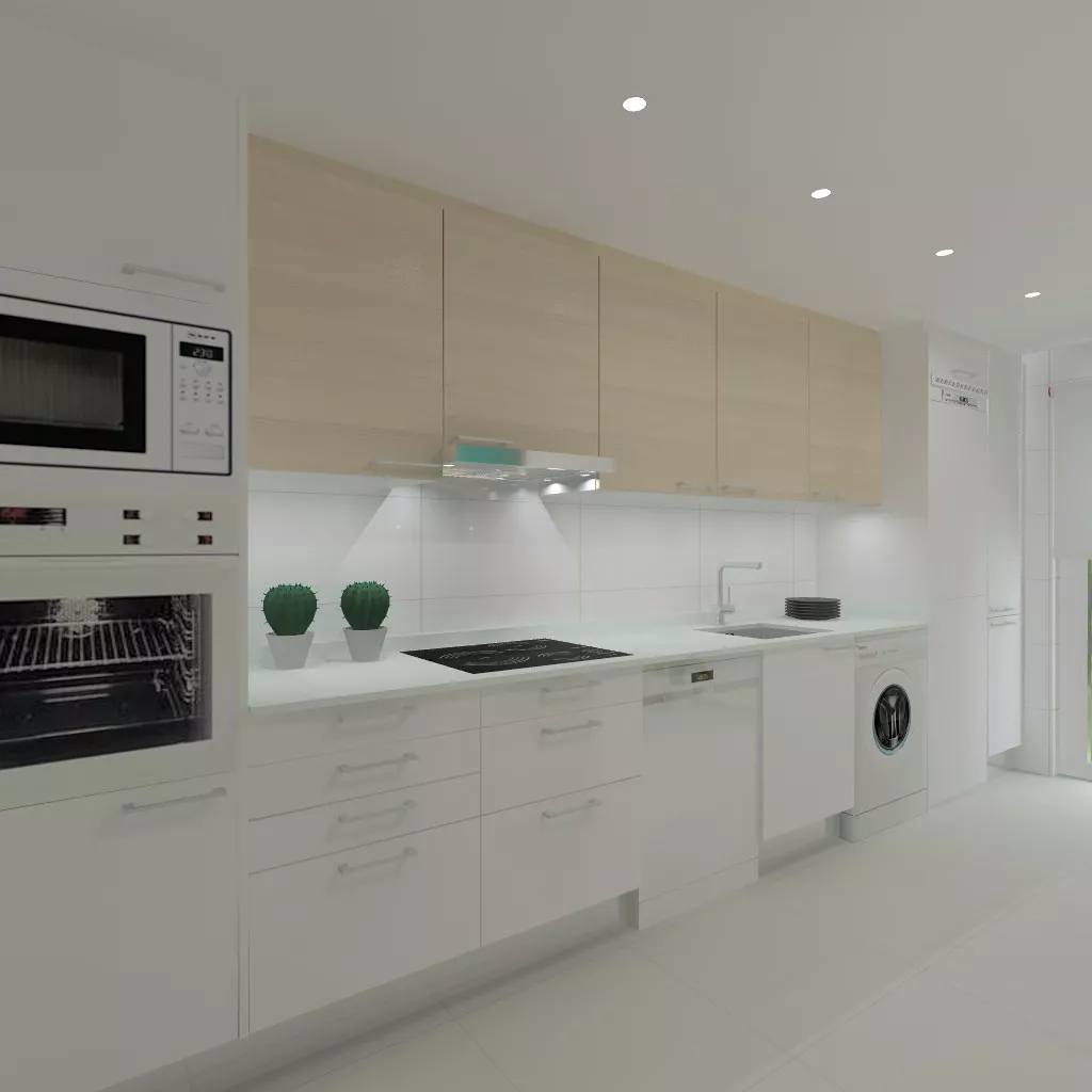 Aunque predomina el blanco, sus altos en madera Olmo y su modelo de puertas Ariane, otorgan una calidez que hacen que sea un diseño sofisticado, convirtiendo nuestra estancia en una cocina acogedora.