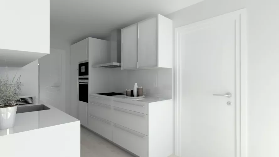 Aravaca | Cocina Santos | Modelo Ariane Estratificado Blanco | Encimera Silestone Blanco