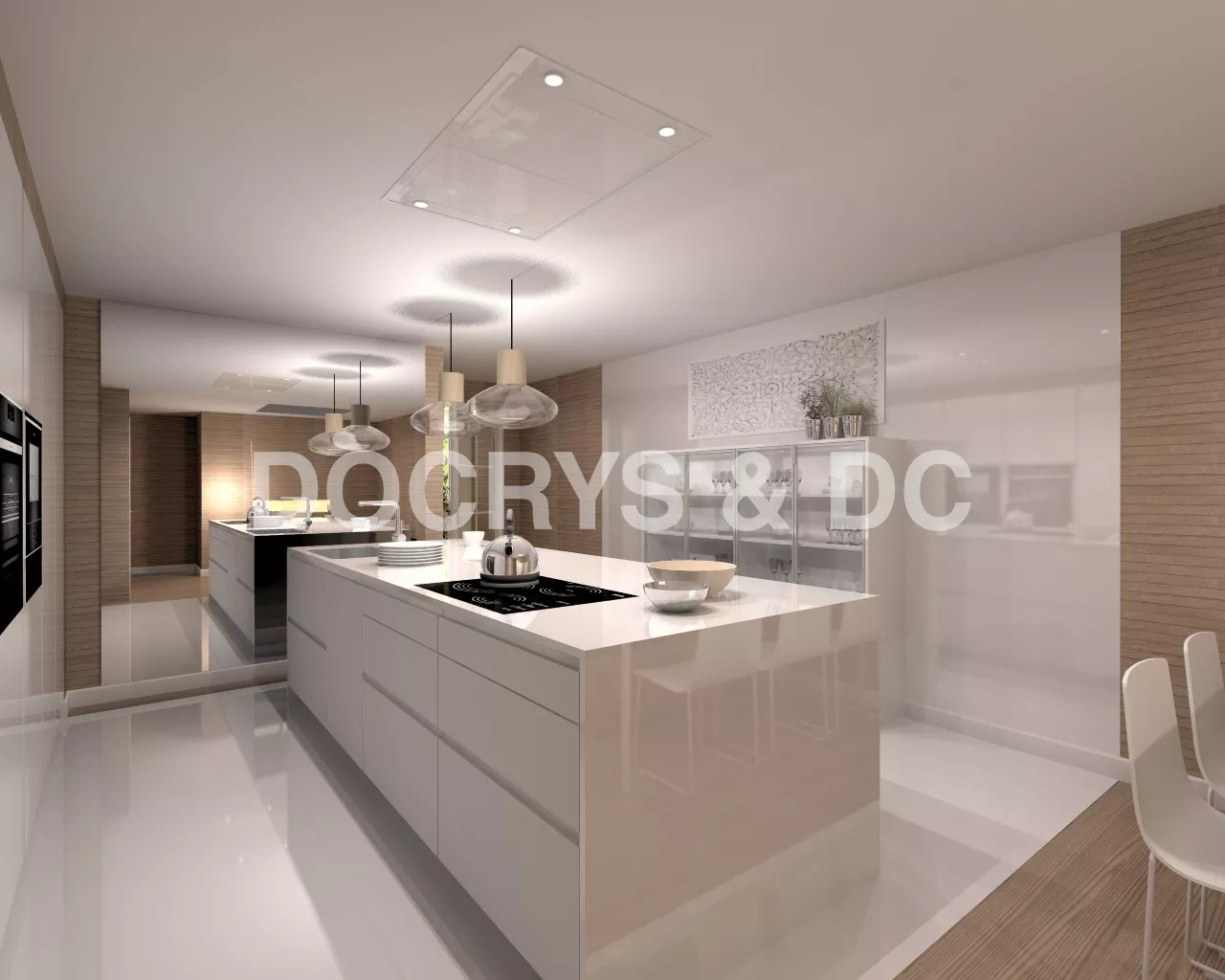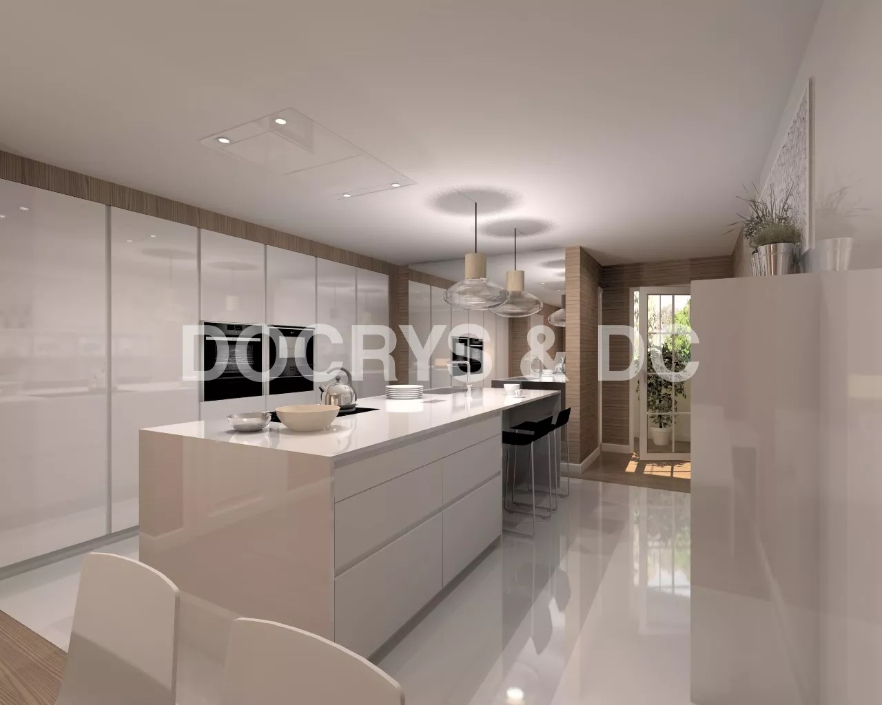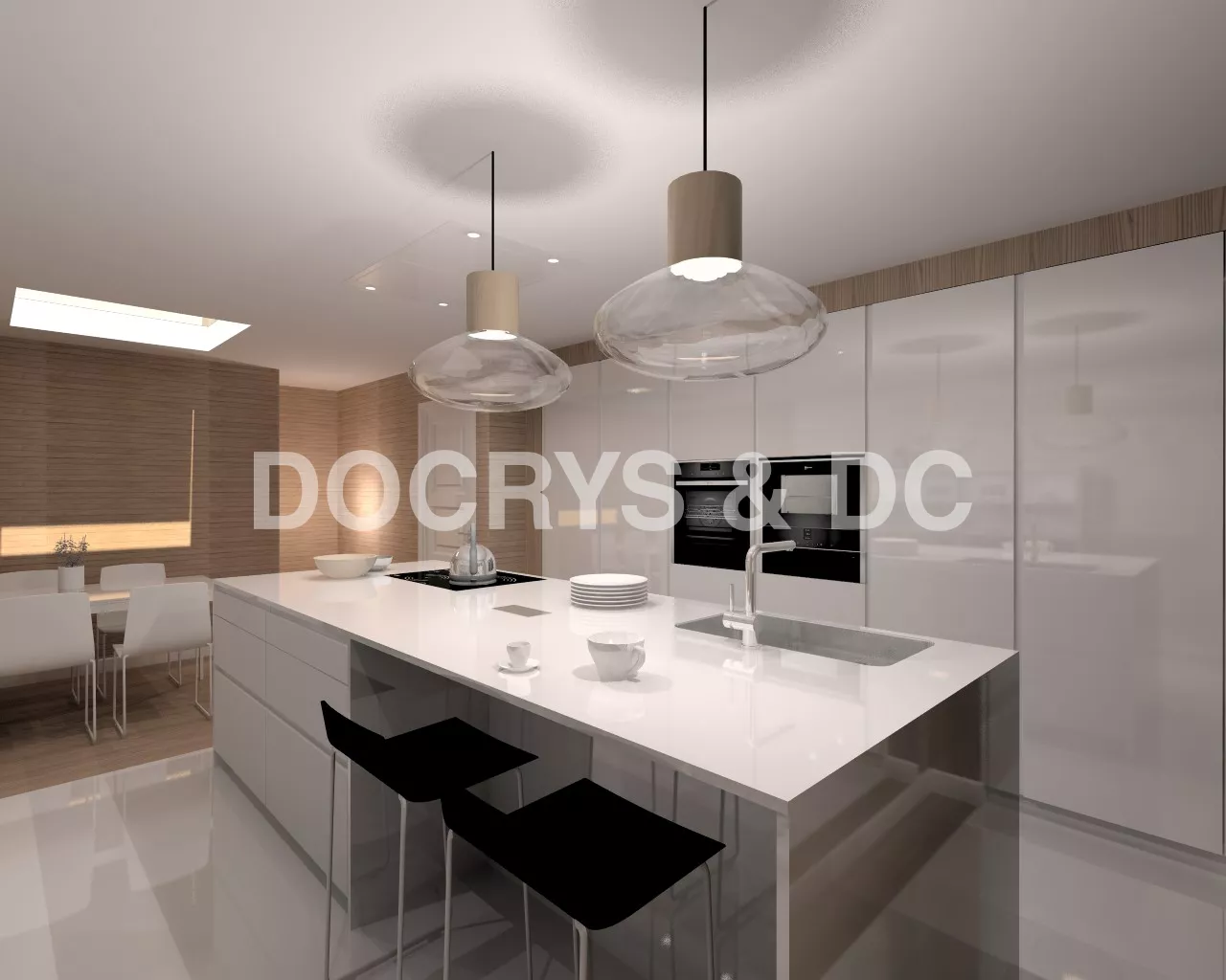 Aravaca | Cocina Santos | Modelo Line Laminado Blanco Brillo | Encimera Silestone Blanco