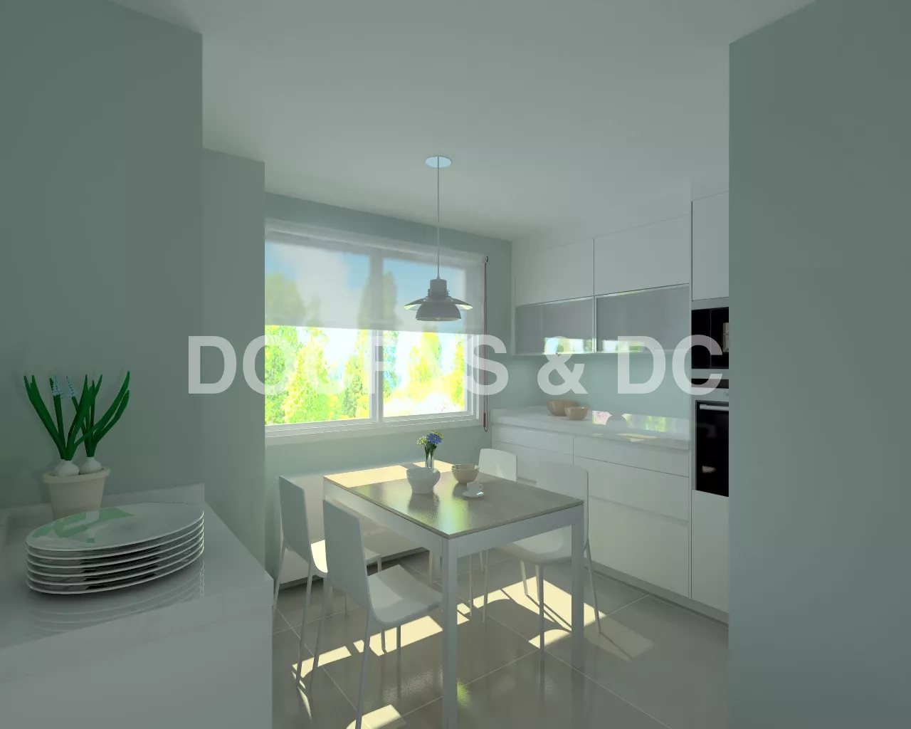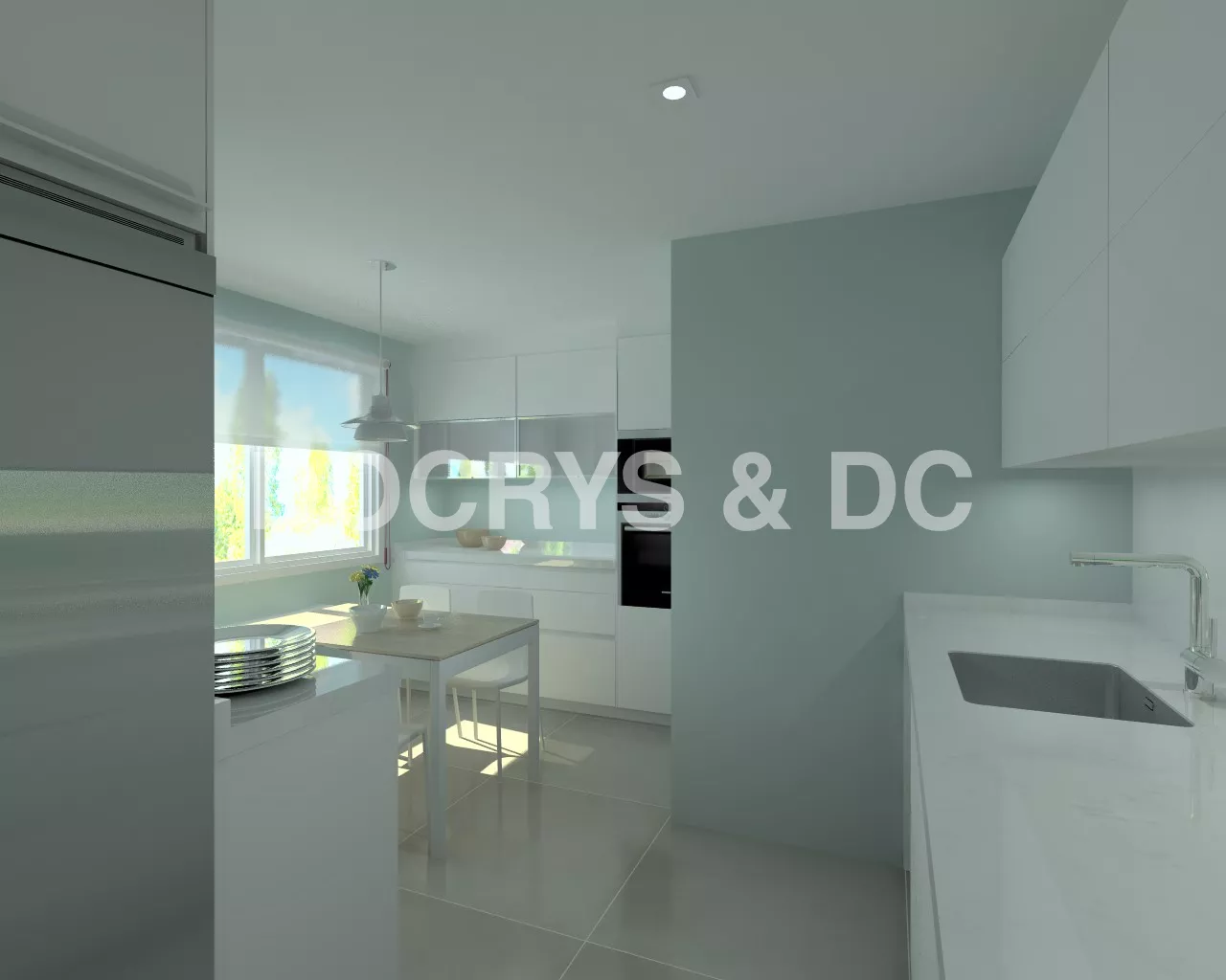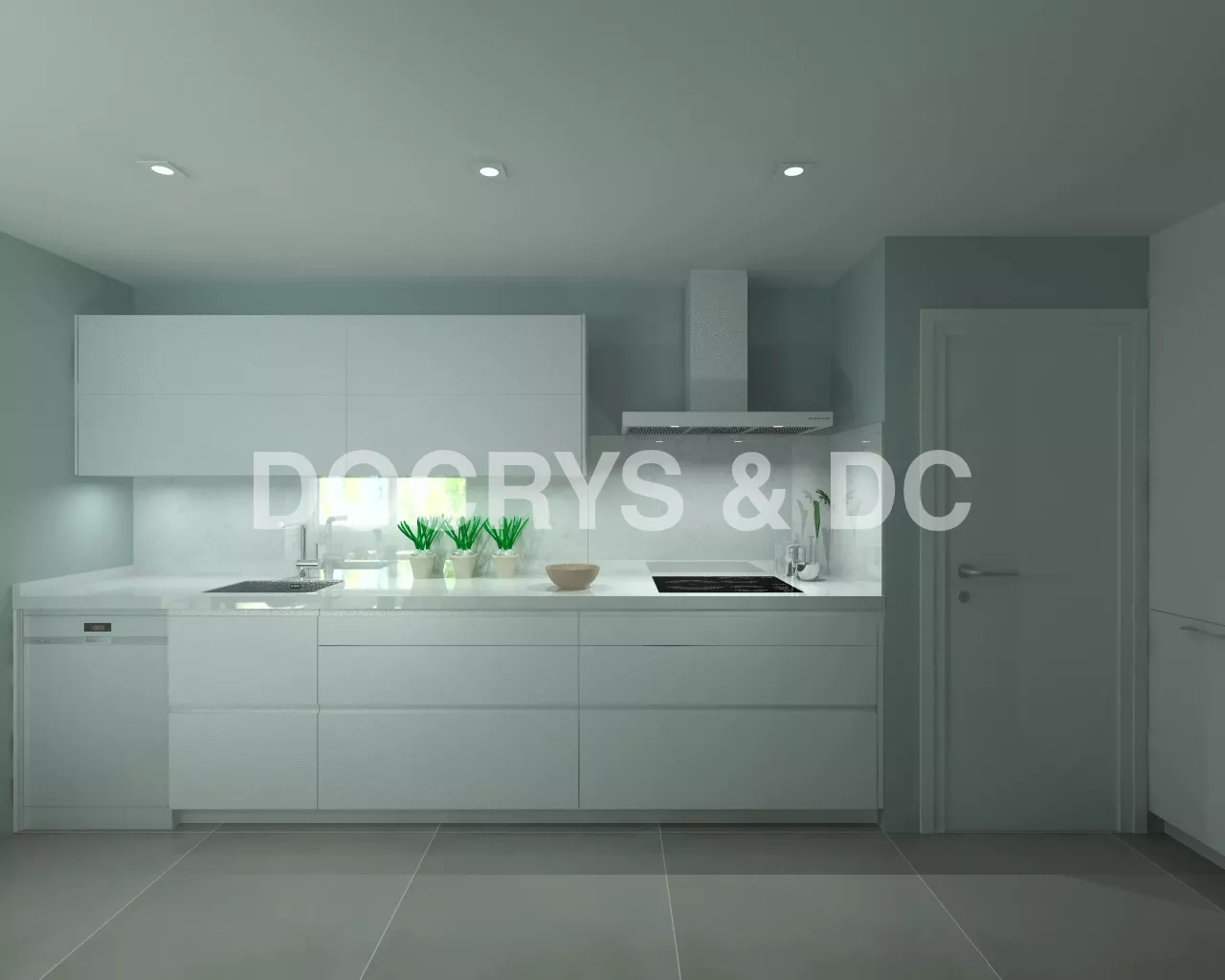 Aravaca | Cocina Santos | Modelo Line Laminado Blanco Brillo | Encimera Silestone Blanco