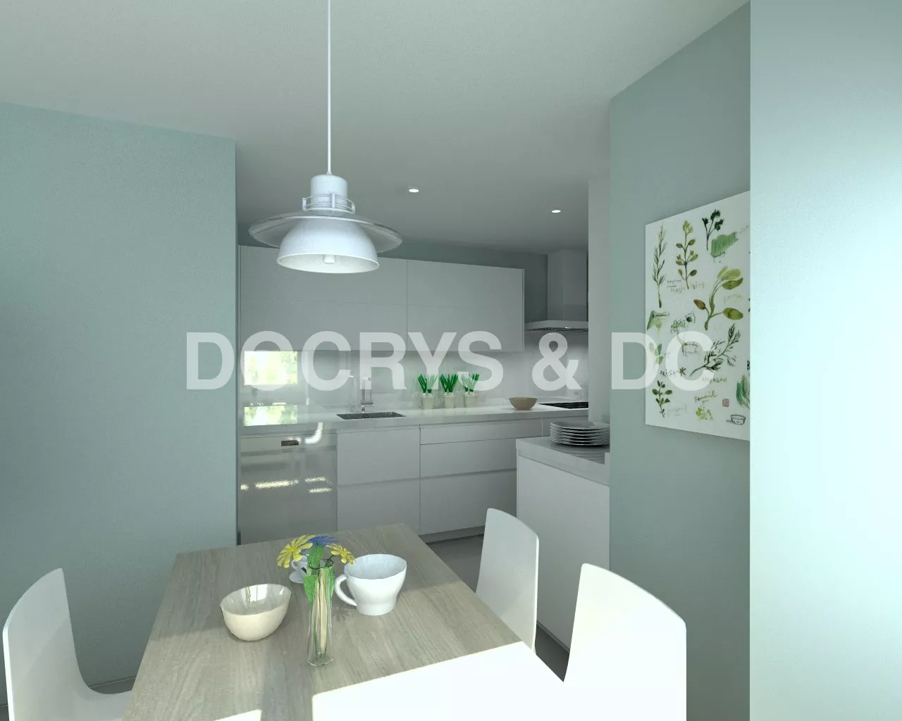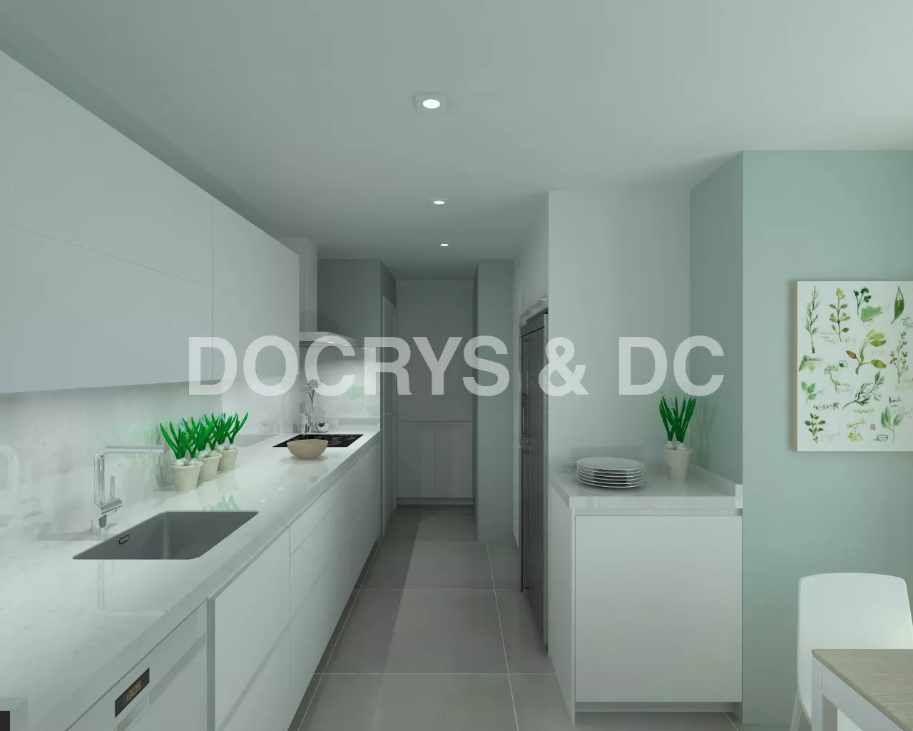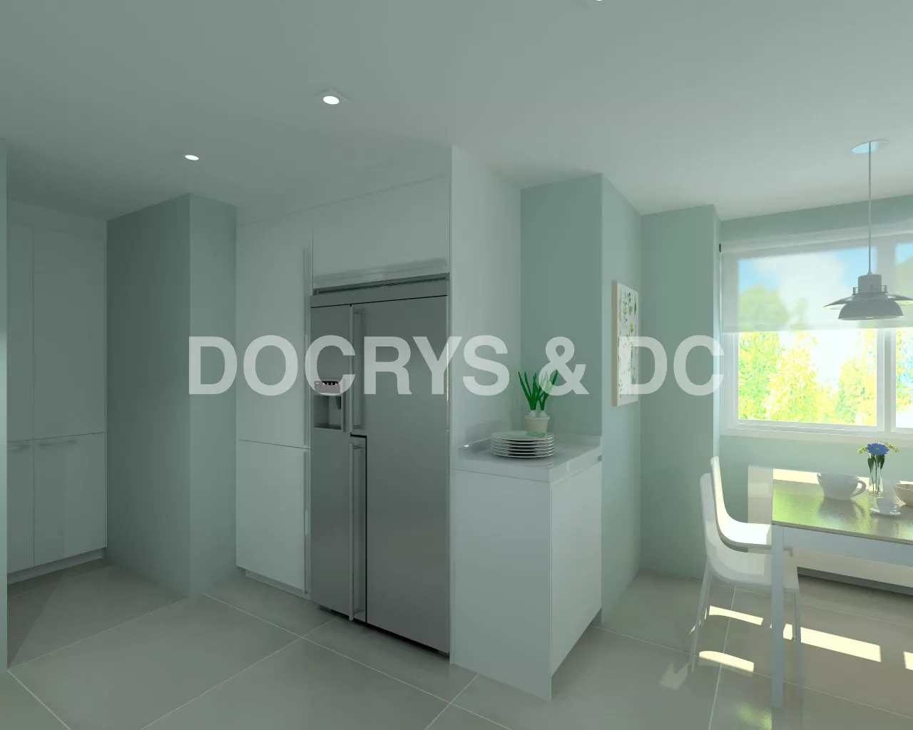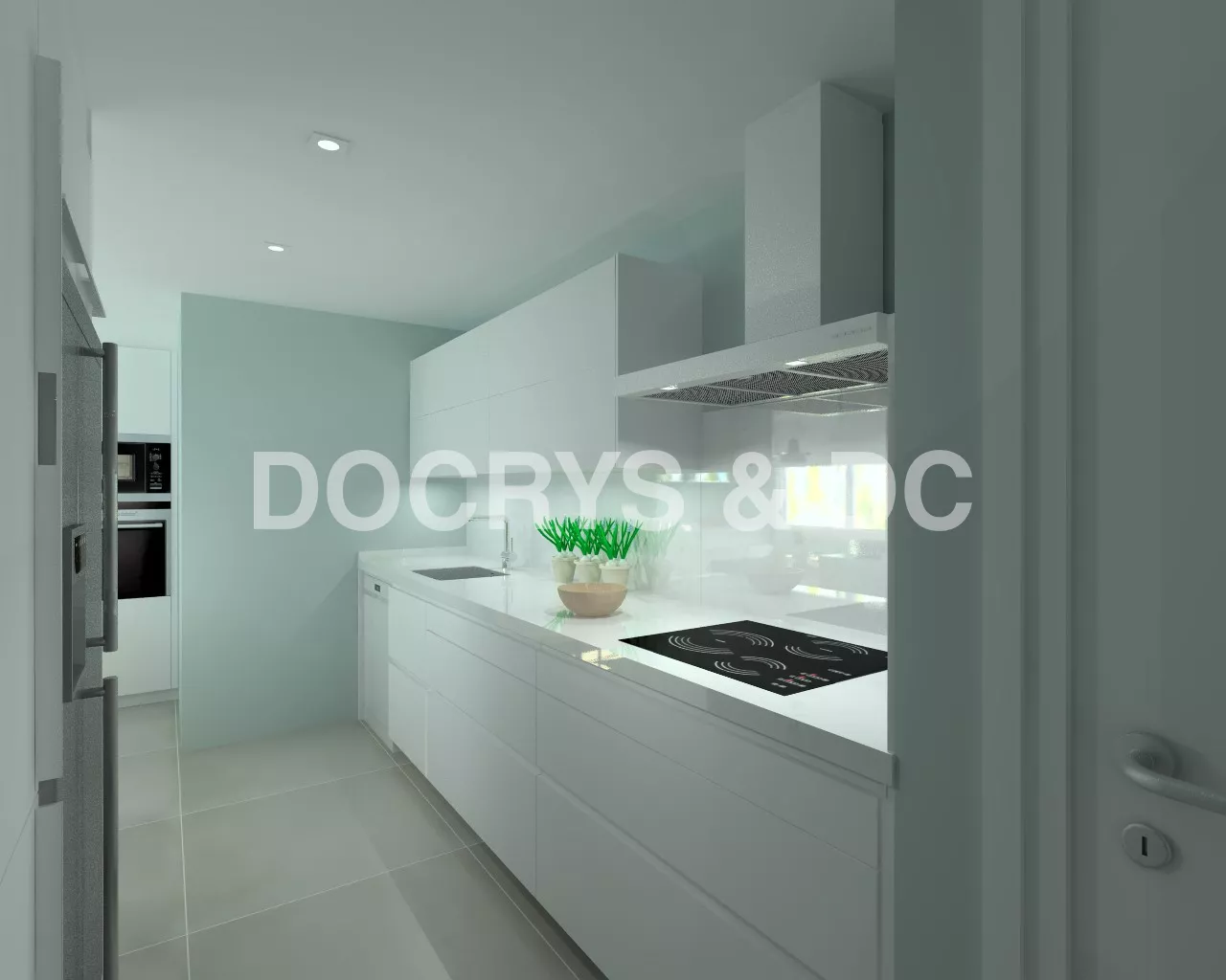 Aravaca | Cocina Santos | Modelo Line Laminado Blanco Brillo | Encimera Silestone Blanco