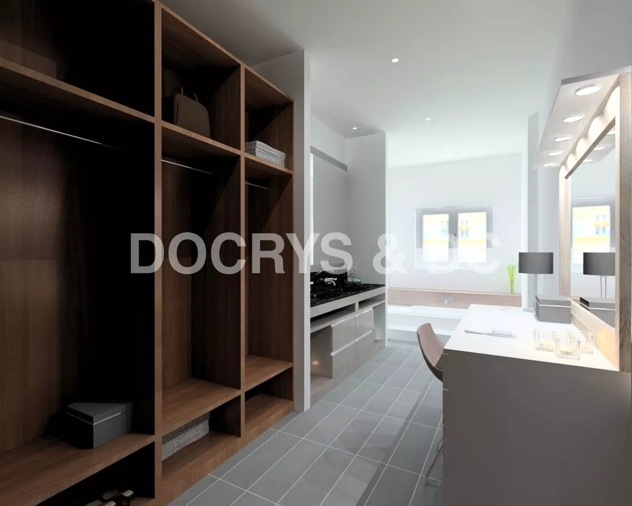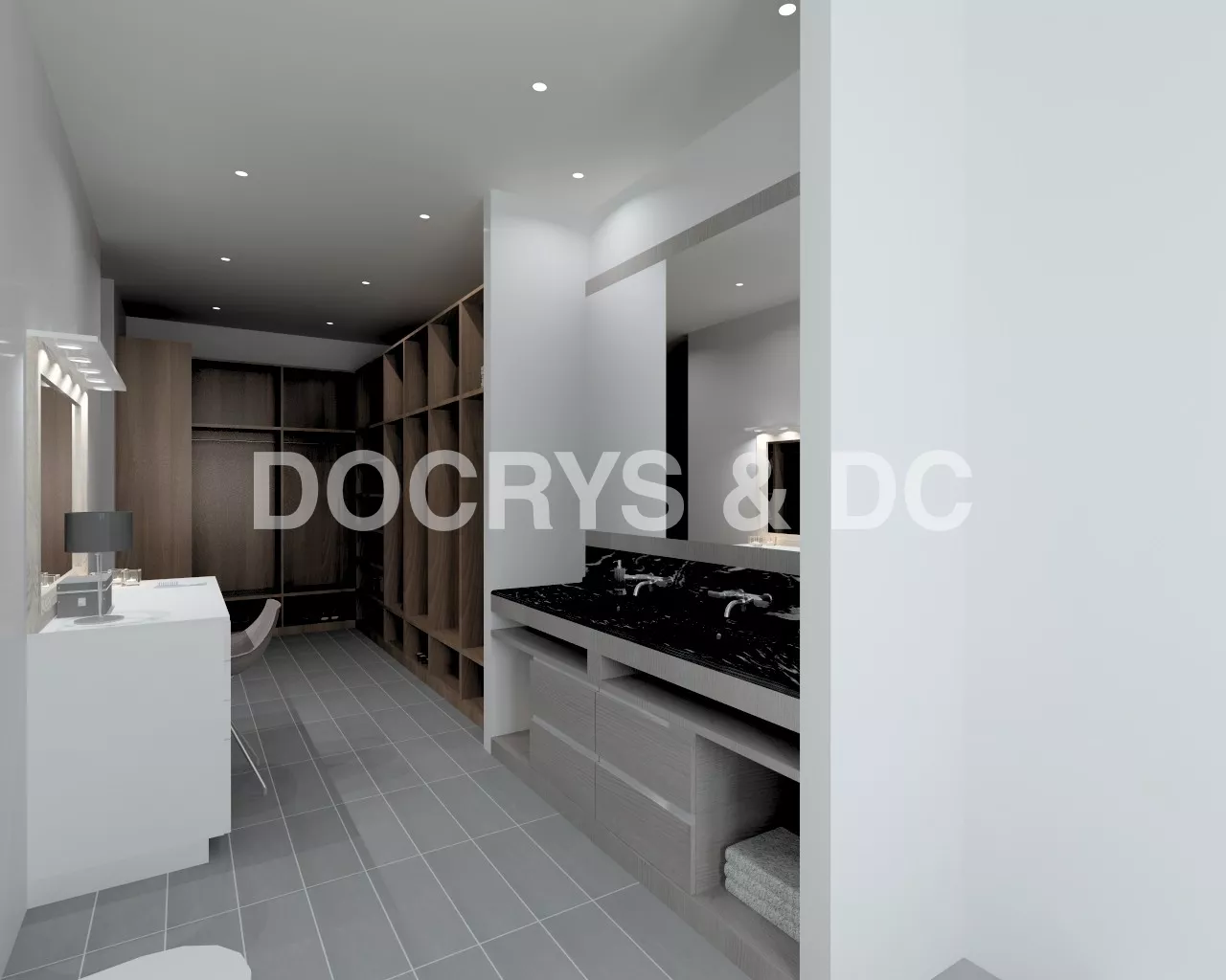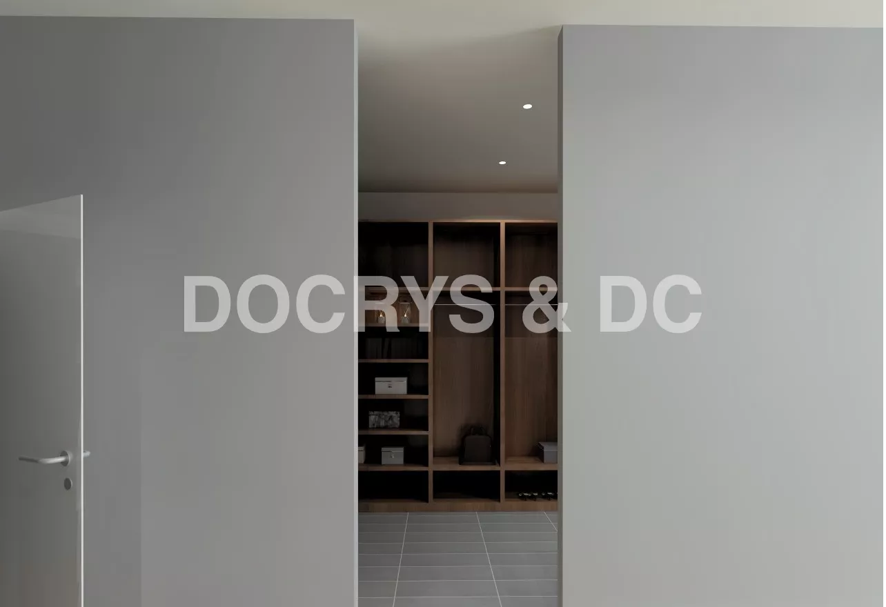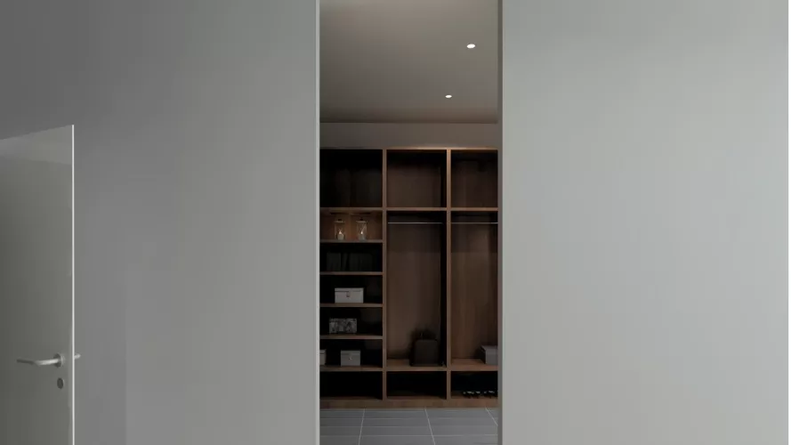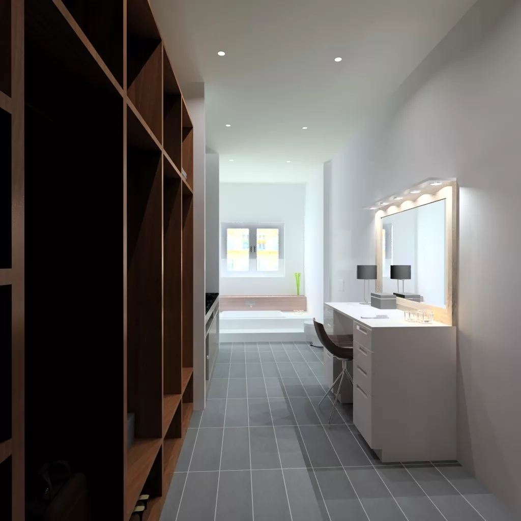 En el diseño de este vestidor moderno con lavabo integrado, intentamos crear un espacio que plasmará toda la personalidad de los usuarios.