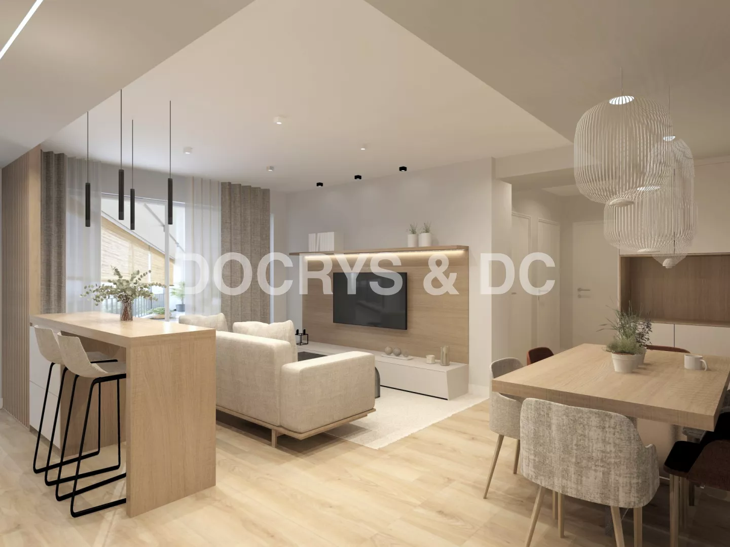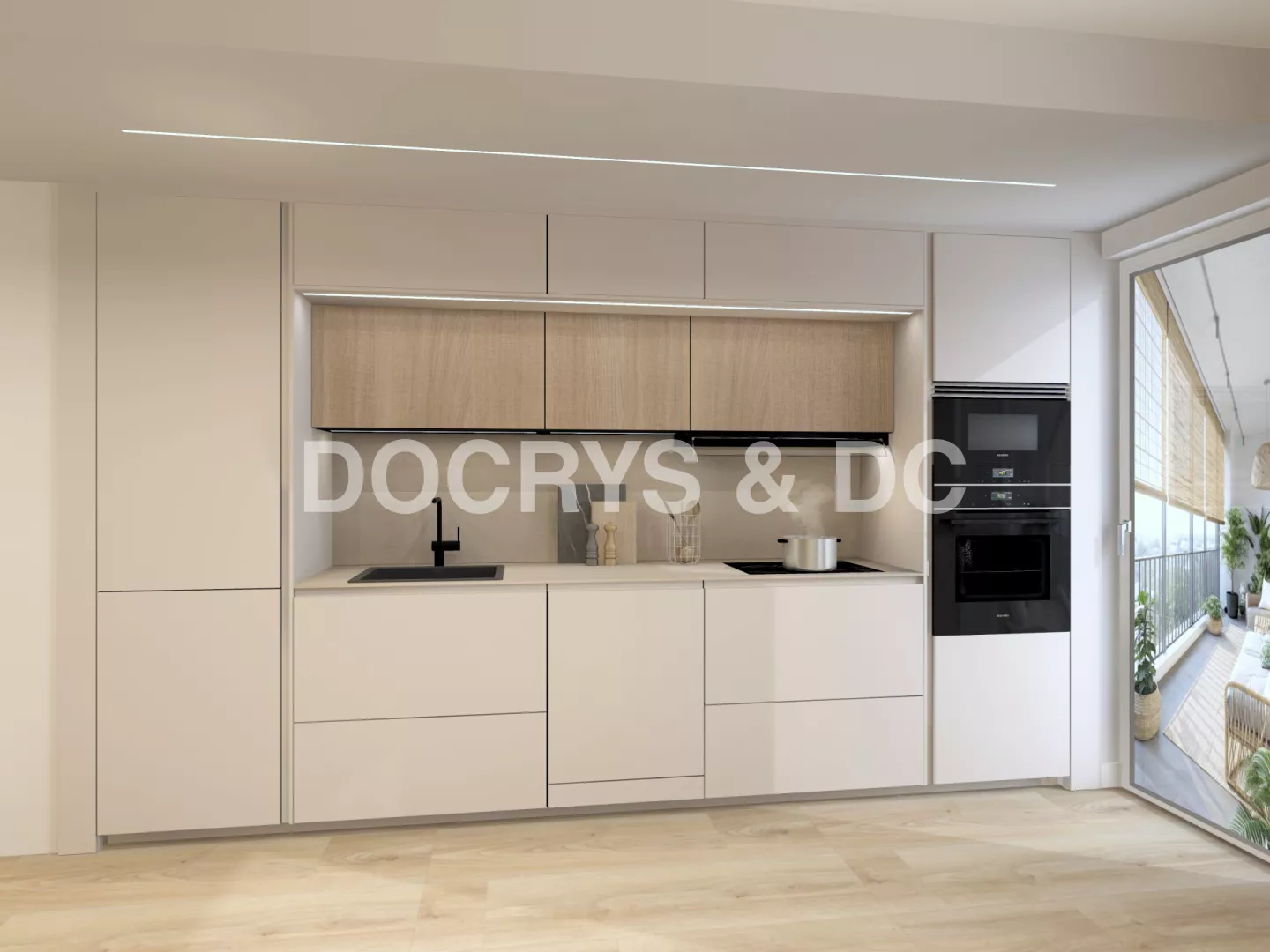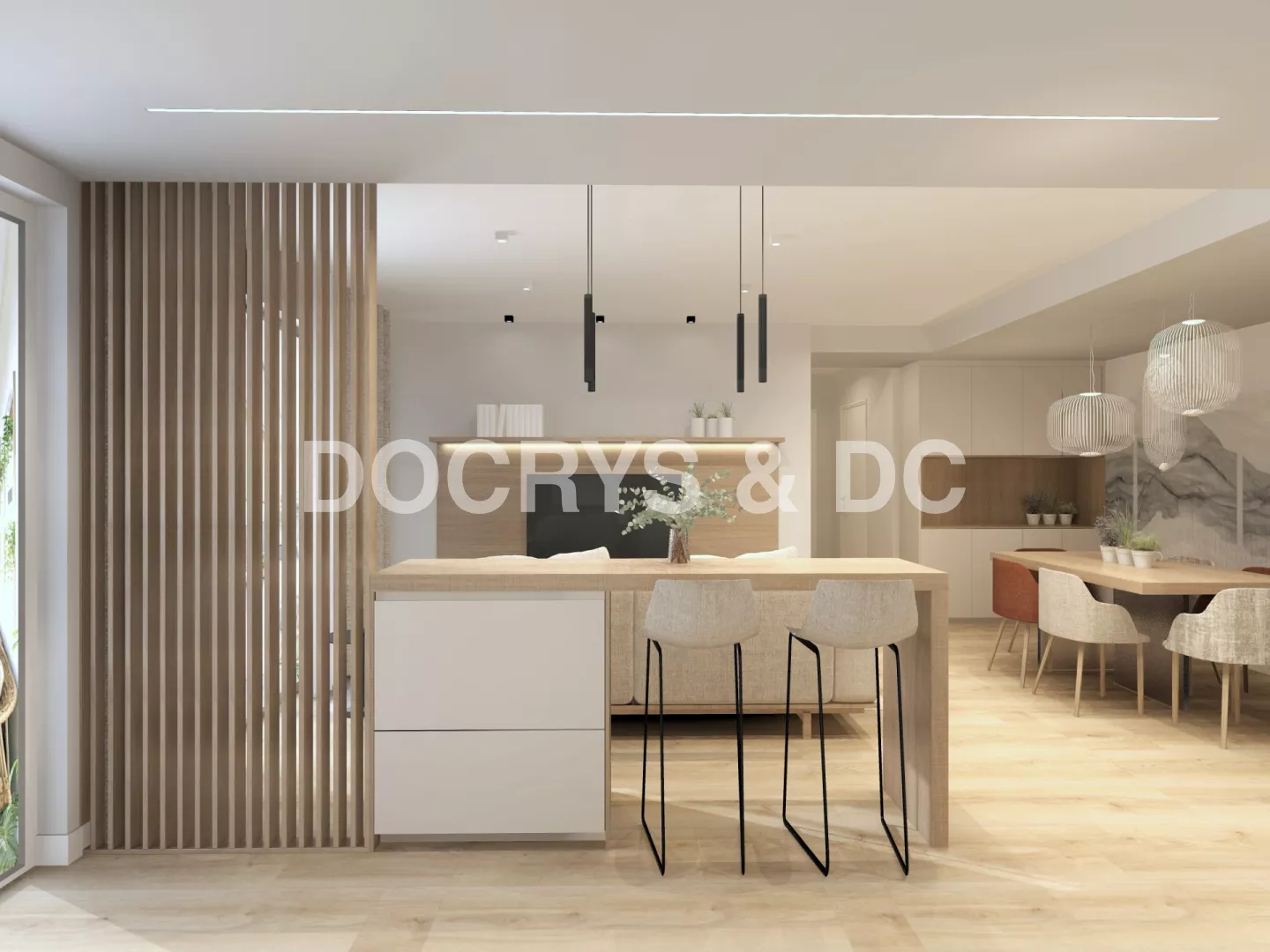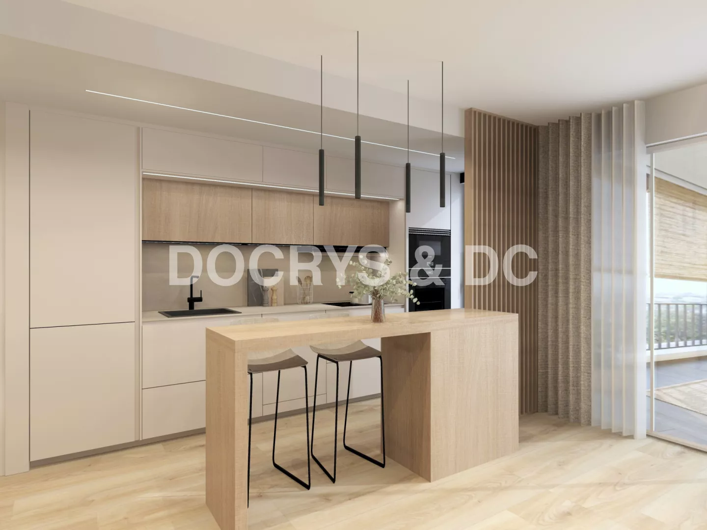 Gracias a los grandes ventanales, la luz natural inunda el espacio, realzando la claridad de los materiales y potenciando la conexión con el exterior. El resultado es un ambiente abierto, luminoso y sofisticado, donde conviven en perfecta armonía la cocina, el comedor y el salón. En conjunto, esta propuesta combina modernidad, calidez y practicidad, ofreciendo un entorno ideal para el día a día y para disfrutar en compañía.