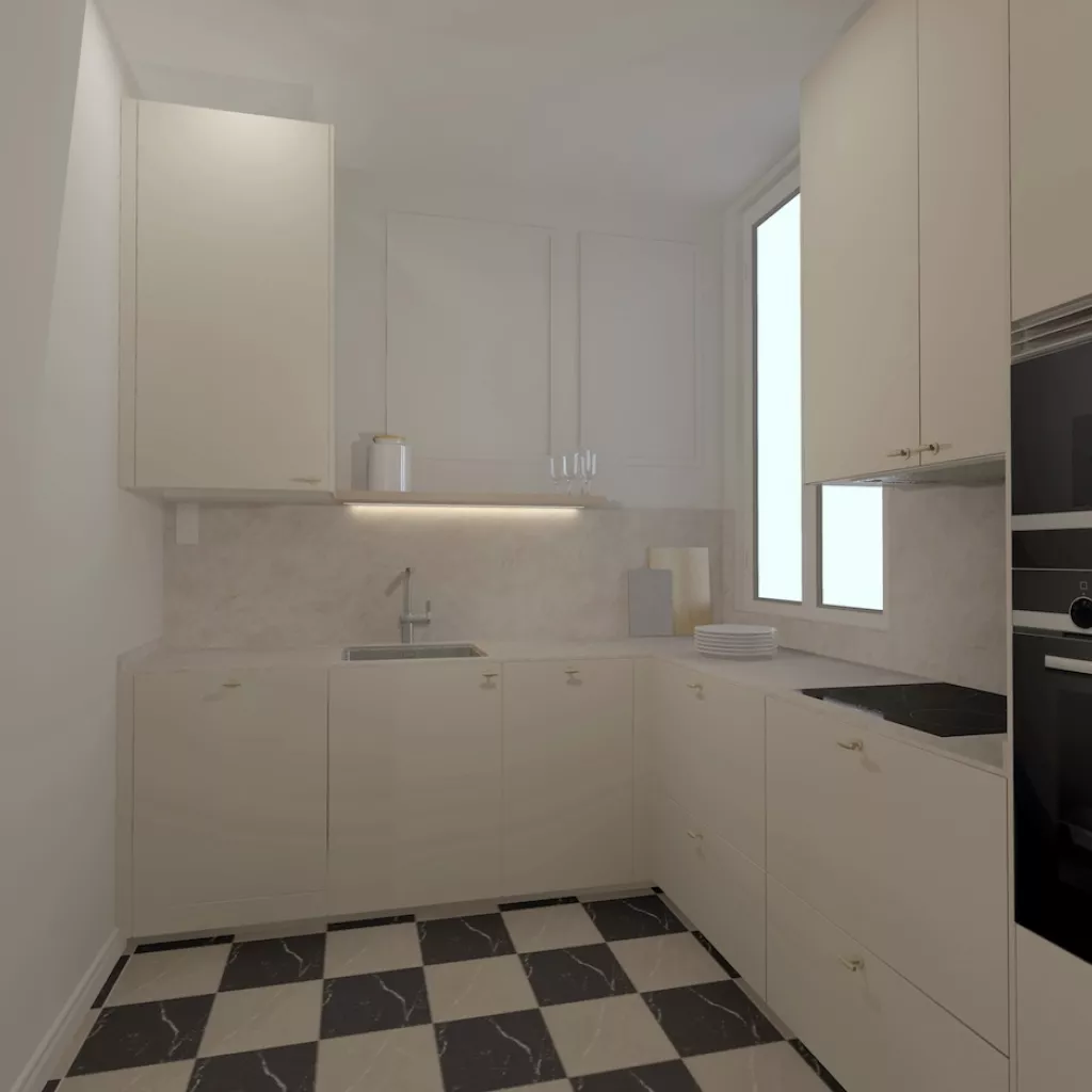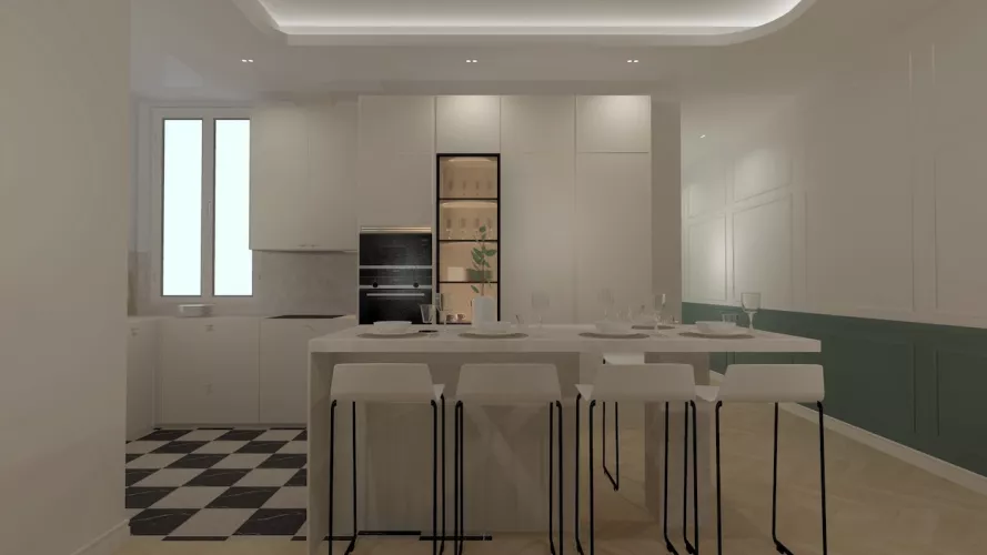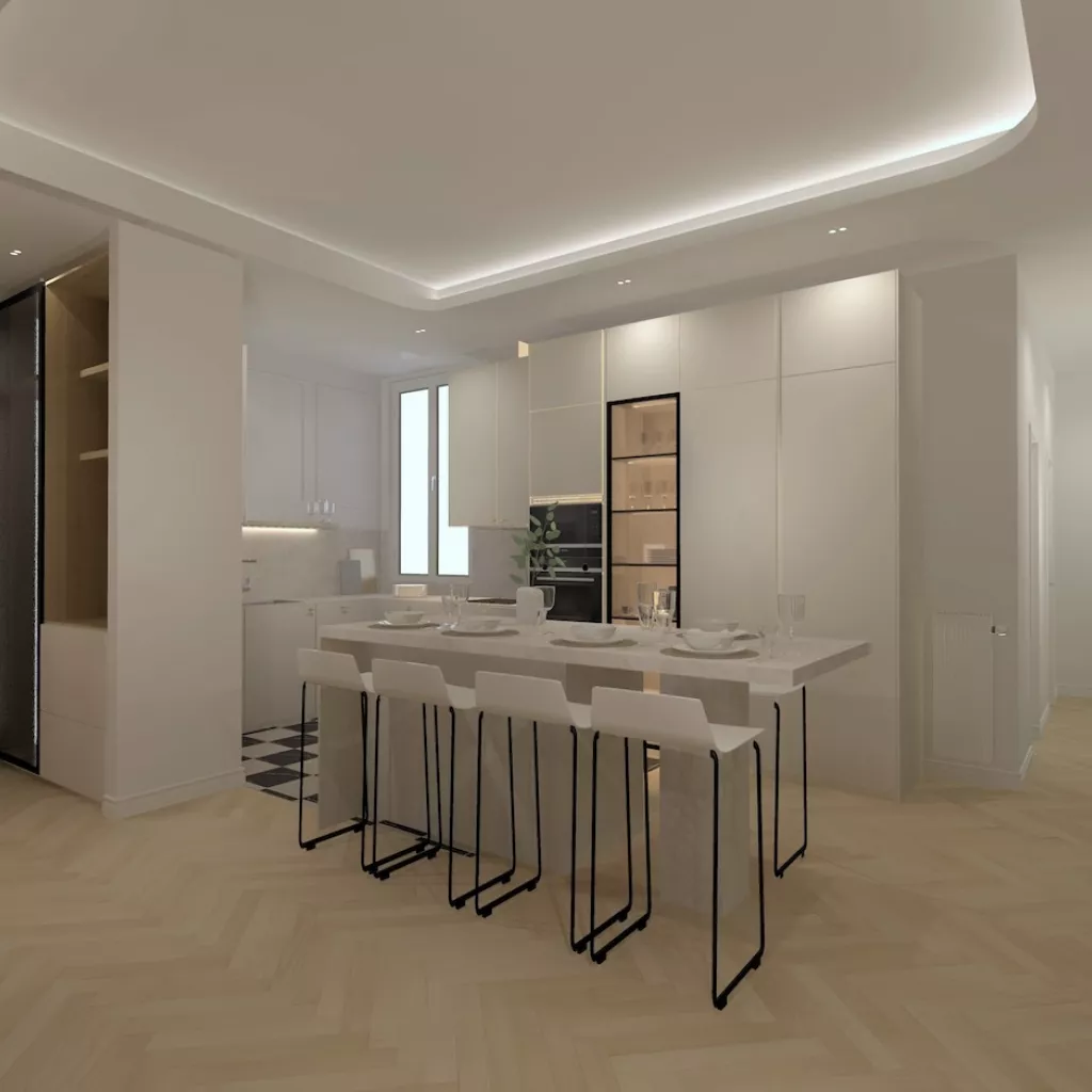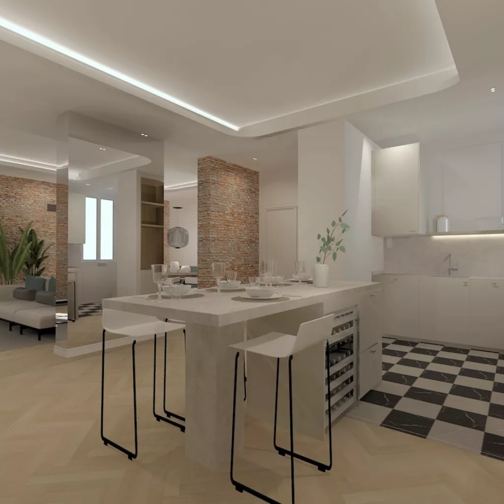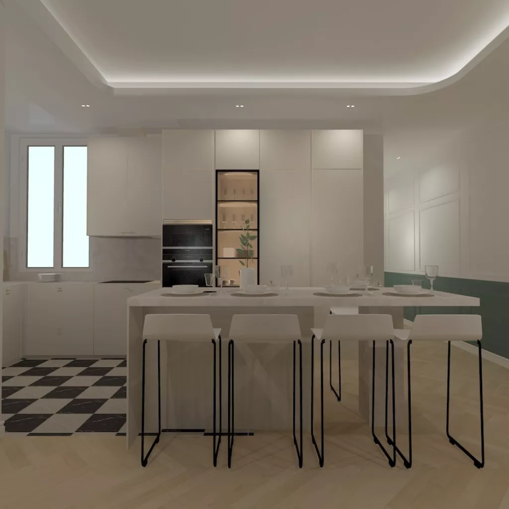 Al ser una cocina abierta al salón, el espacio se ve más grande de lo que realmente es, se gana una sensación de amplitud siendo esto primordial es ganar dimensión al espacio.