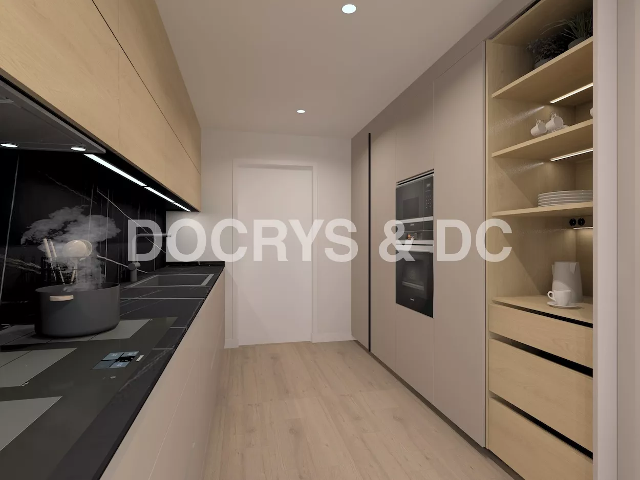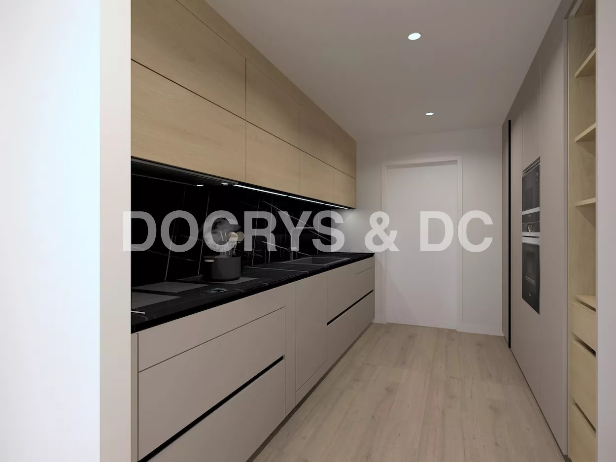 La cocina tiene dos zonas, la descrita anteriormente y otra zona más diáfana con mesa para cuatro comensales donde se puede comer o realizar todo tipo de actividades. Este es un gran ejemplo de cómo amortizar el espacio en una cocina alargada.