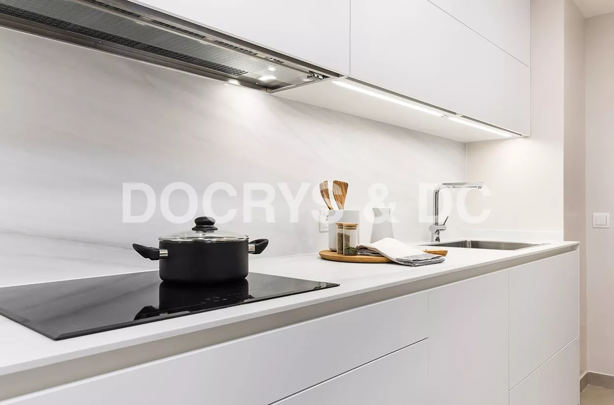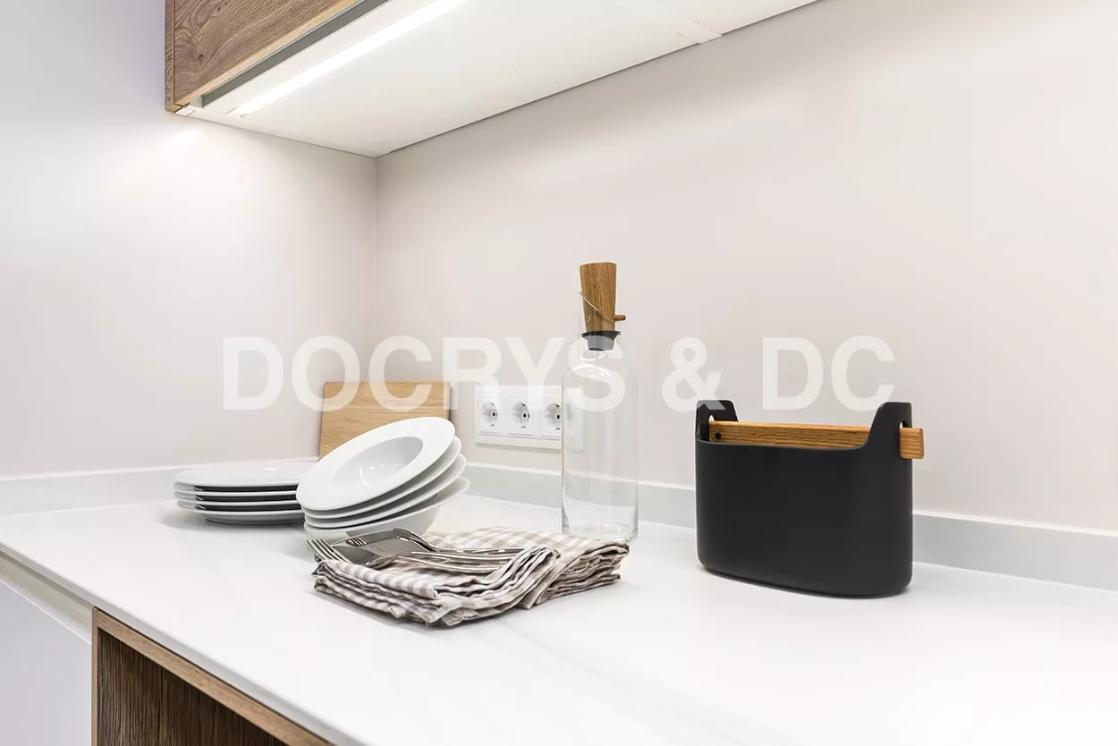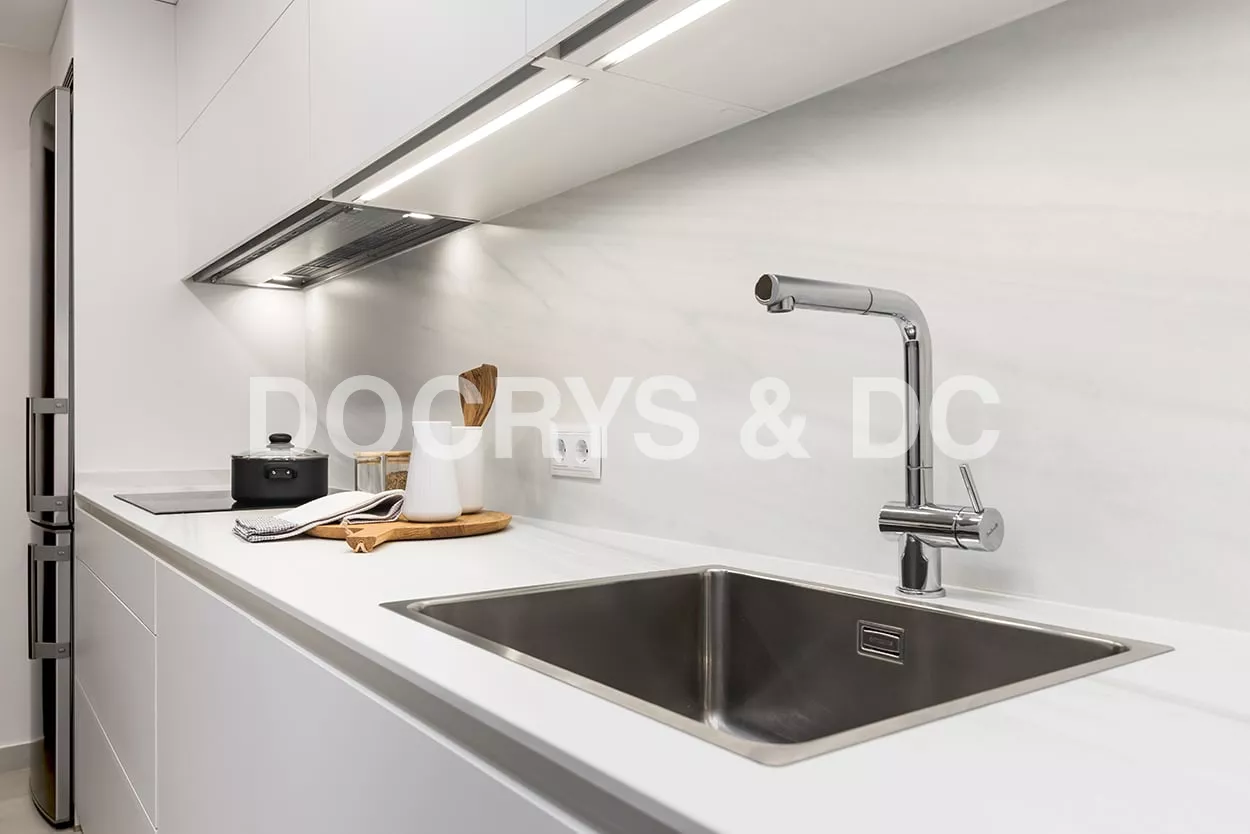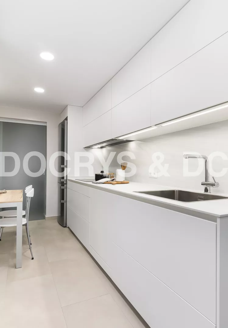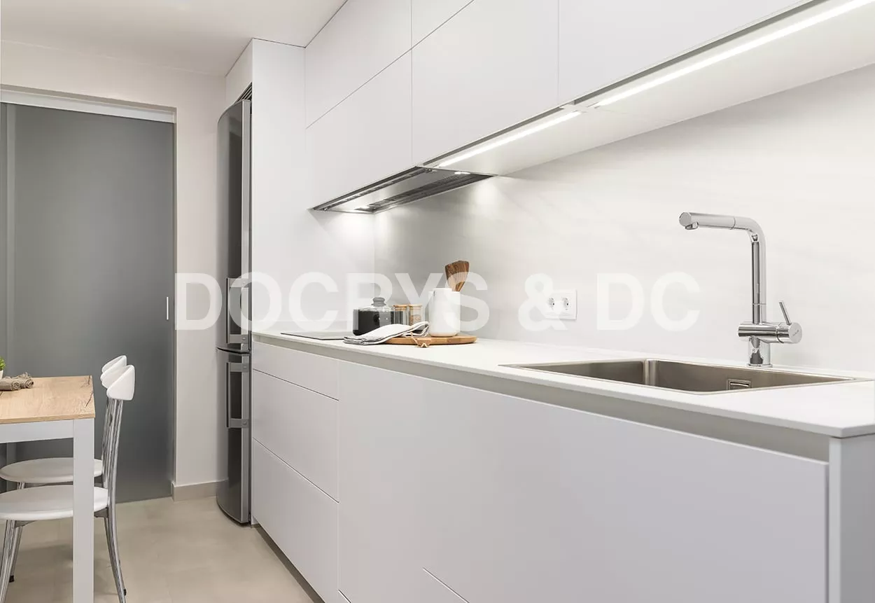 El otro frente de pequeñas dimensiones, está destinado como zona de desayunador donde se pueden ubicar los pequeños electrodomésticos.