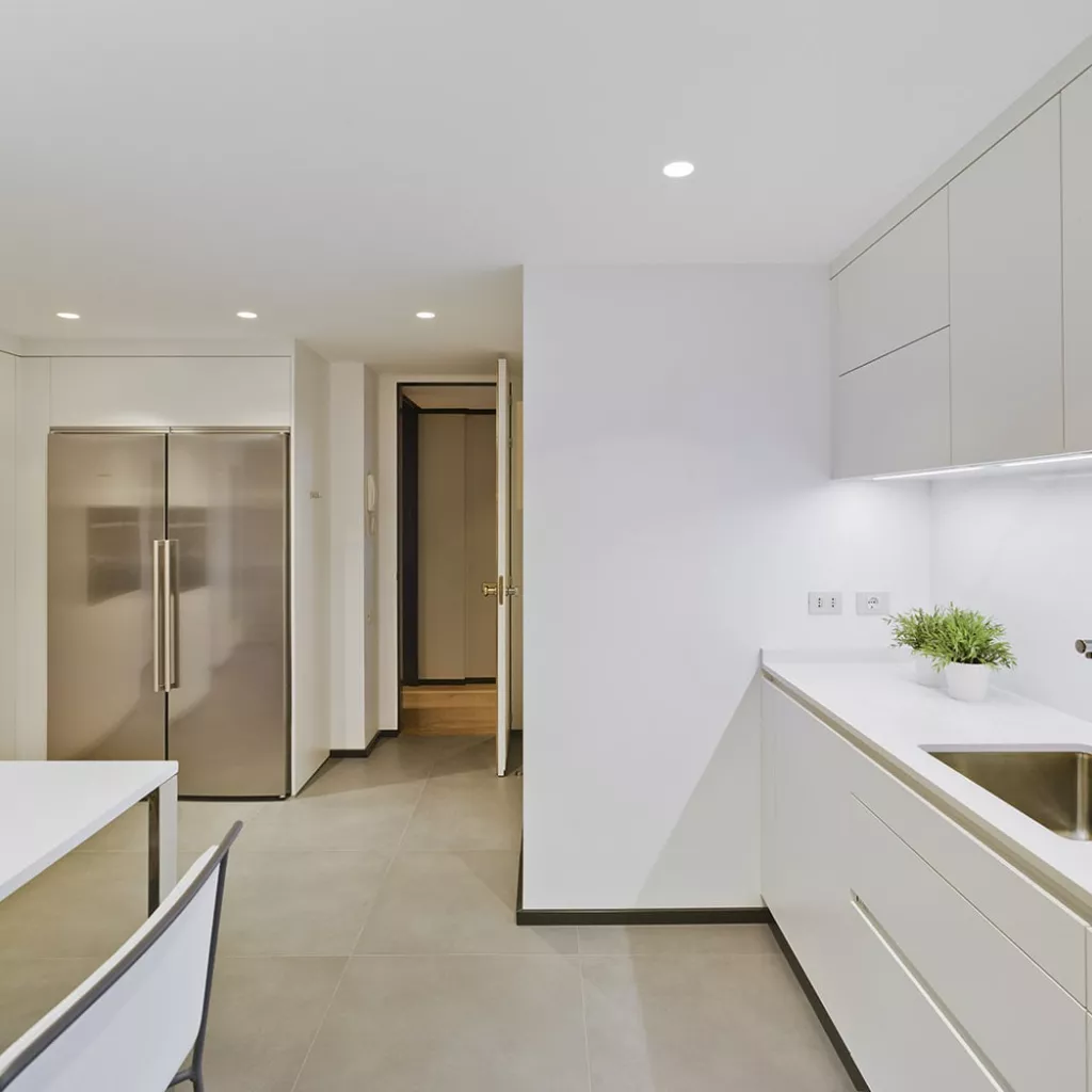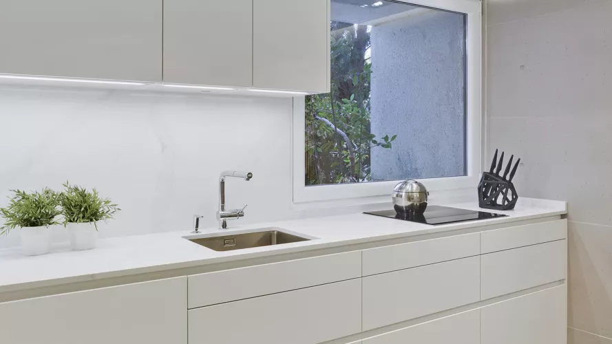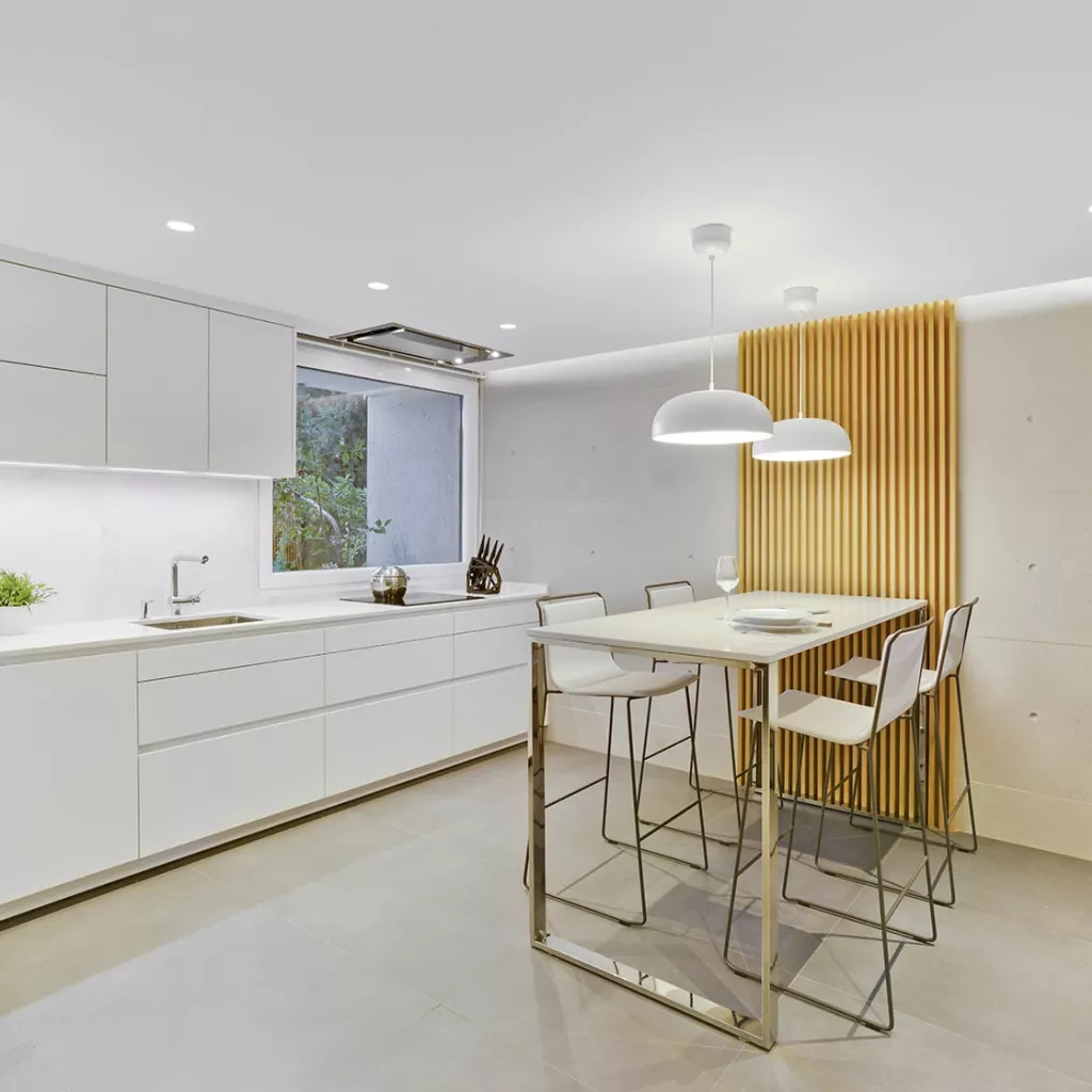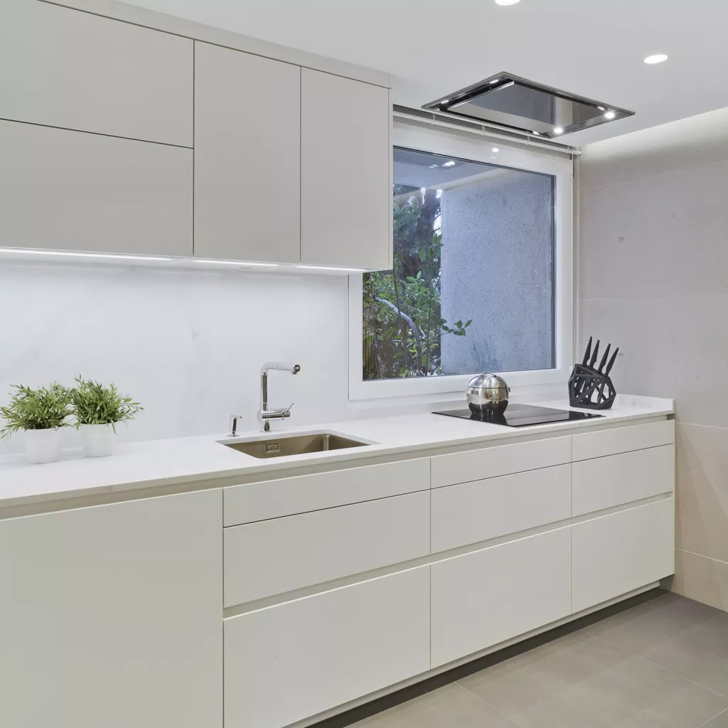 Cocina Santos Line E en Blanco Seff – diseño puro y funcionalidad minimalista