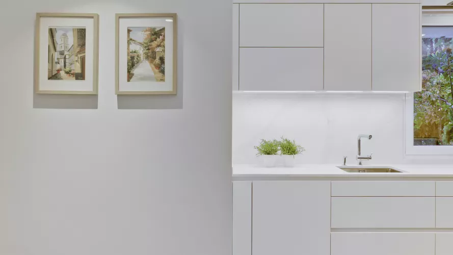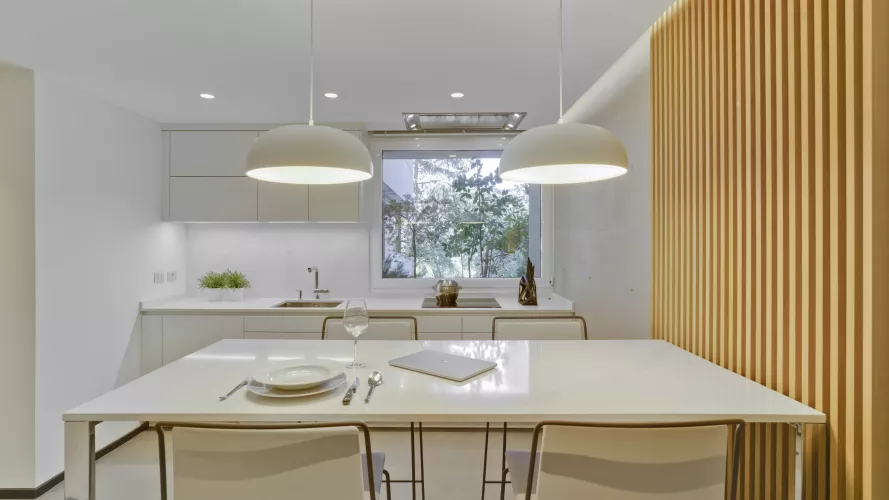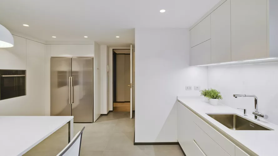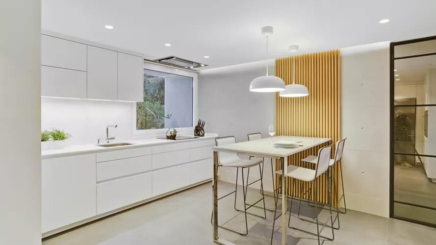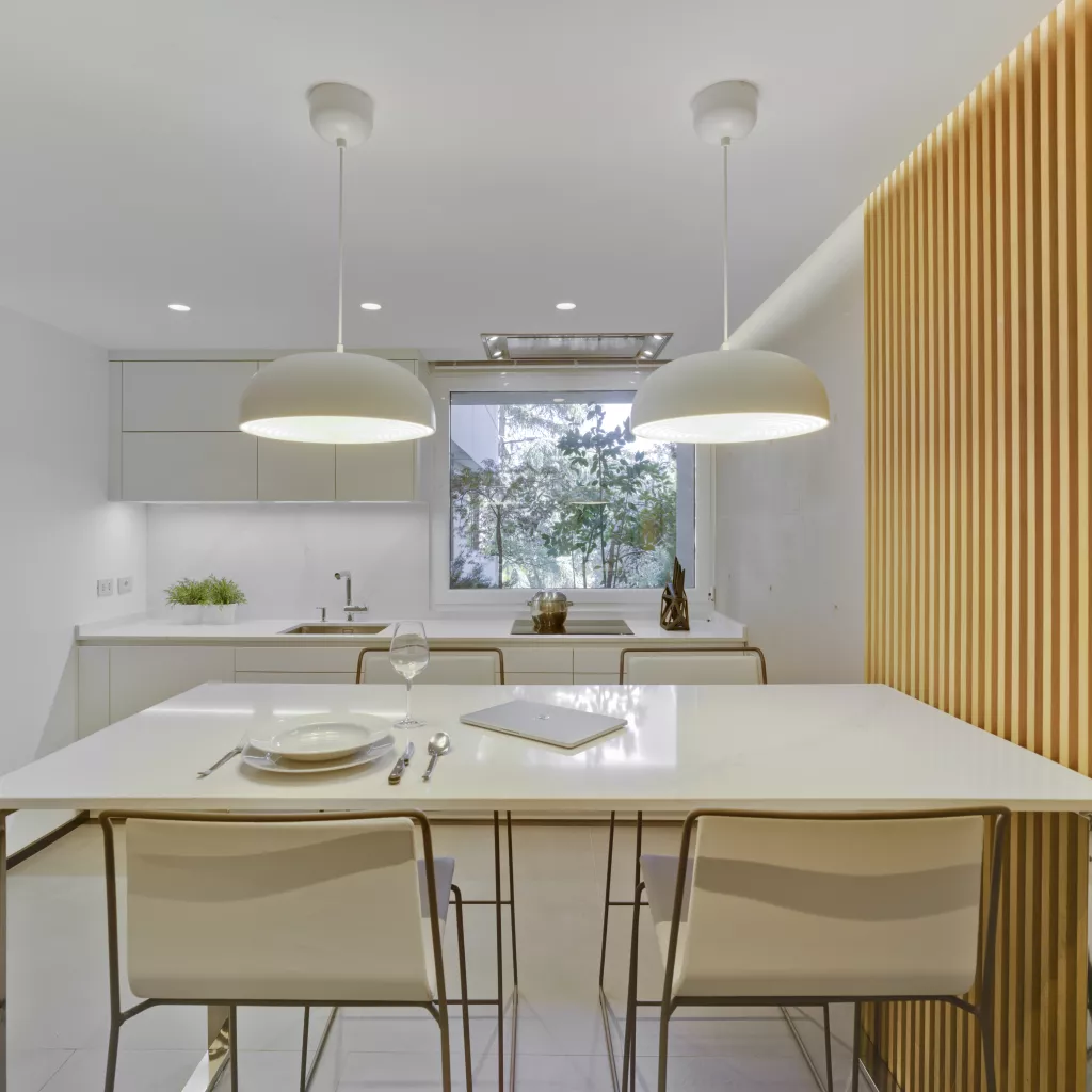 Cocina Santos Line E en Blanco Seff – diseño puro y funcionalidad minimalista
