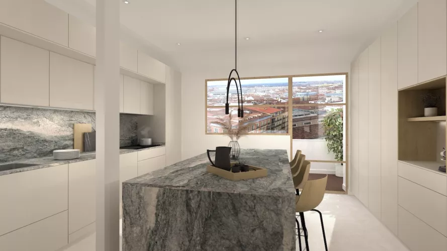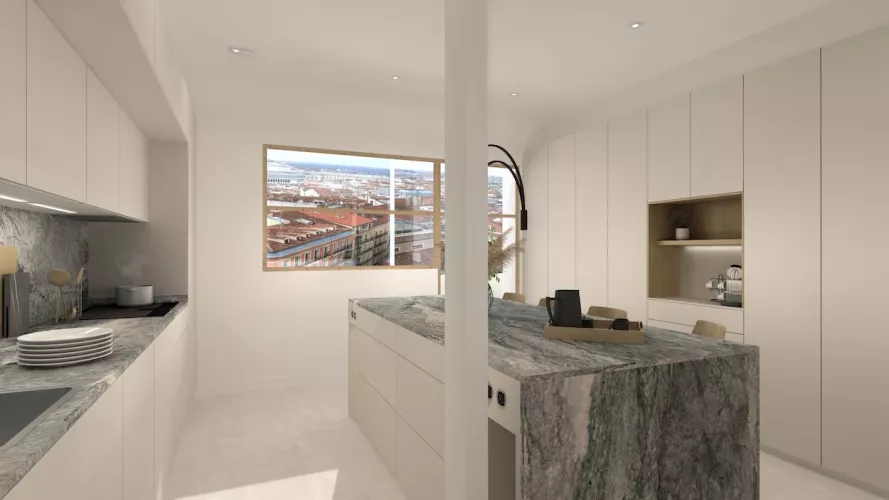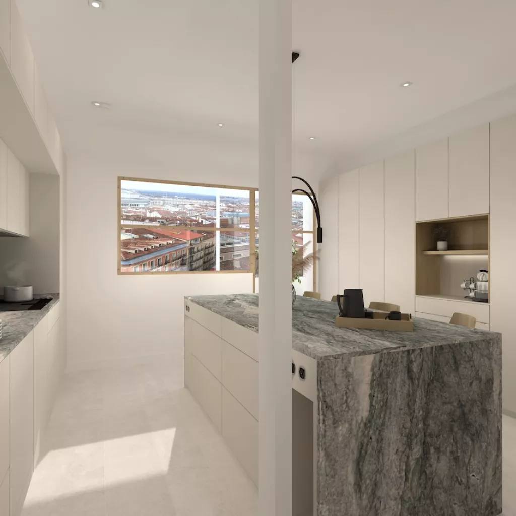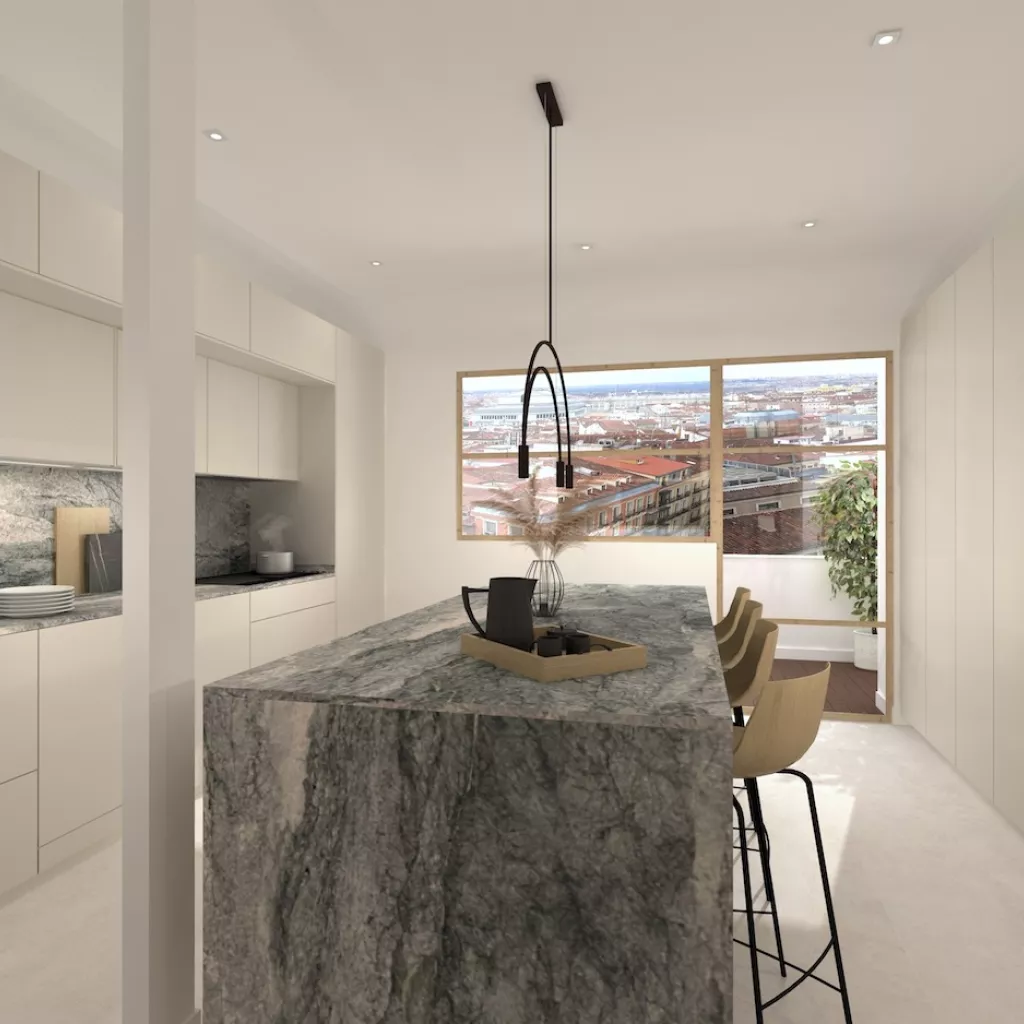 Cocina con isla de granito