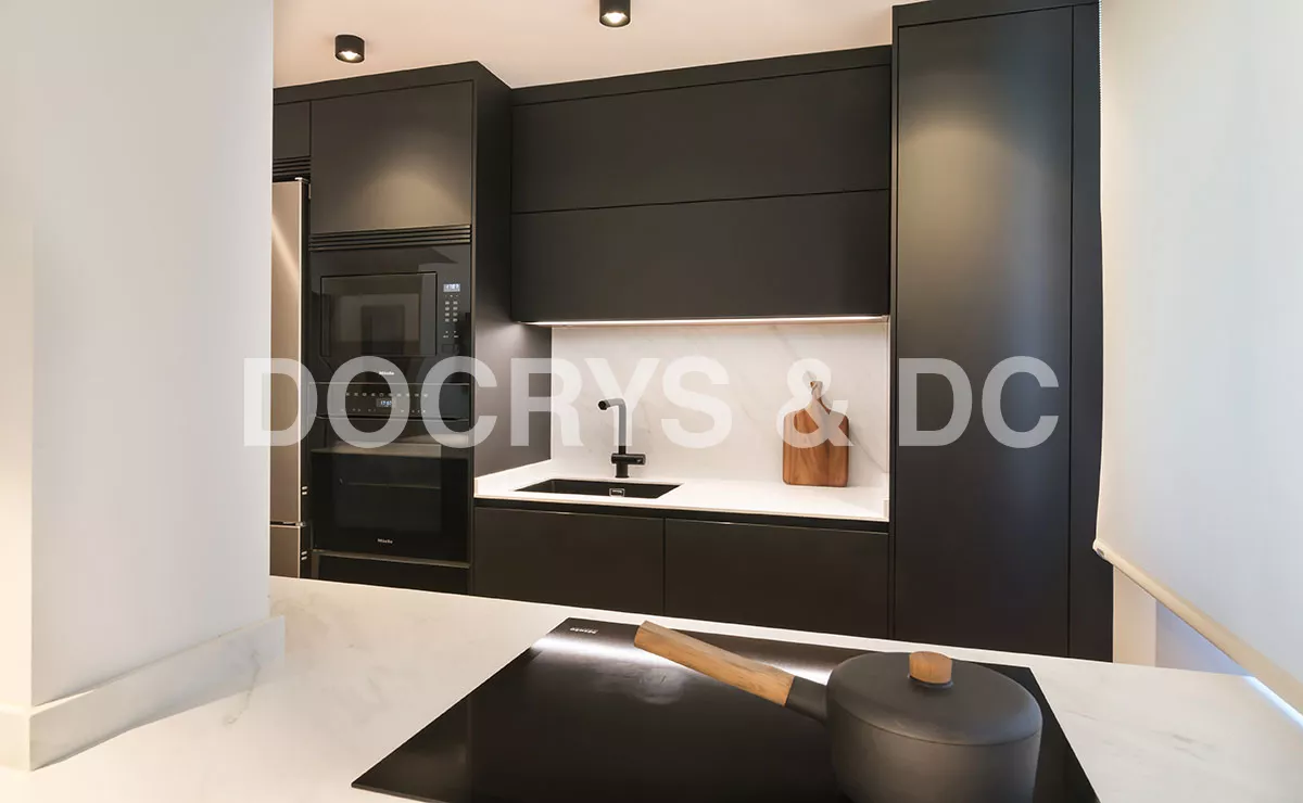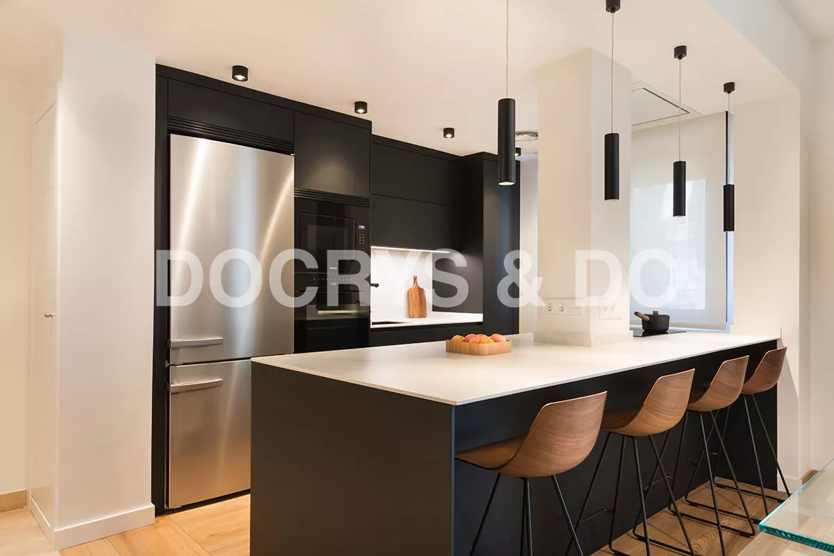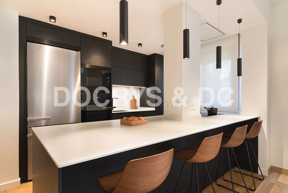 La gran protagonista de la estancia, es la isla central, compuesta por muebles bajos, la zona de cocción, y una gran zona de trabajo.