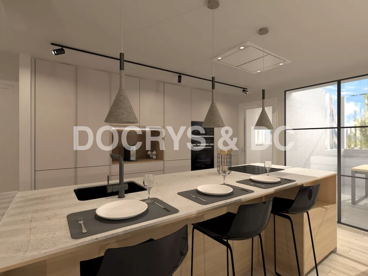 En el medio de la cocina encontramos una espaciosa isla diseñada para ser el punto de encuentro perfecto. La isla cuenta con una zona volada para comidas informales, así como áreas dedicadas a la preparación de alimentos con fuego y agua, facilitando todas las tareas culinarias.