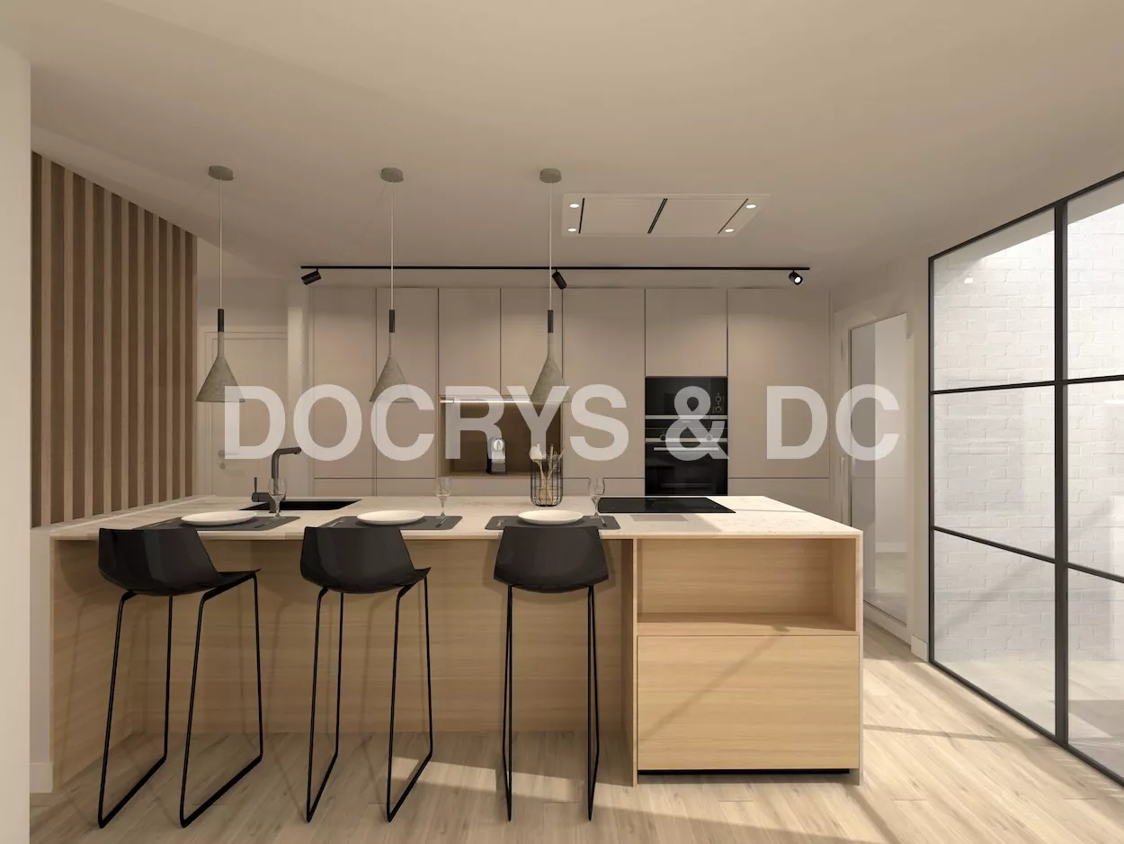 Una campana de techo moderna y discreta asegura un ambiente libre de olores, mientras que la luminosidad natural y la iluminación cuidadosamente diseñada hacen de esta cocina un lugar luminoso y agradable para cualquier actividad, desde cocinar hasta socializar.