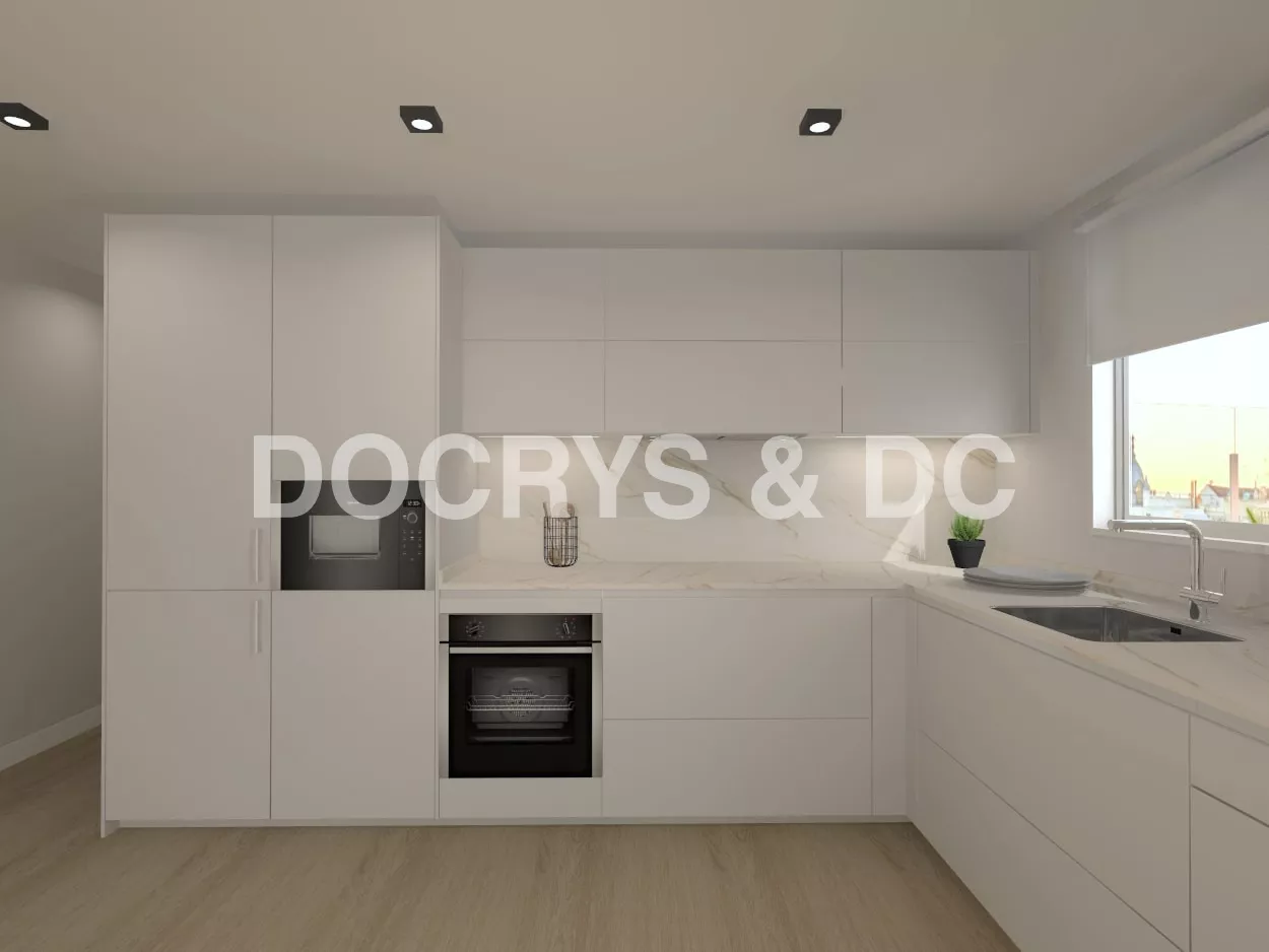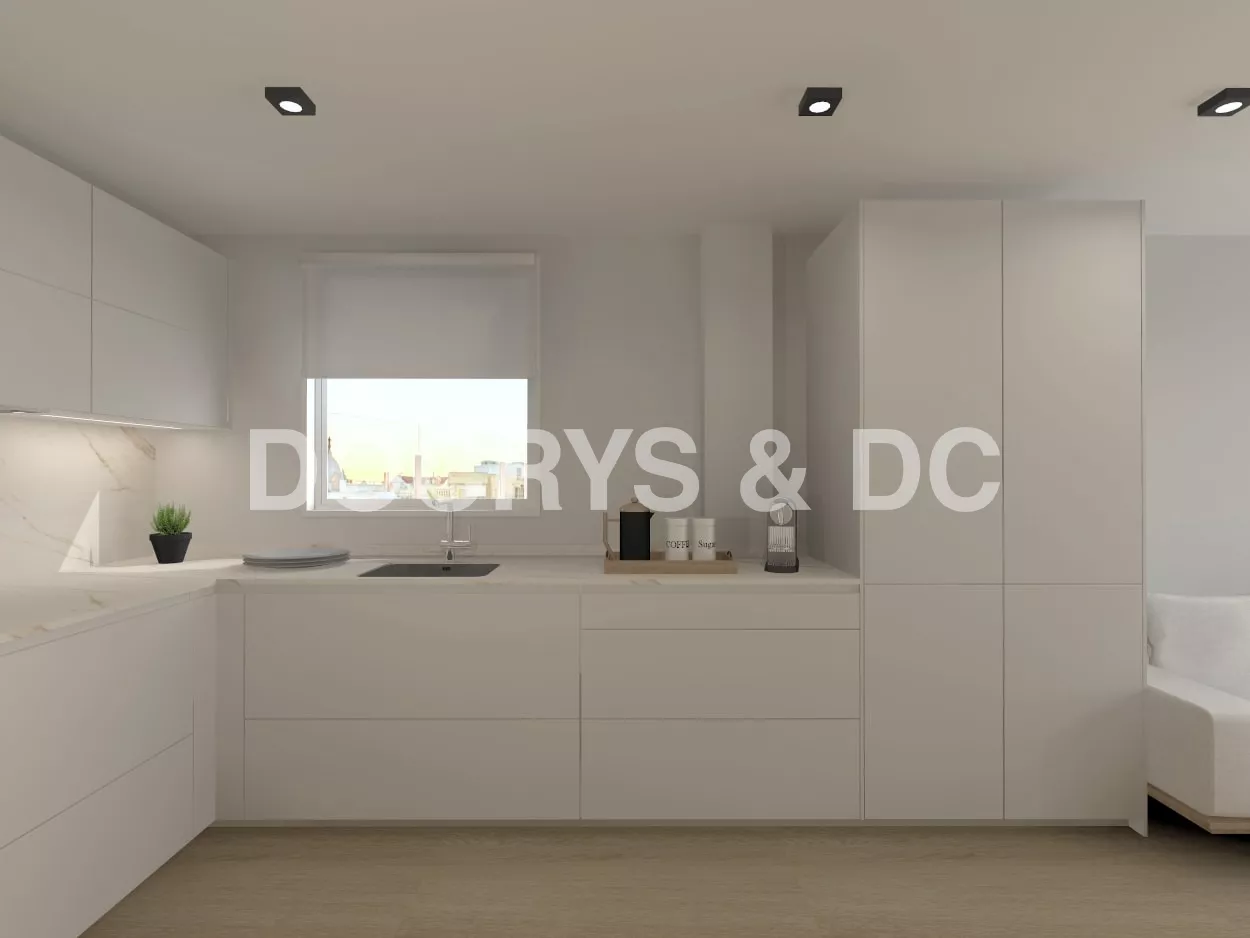 Una parte del frente, acoge la zona de aguas y una zona de trabajo, el otro frente, ubica la zona de cocción, una placa integrada en la encimera que no es visible a la vista, consiguiendo visiblemente un espacio mucho más amplio.
