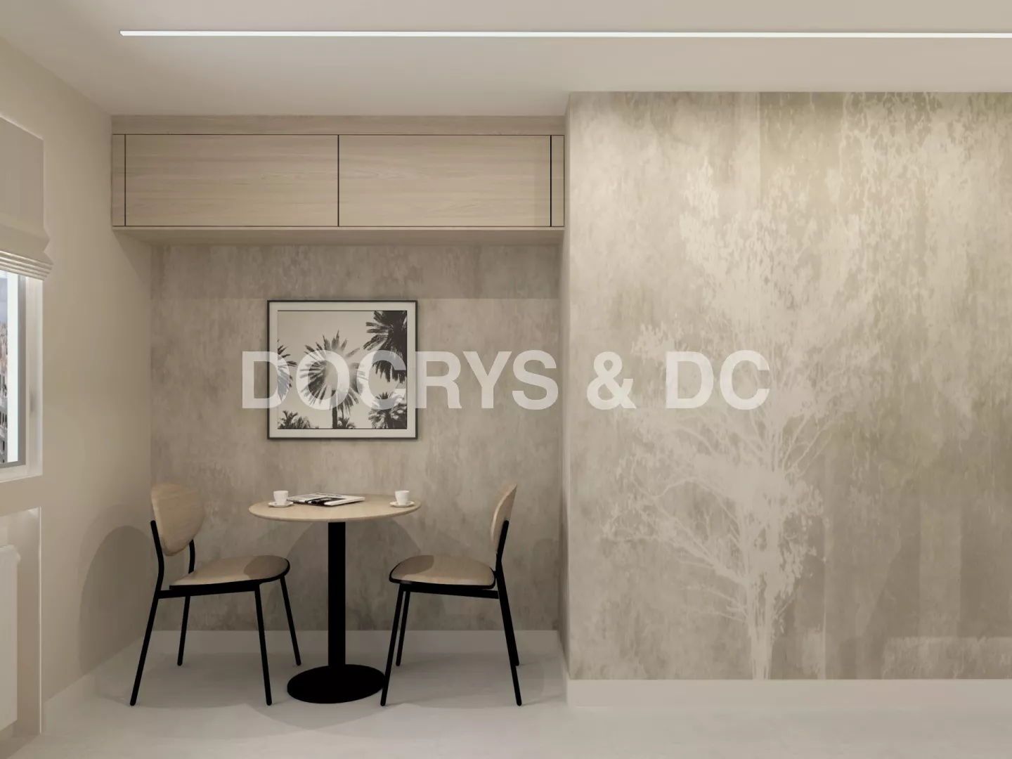 La composición se desarrolla en un único frente de mobiliario, lo que permite liberar visualmente el espacio y favorecer una circulación fluida. Frente a este, se incorpora una pared ligera con textura suave que aporta profundidad y calidez, evitando la sensación de estrechez. Al fondo, la ventana actúa como punto focal, introduciendo luz natural y reforzando la percepción de amplitud.