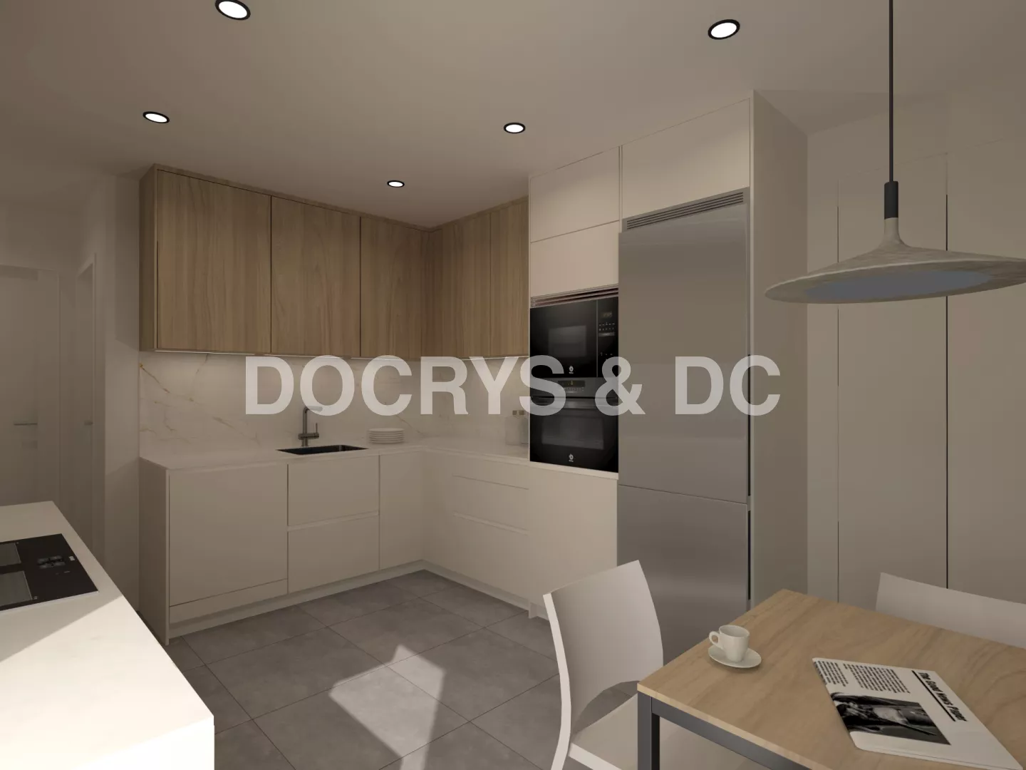 Toda la cocina tiene tiradores tipo push para eliminar el ruido visual, lo que aporta al espacio una sensación de orden y limpieza que unido al color blanco de los muebles crea un ambiente cálido y acogedor.