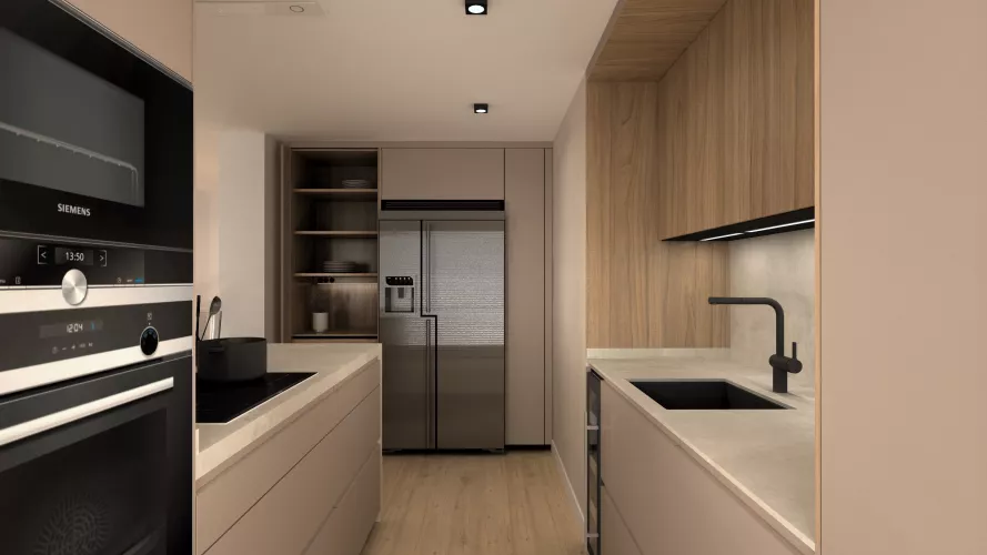 Este proyecto de cocina Santos presenta un diseño limpio y moderno