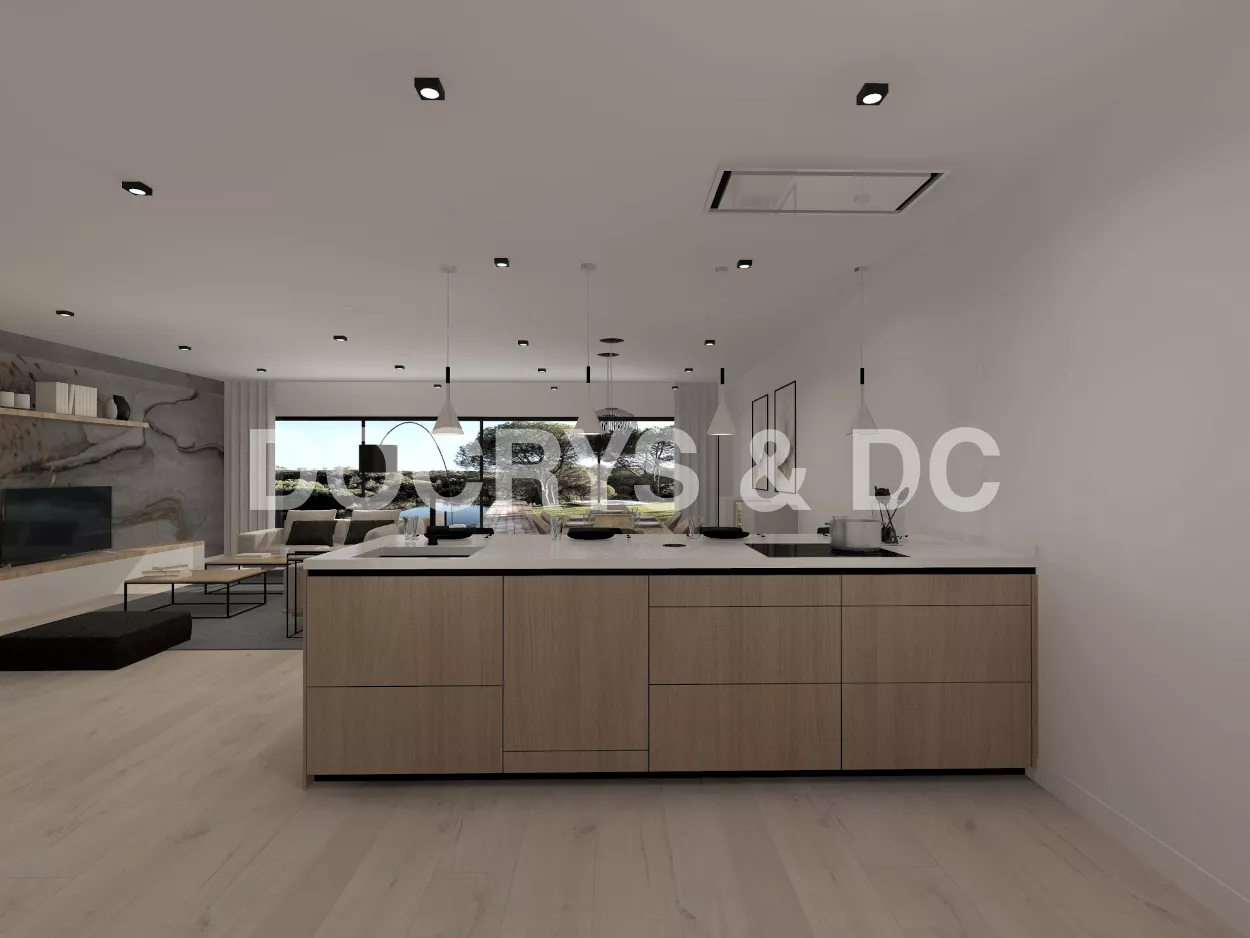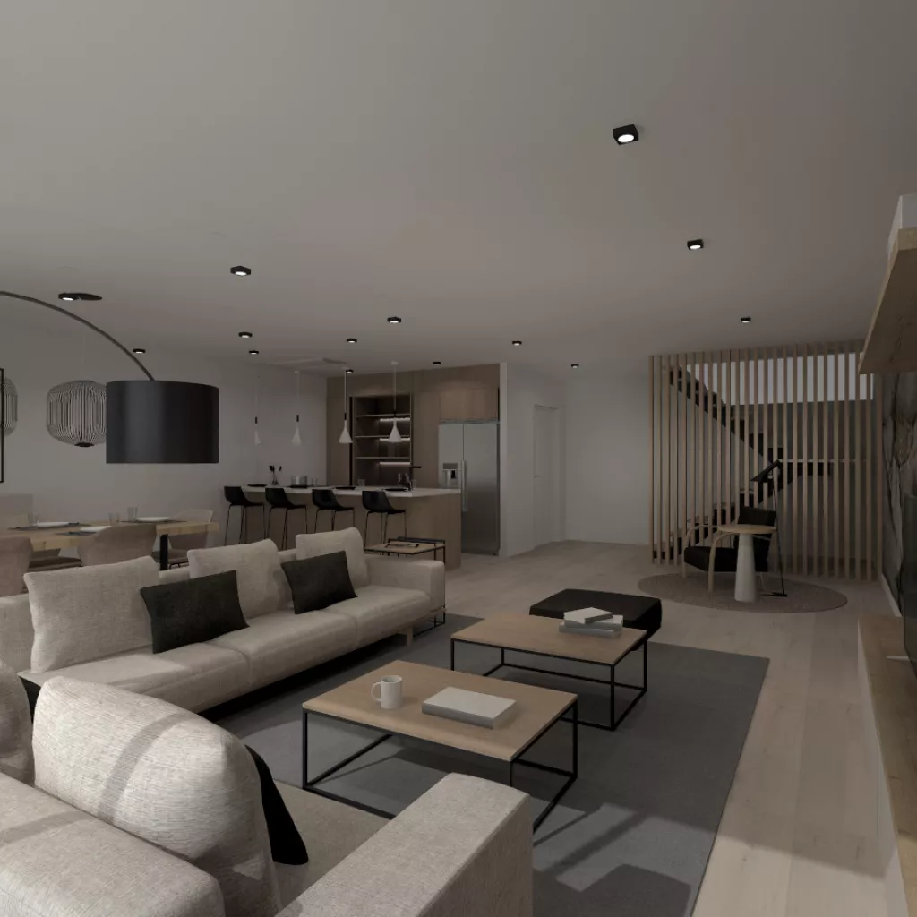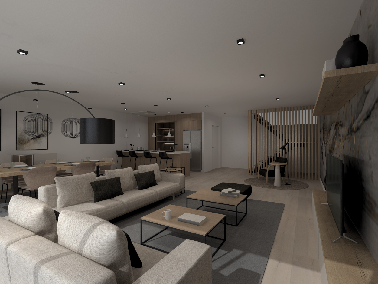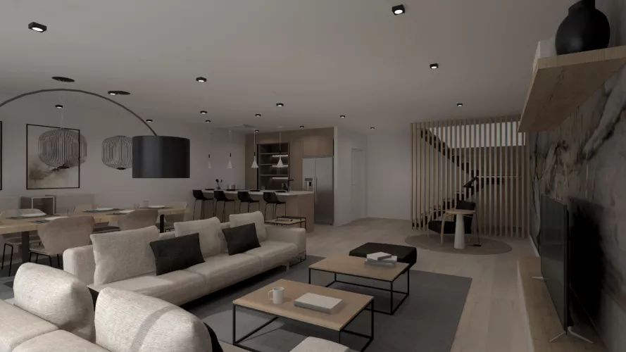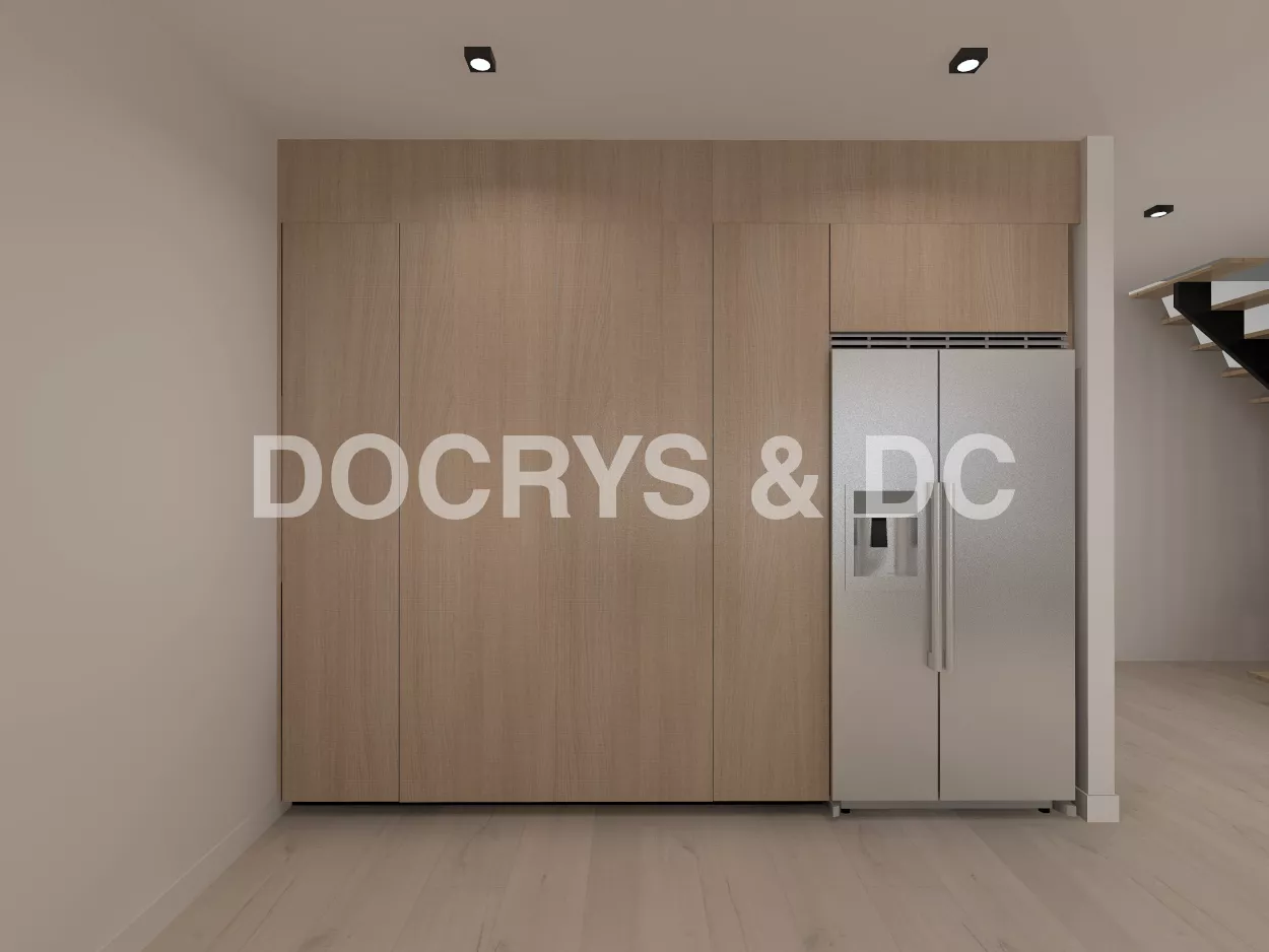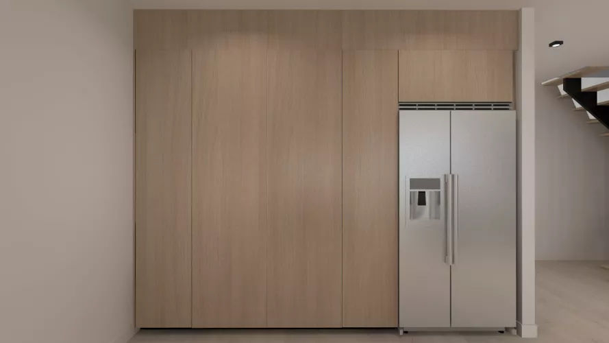 Esta cocina abierta al salón de color roble kairos, se integra perfectamente con el resto de la zona baja de la vivienda creando un espacio funcional y práctico.