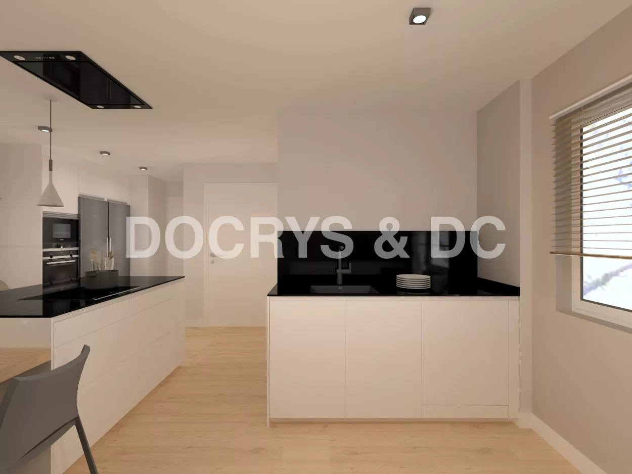 Esta cocina se ubica en una estancia de 17 m2 y cuenta con cuatro frentes y una isla central con barra y mesa office.