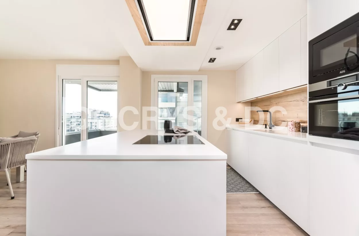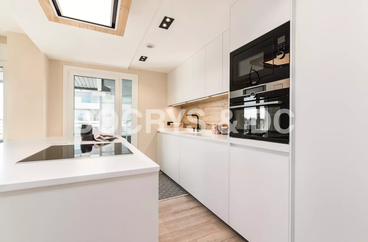 Esta cocina está abierta al salón, creando así un espacio diáfano que crea sensación de amplitud y luminosidad.