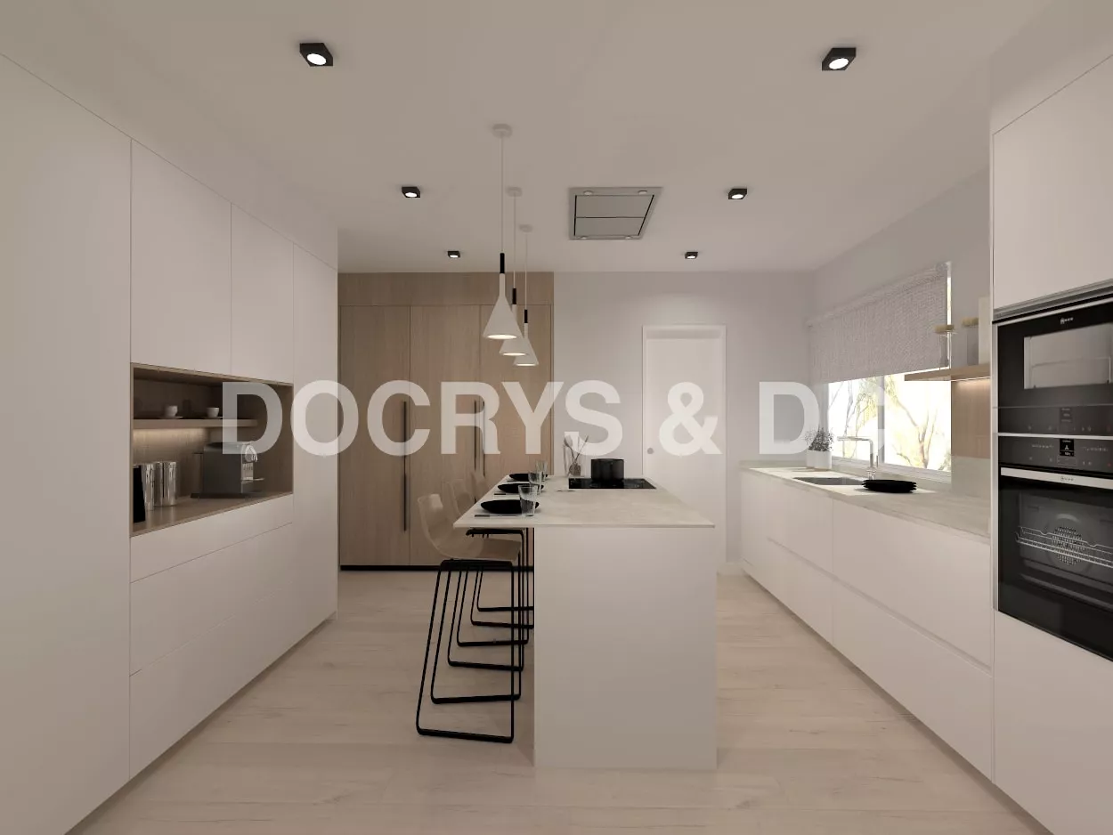 Por último, una gran isla central, donde se ubica la zona de cocción, además de una gran zona de trabajo y una extensión de la encimera en forma de barra volada para tres comensales.