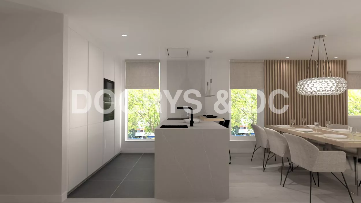 Está cocina moderna con península es abierta al salón y comedor, generando así un espacio amplio y luminoso, sin barreras arquitectónicas para compartir momentos entre familia y amigos.