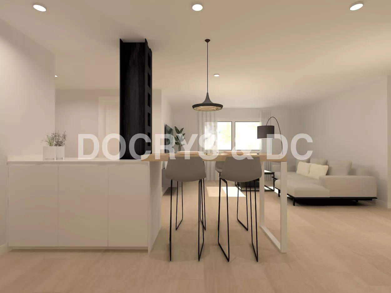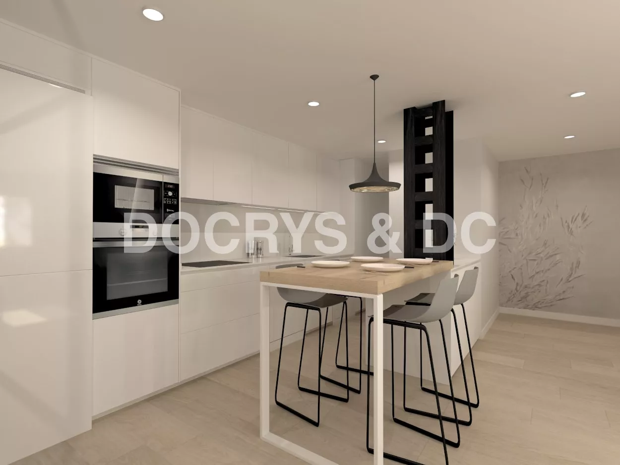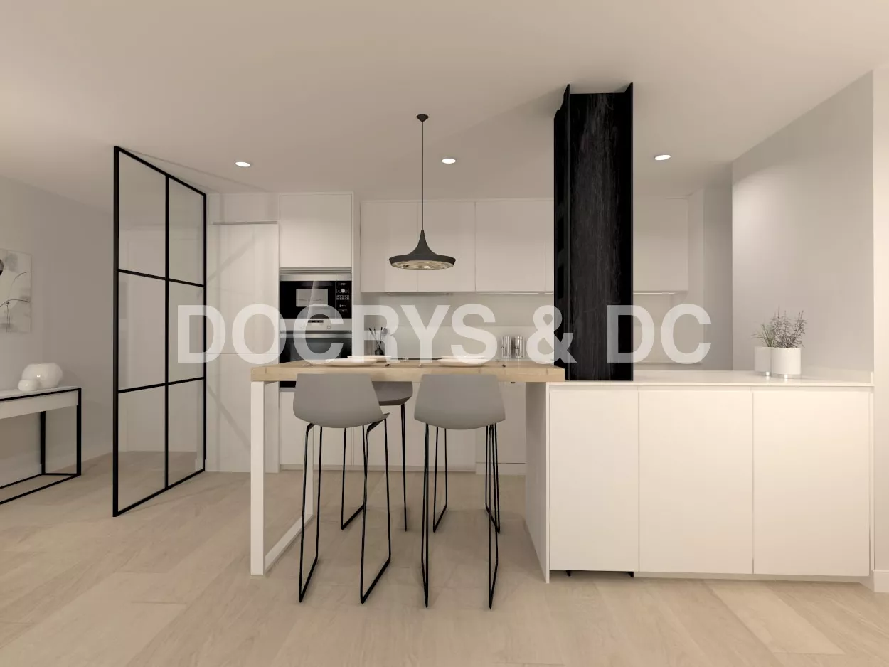 El diseño de esta cocina moderna es abierto al salón, aportando así una gran sensación de amplitud y luminosidad.