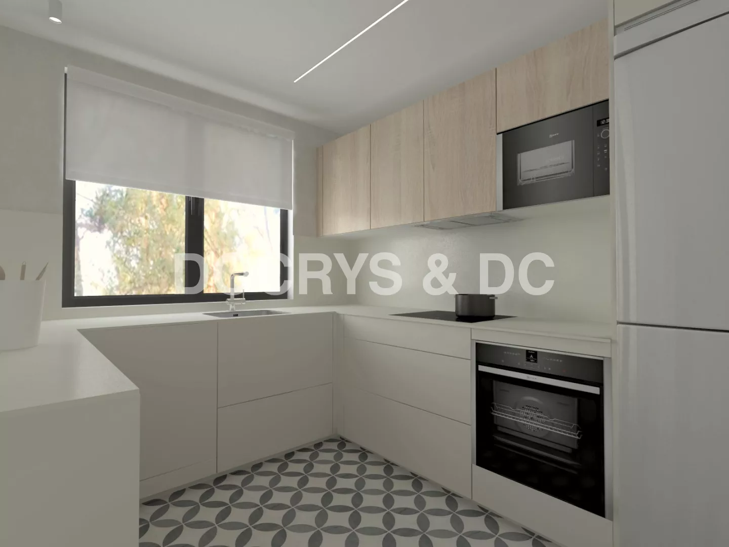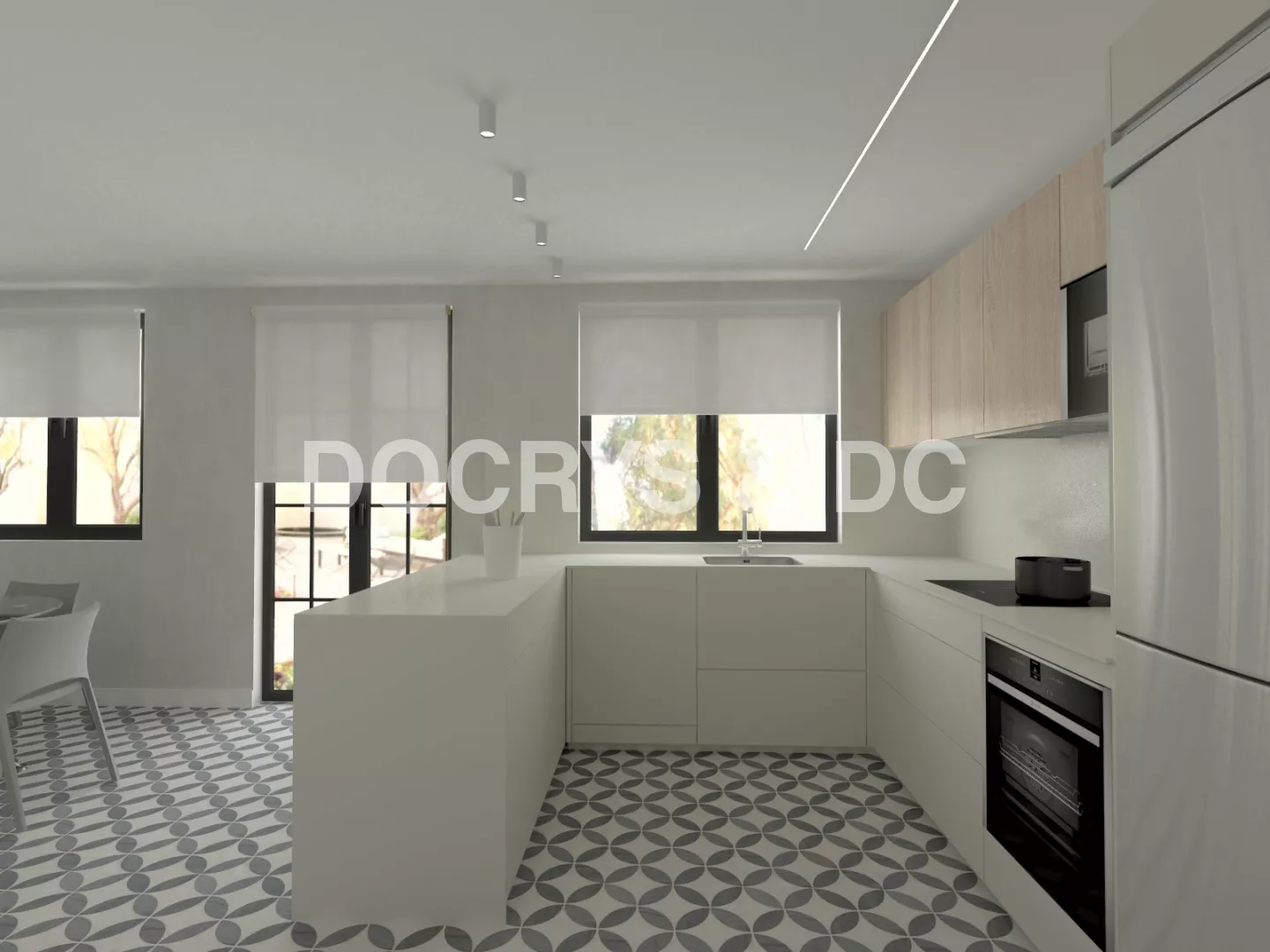 Como toque final, hemos colocado un suelo hidráulico con formas geométricas, creando un estilo único y distinguido en esta cocina.