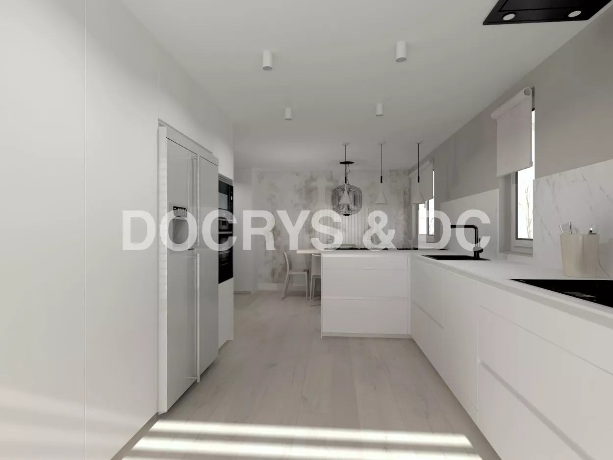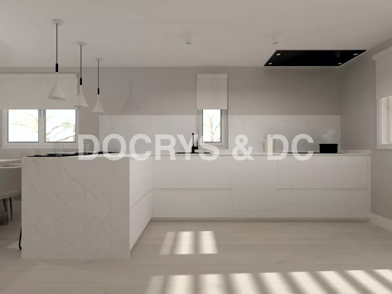 Cocinas Santos en color Blanco innsbruck con material estratificado y encimera de Dekton en color kairos, acabado natural.