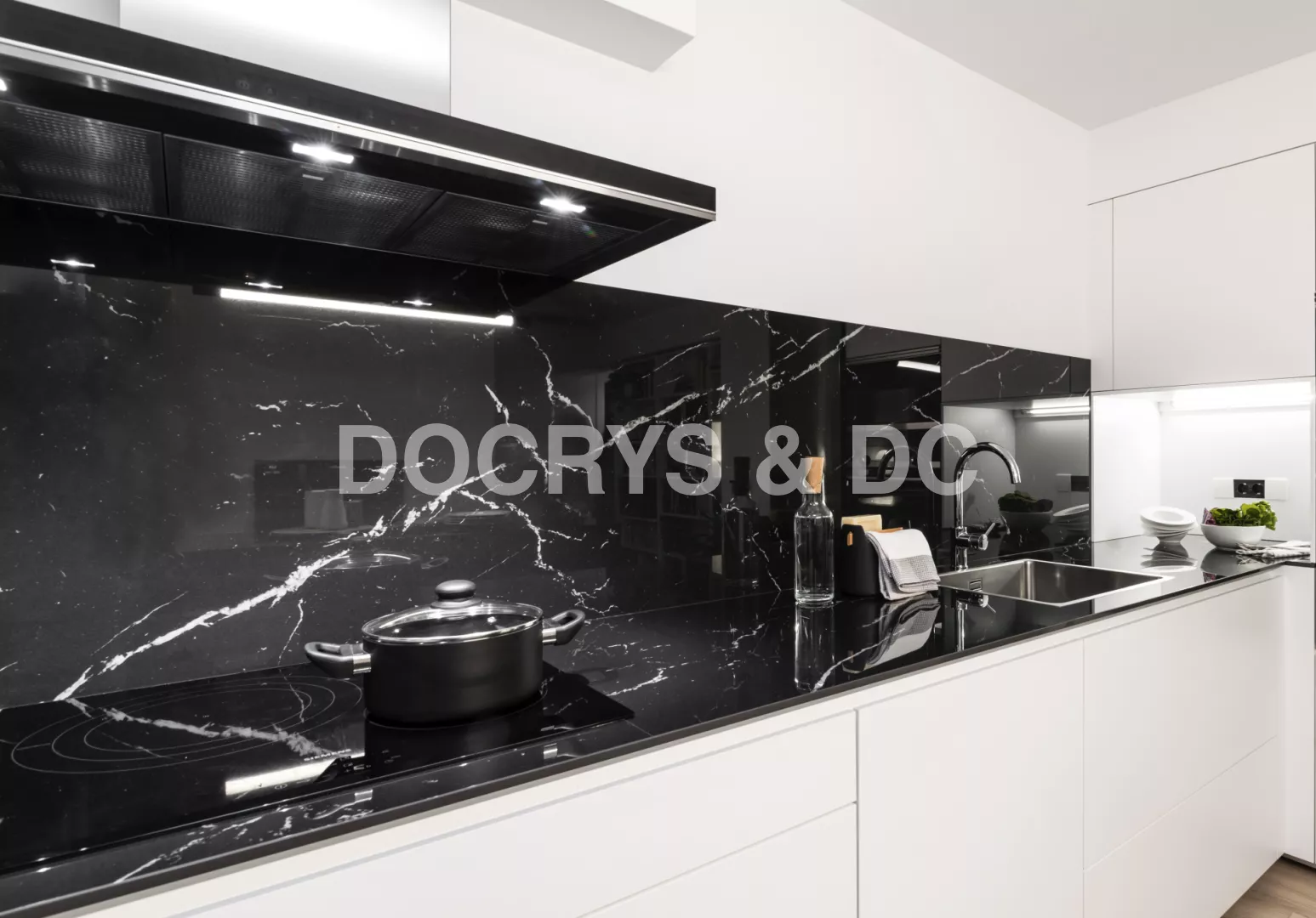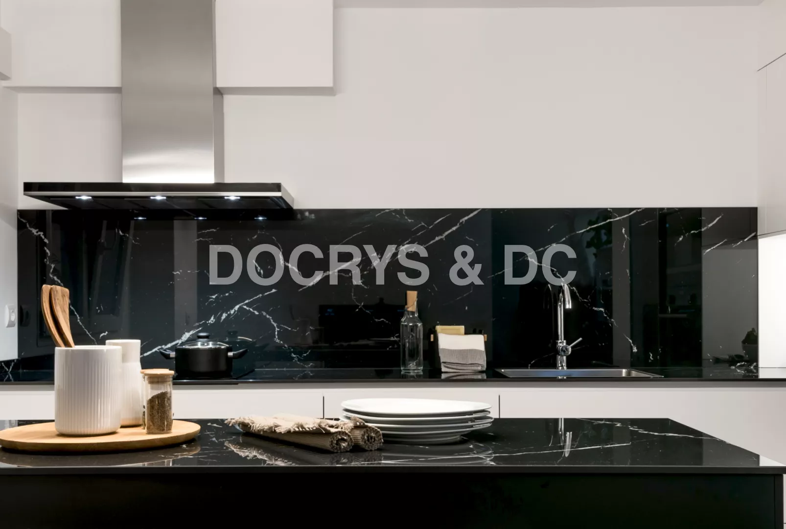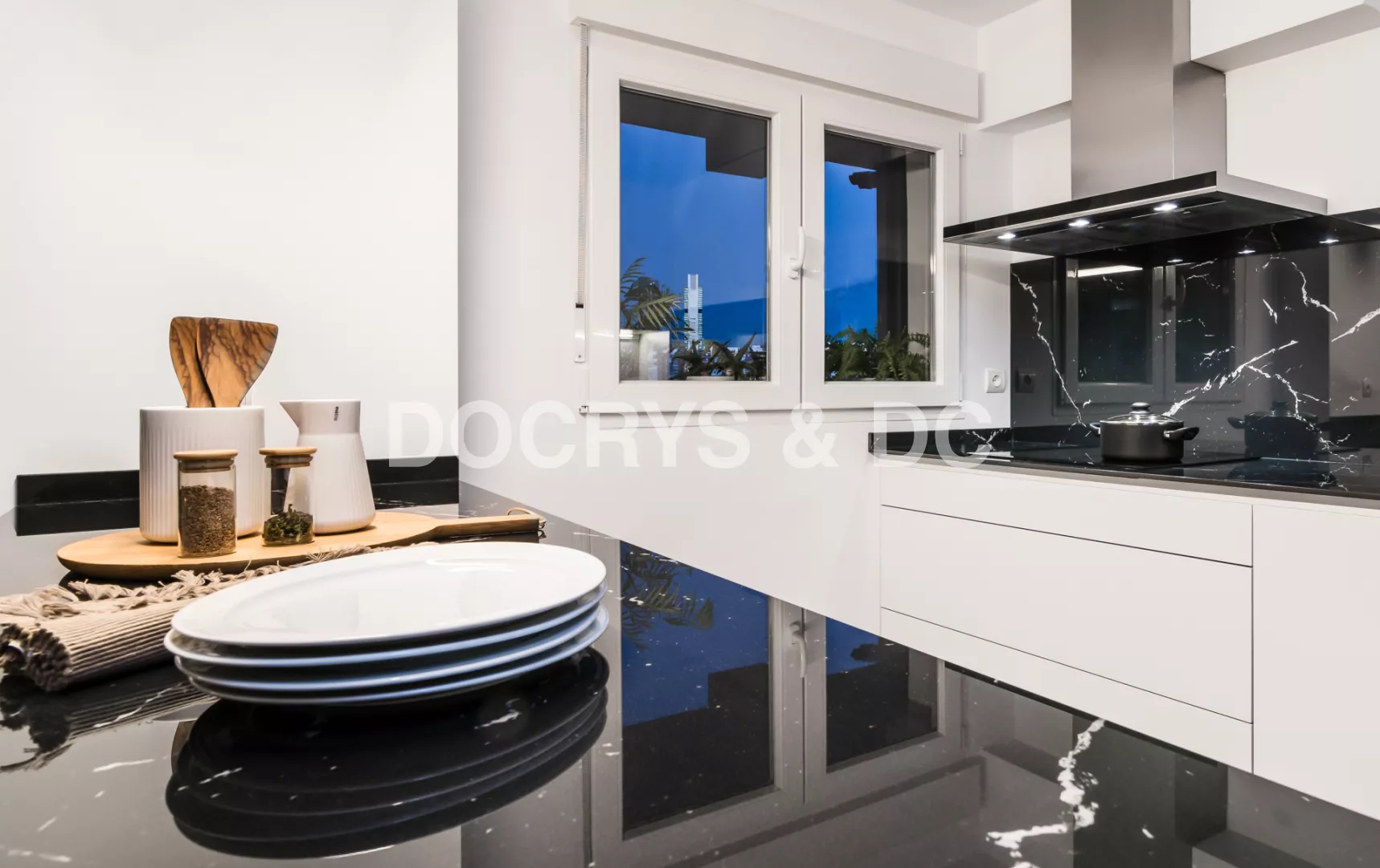 La encimera elegida en este proyecto, en color Nero marquina, crea la combinación perfecta a esta cocina, atrayendo todas las miradas.