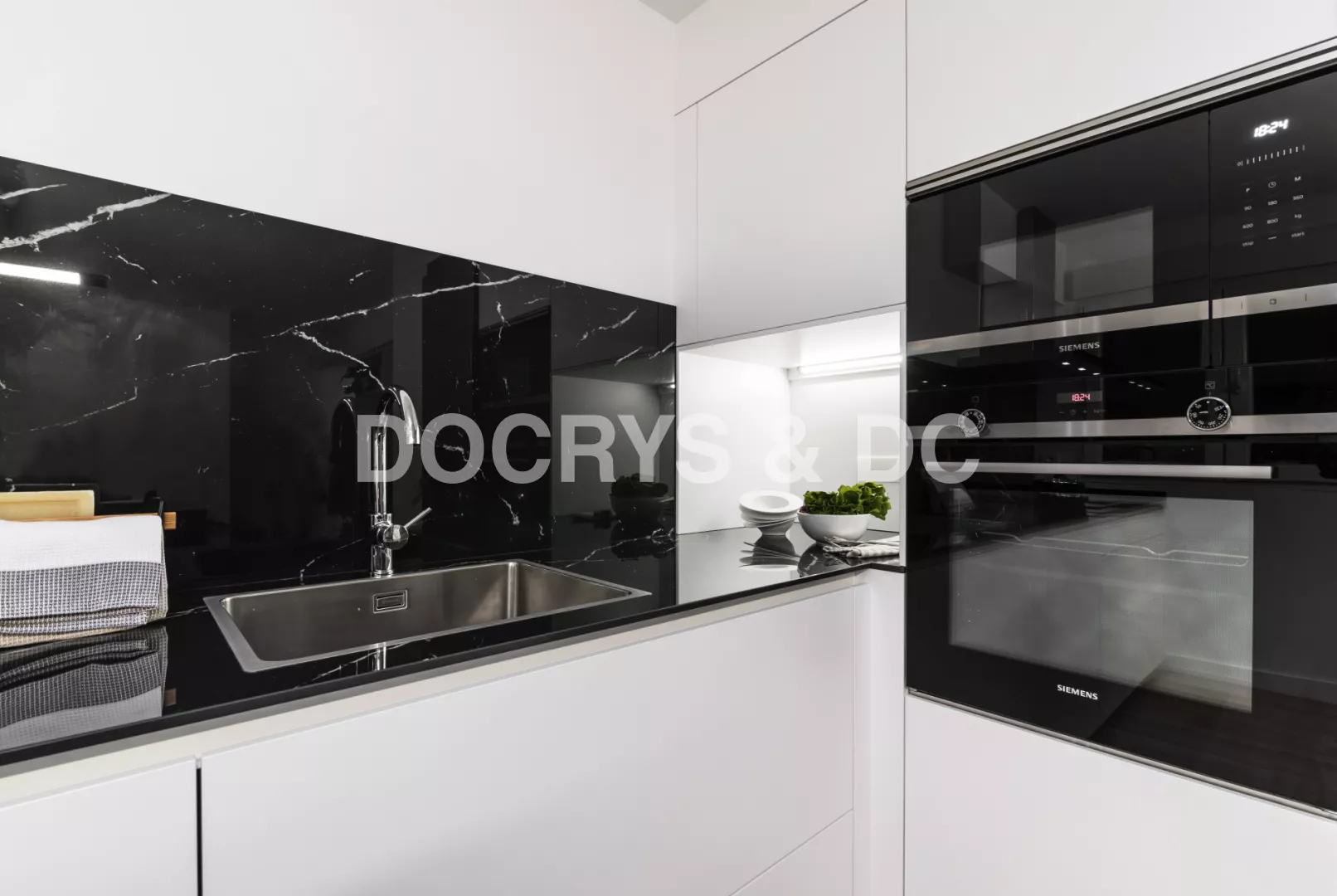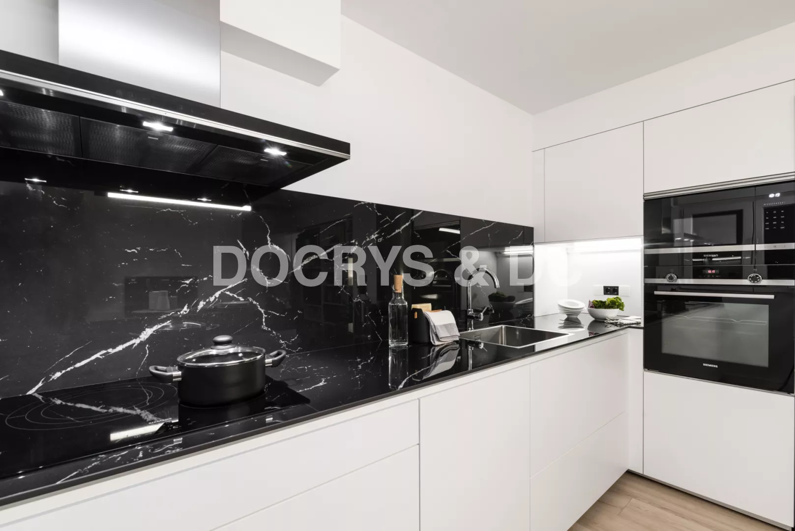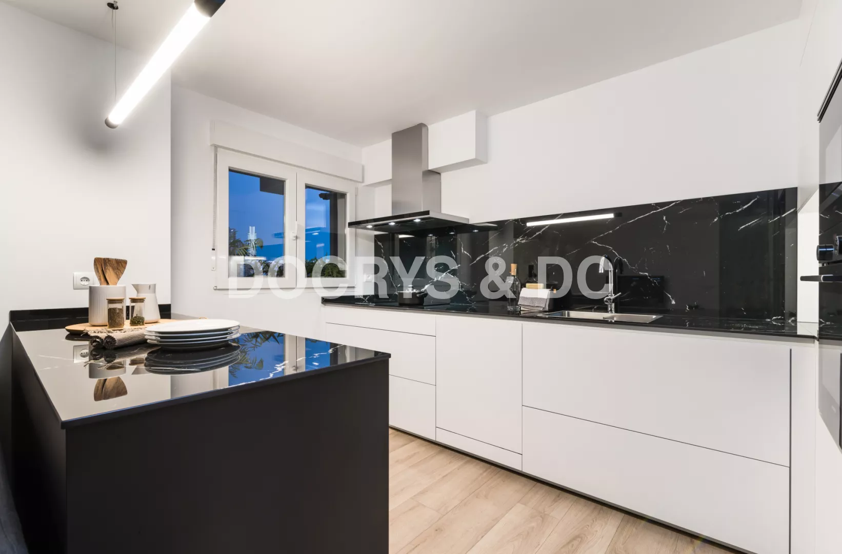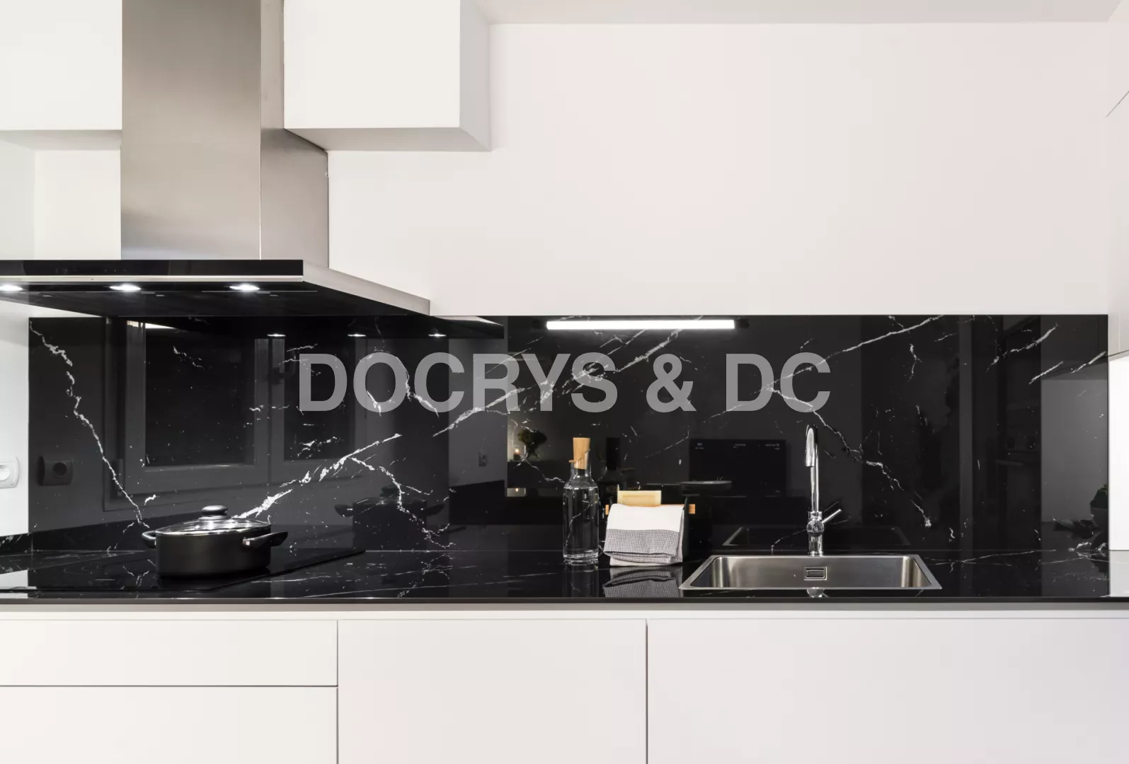 La encimera elegida en este proyecto, en color Nero marquina, crea la combinación perfecta a esta cocina, atrayendo todas las miradas.