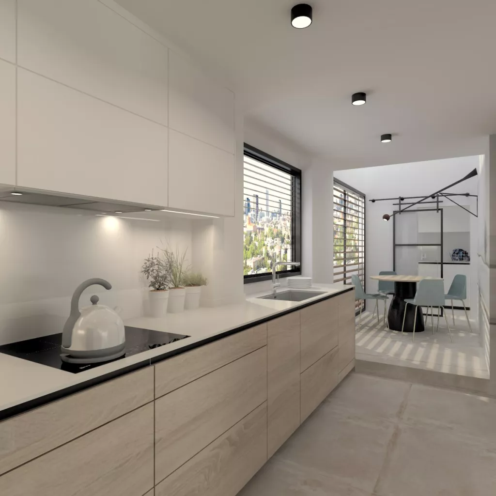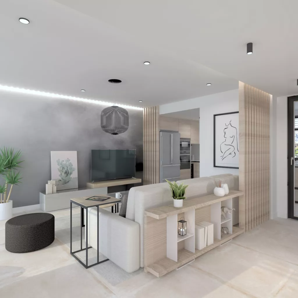 El diseño de esta cocina se decidió hacer abierto al salón, creando así mayor sensación de amplitud, además, se ha jugado con los tonos de la cocina para que se mimeticen a la perfección con la decoración del salón.