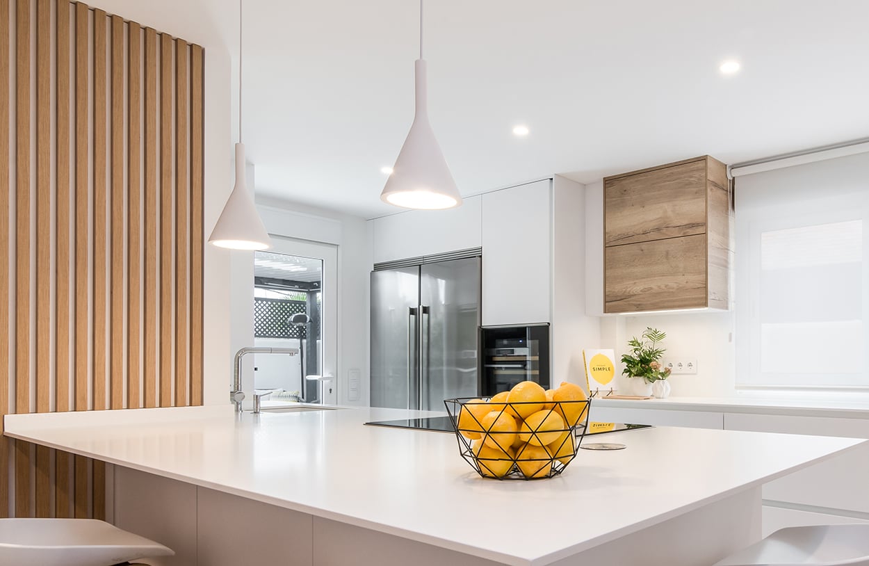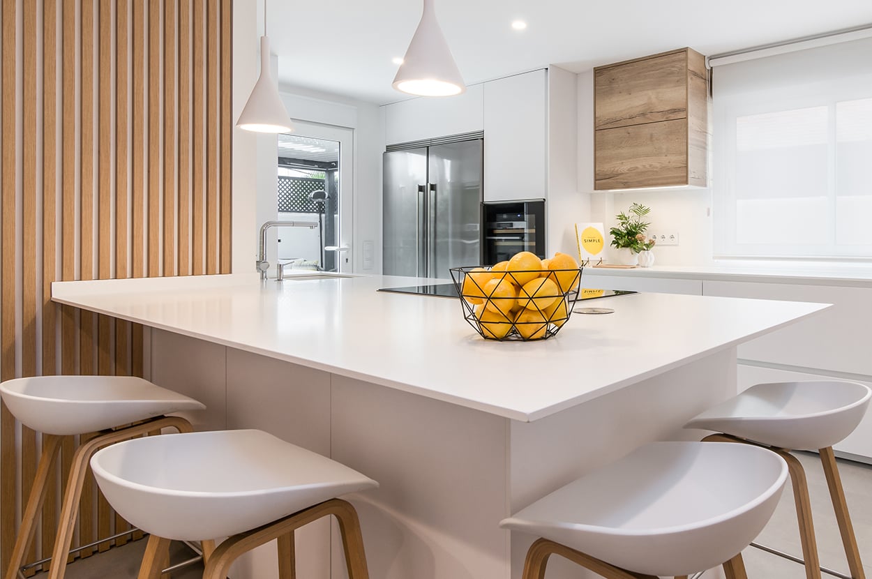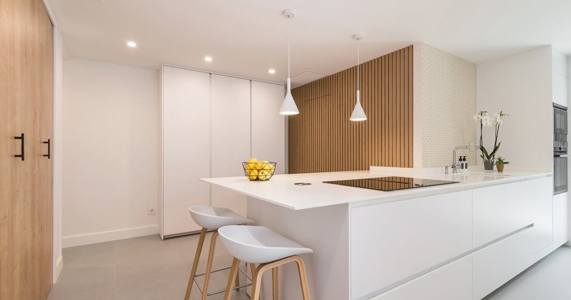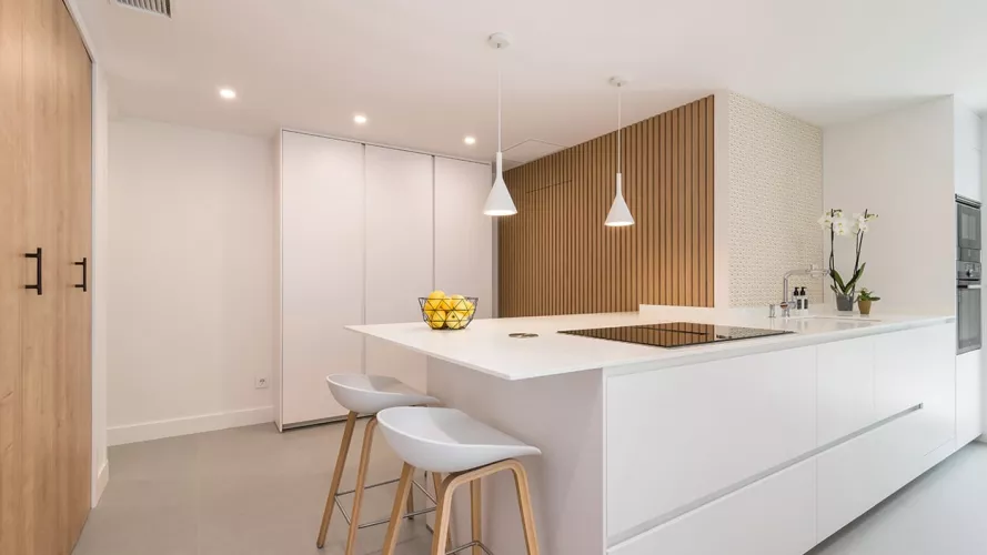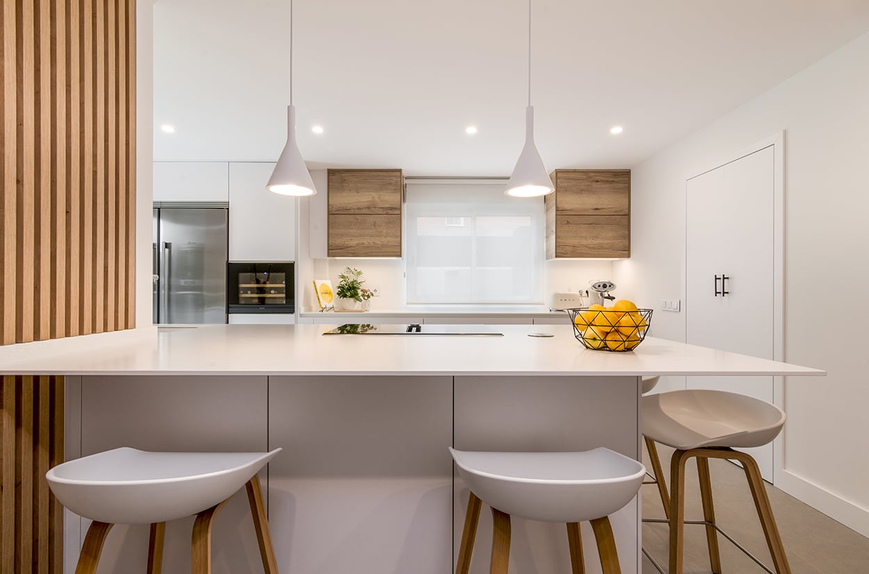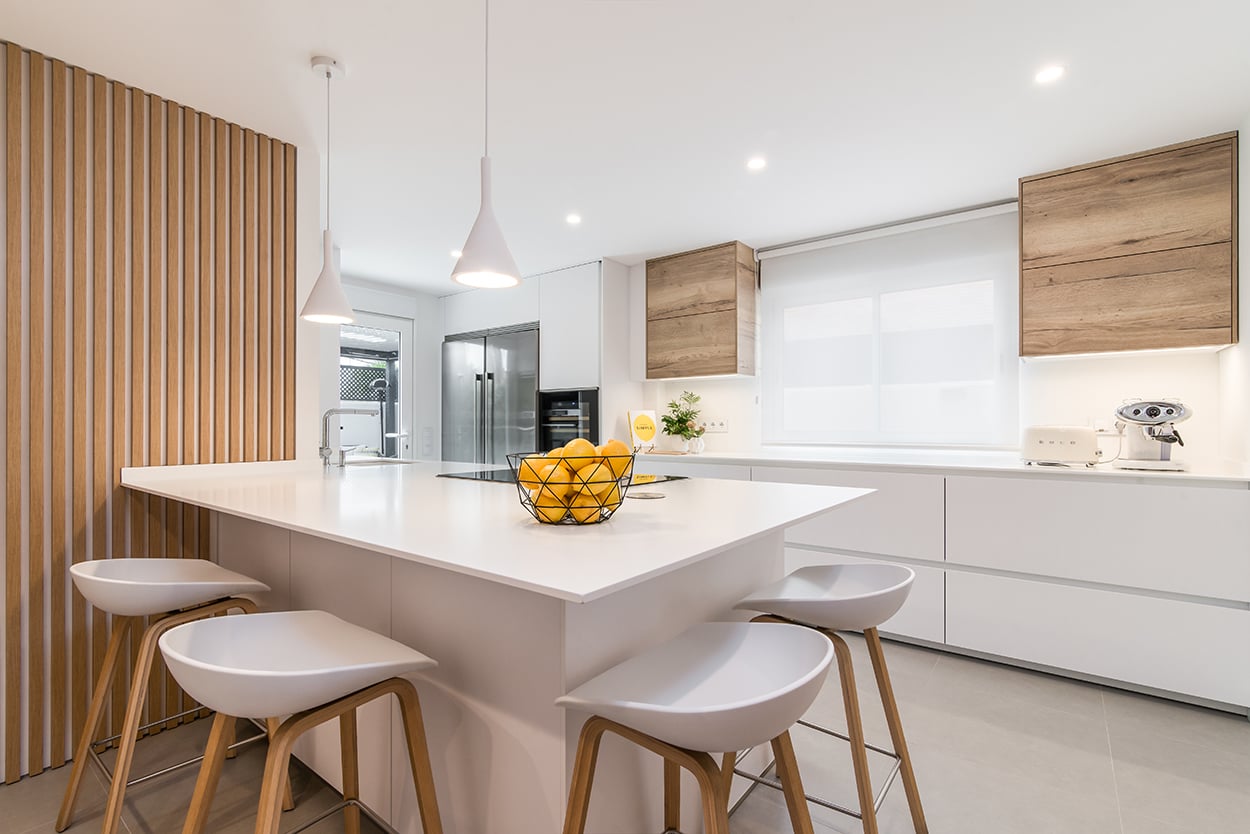 Cocina Santos blanca y roble con península