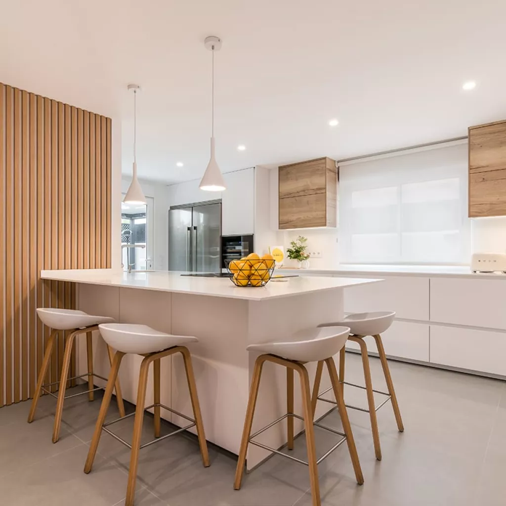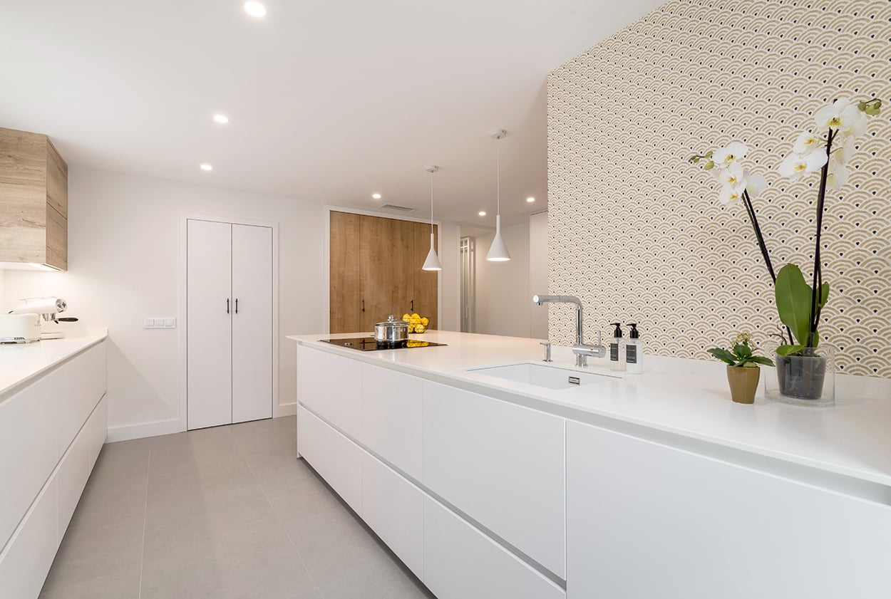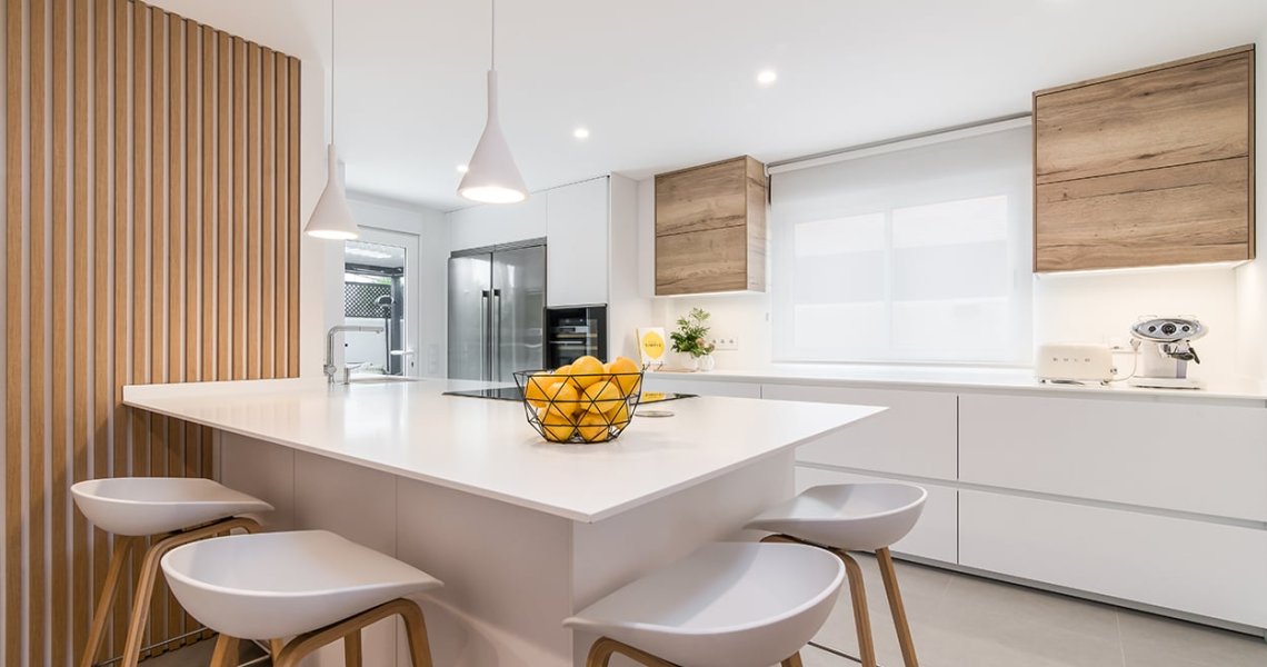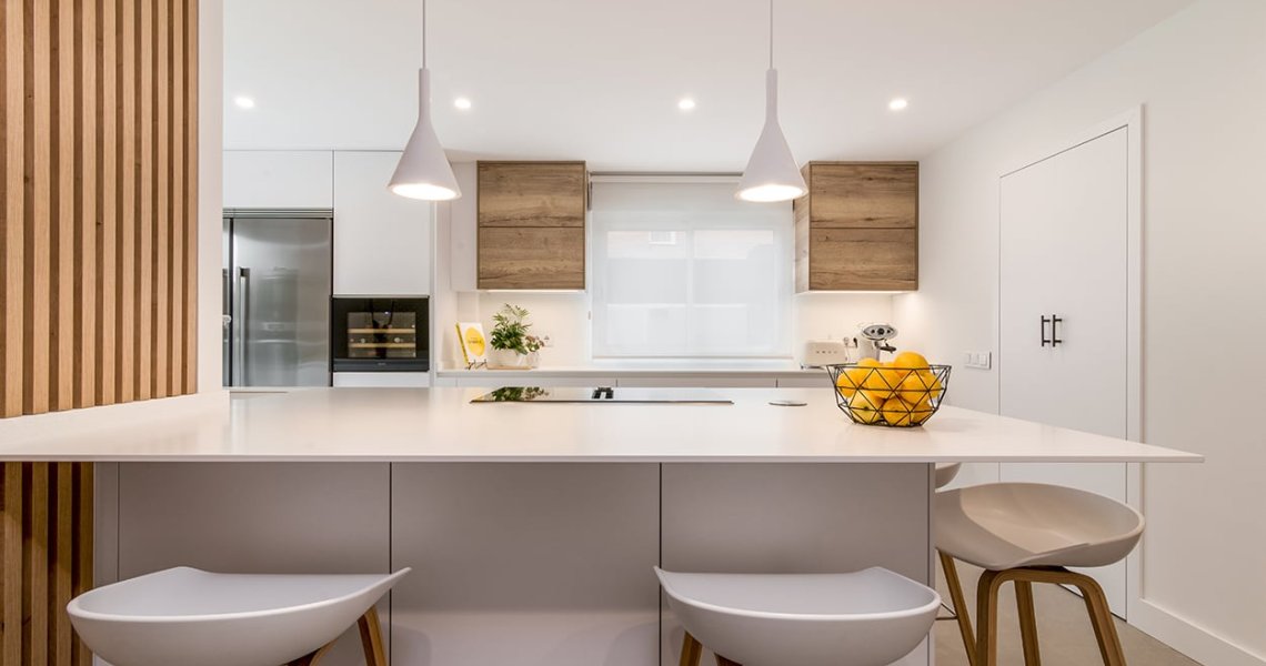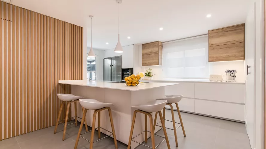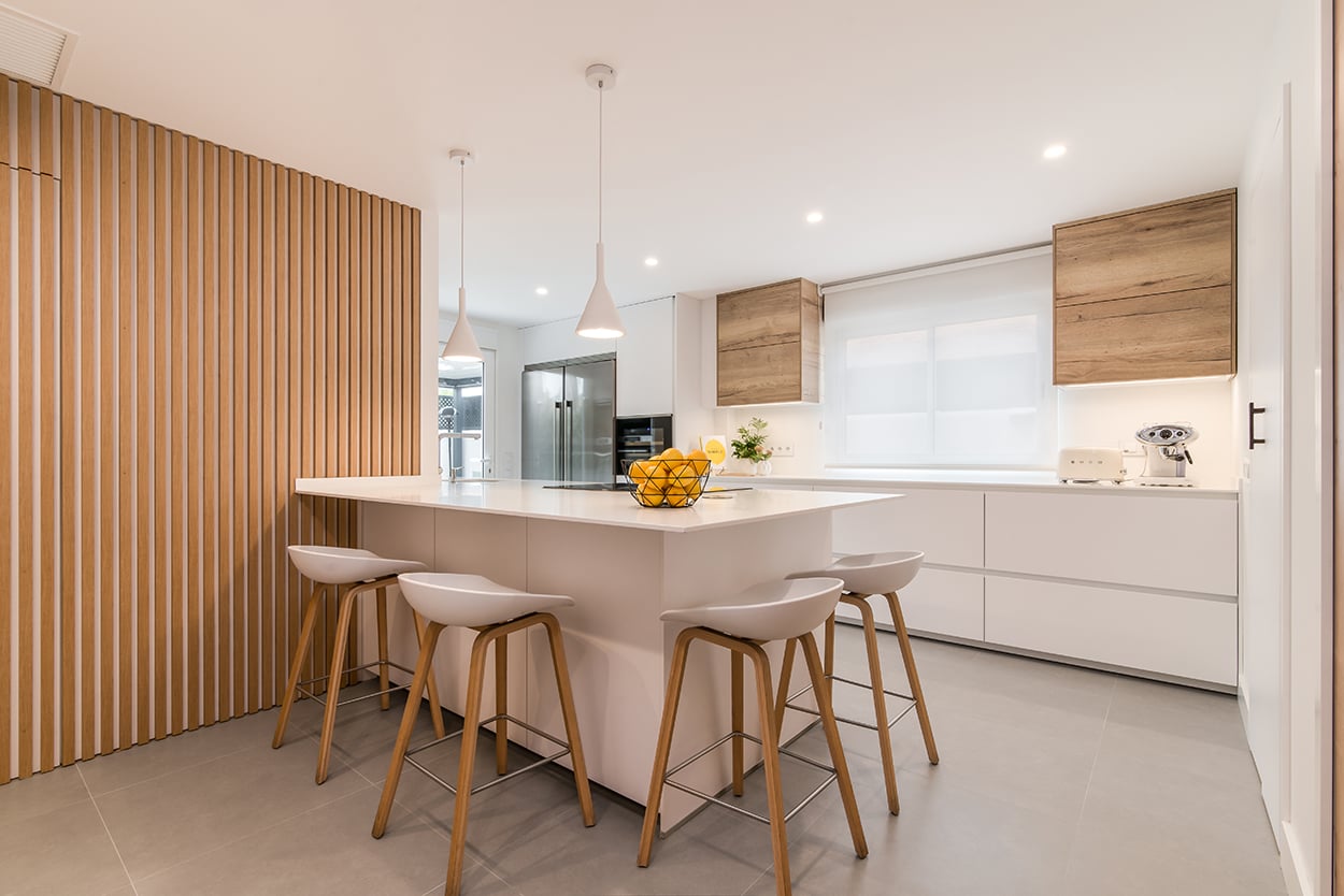 Cocina Santos blanca y roble con península