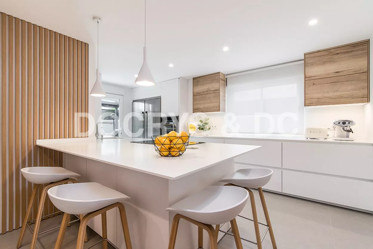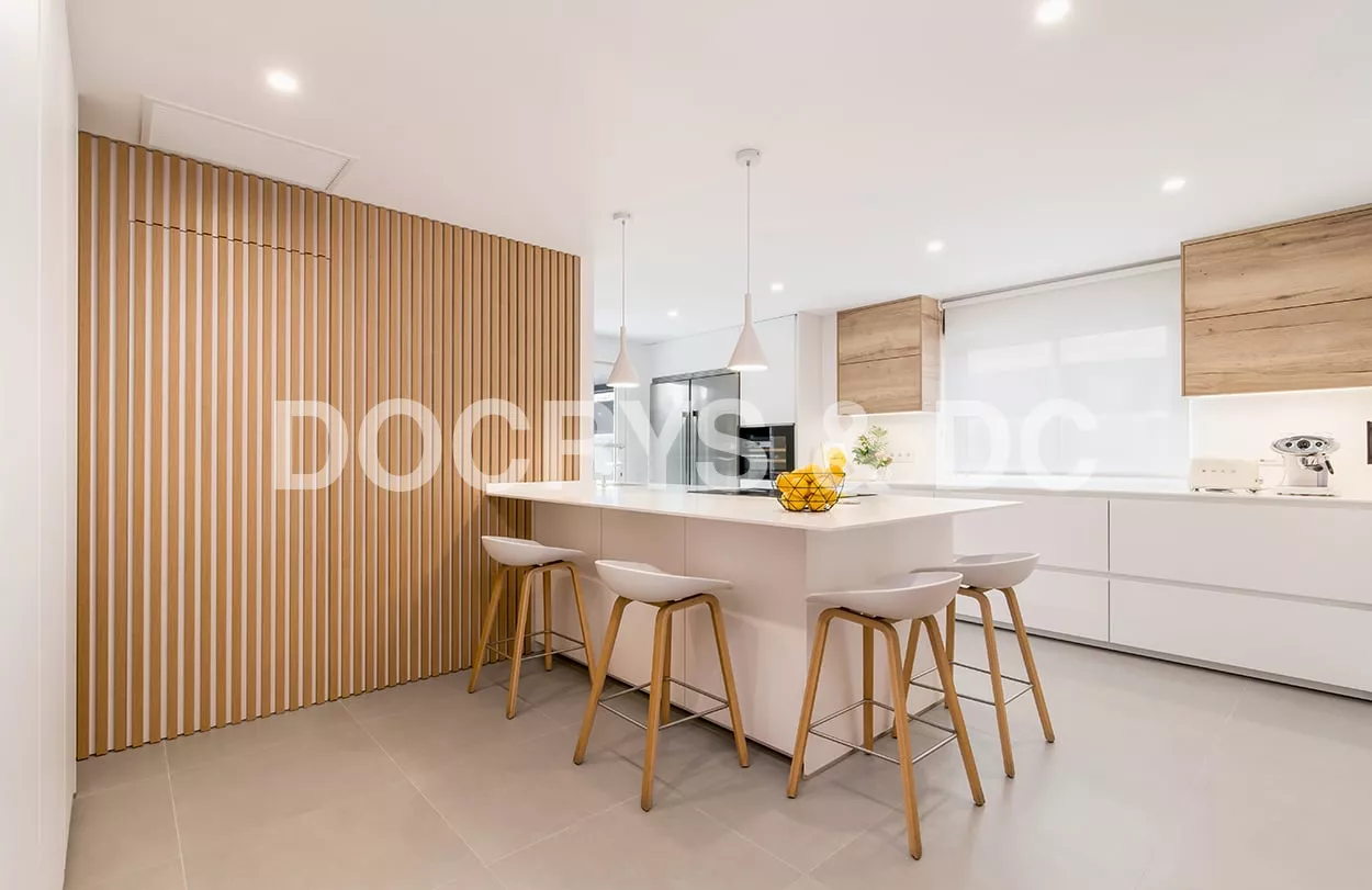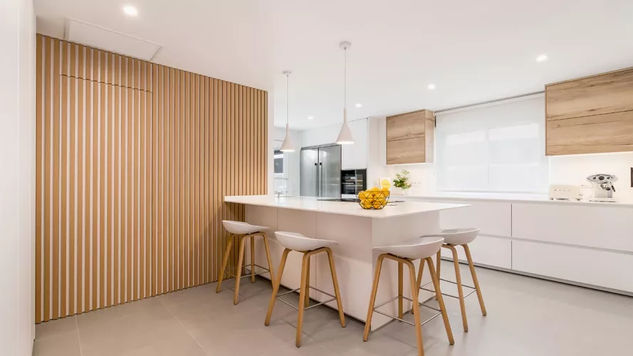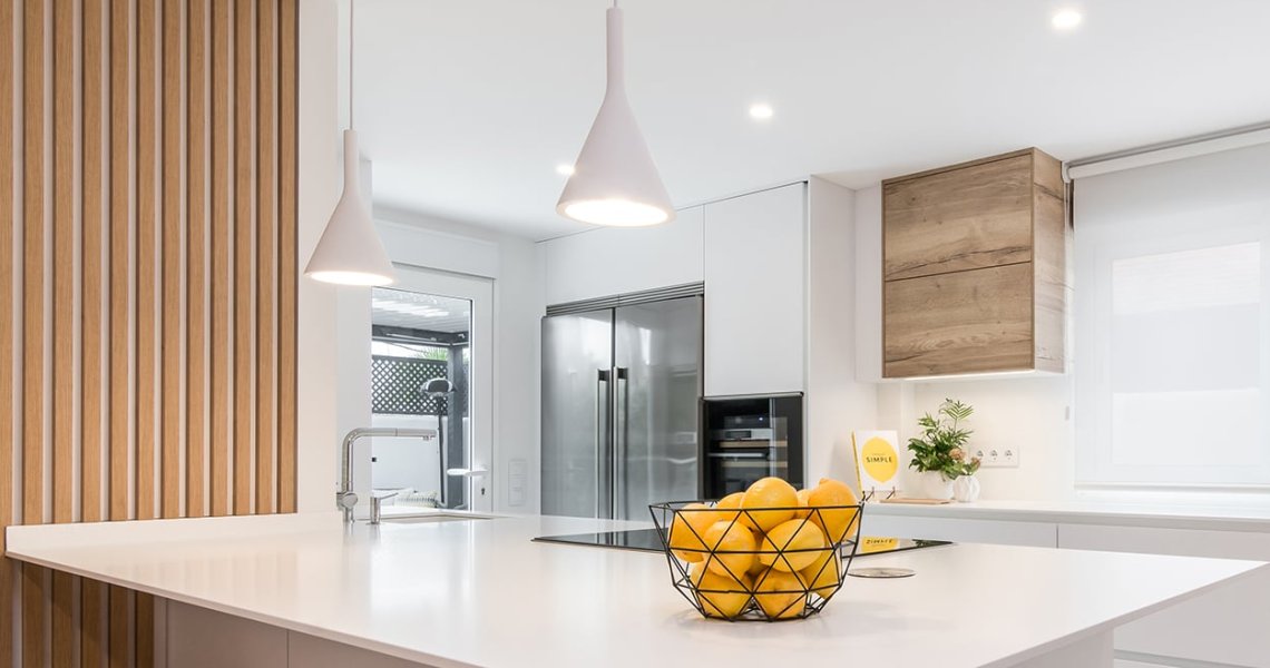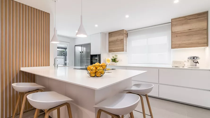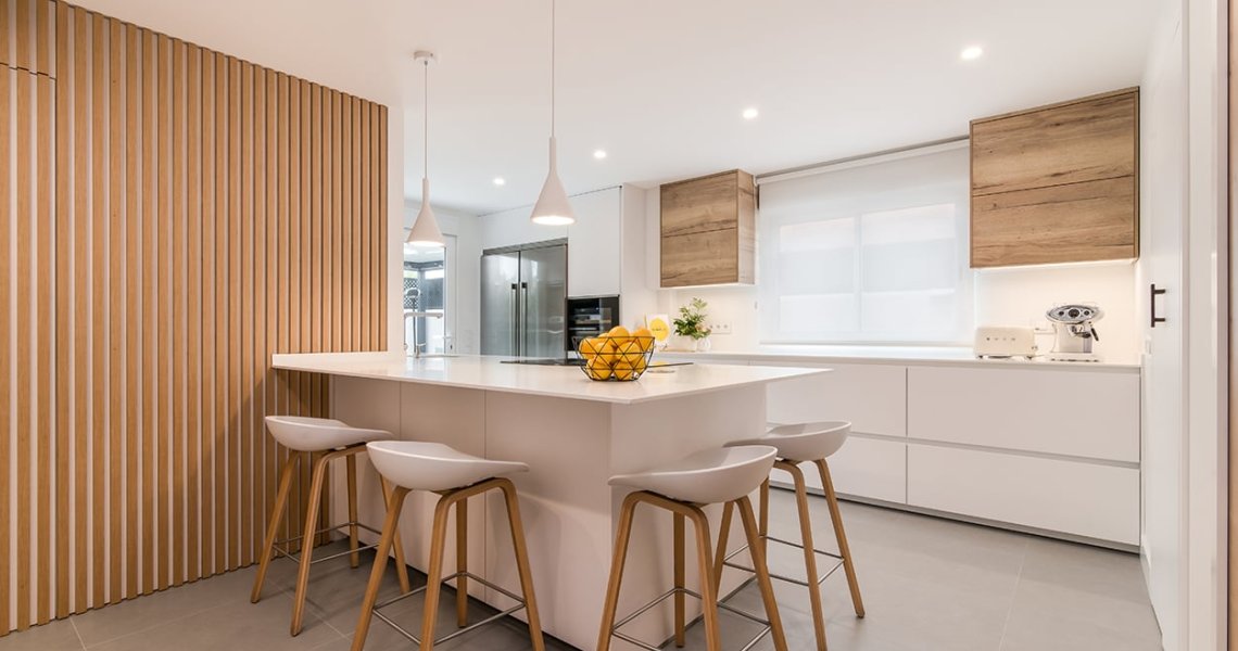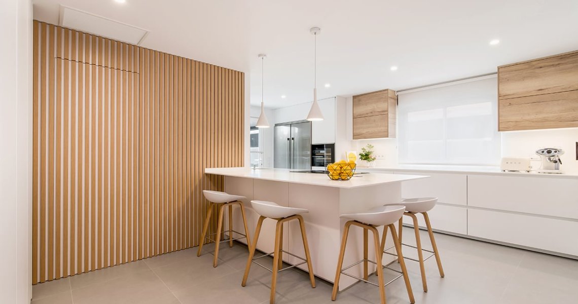 Cocina Santos blanca y roble con península