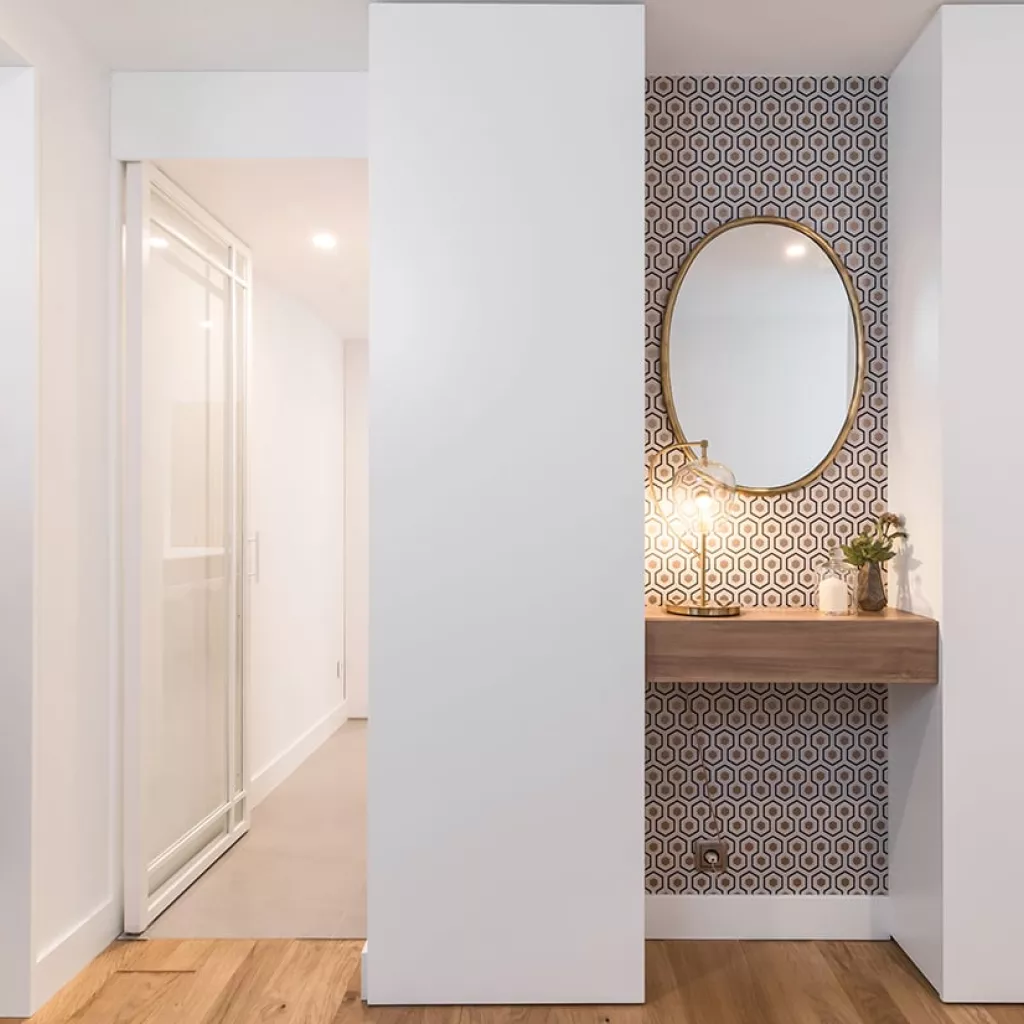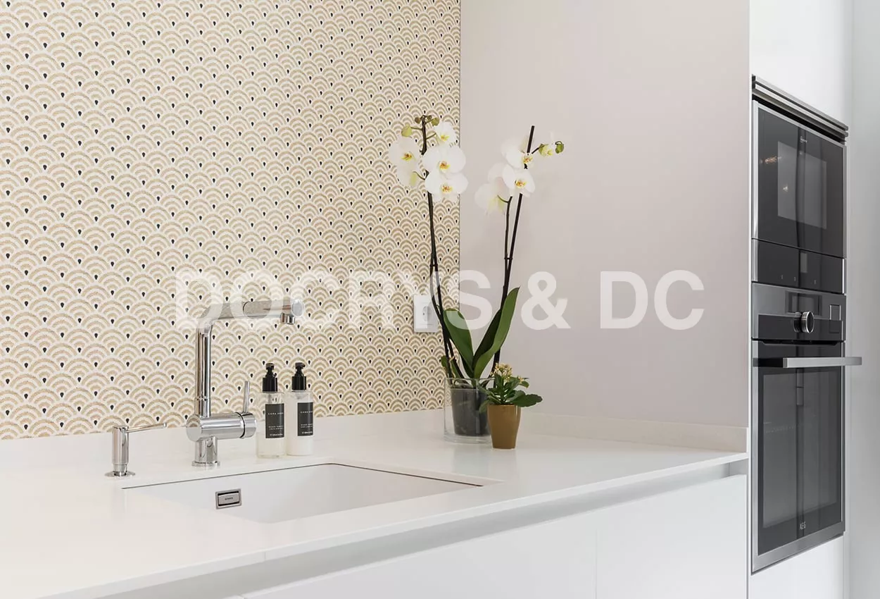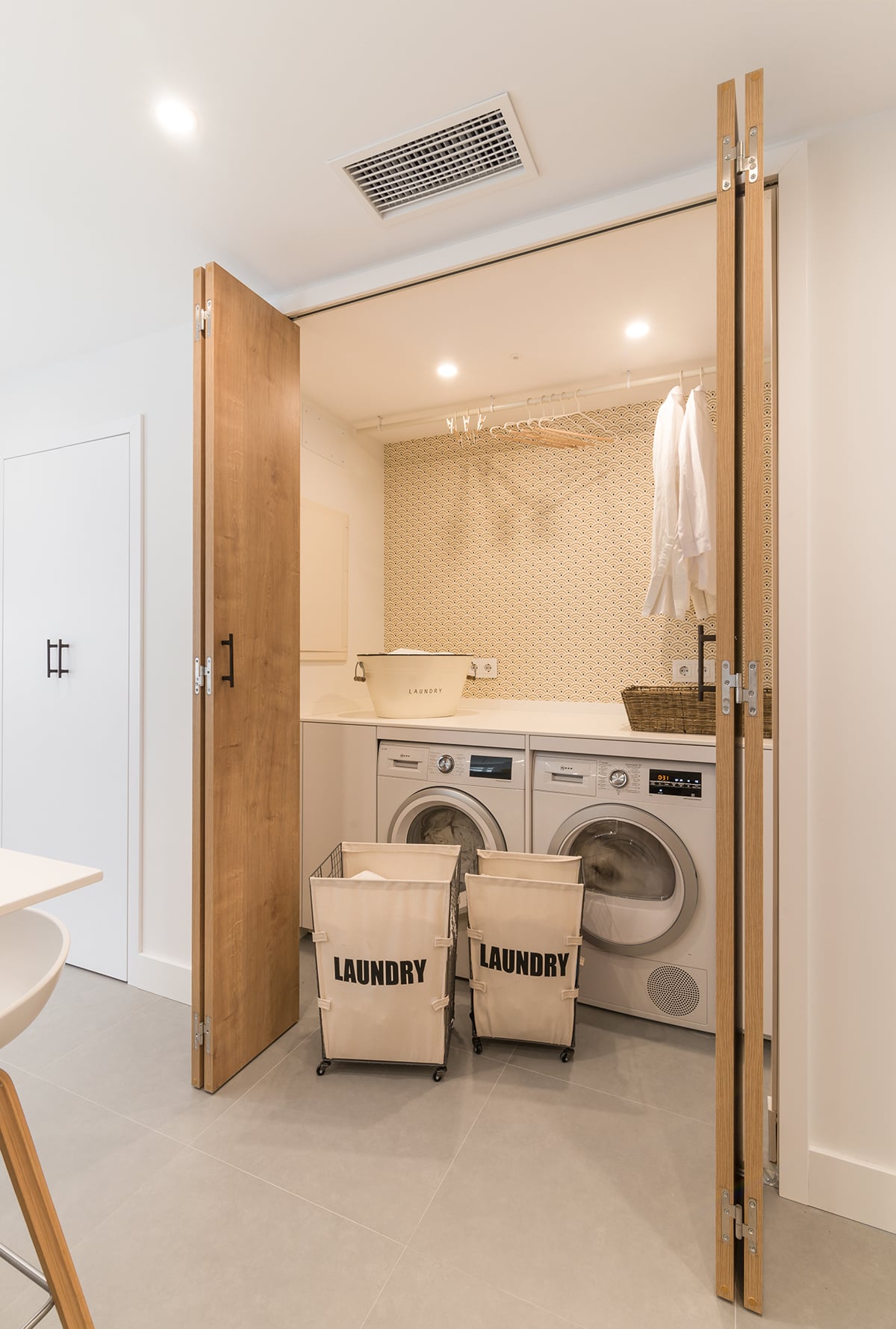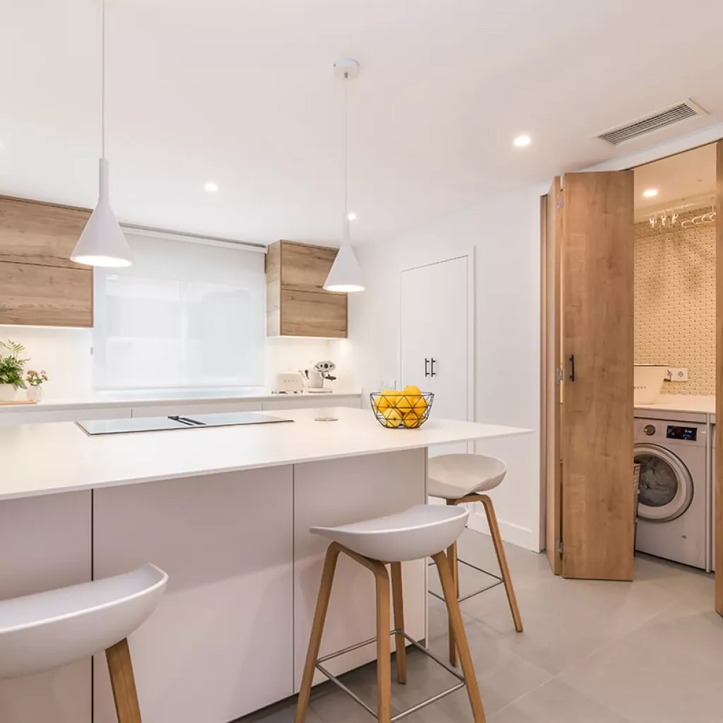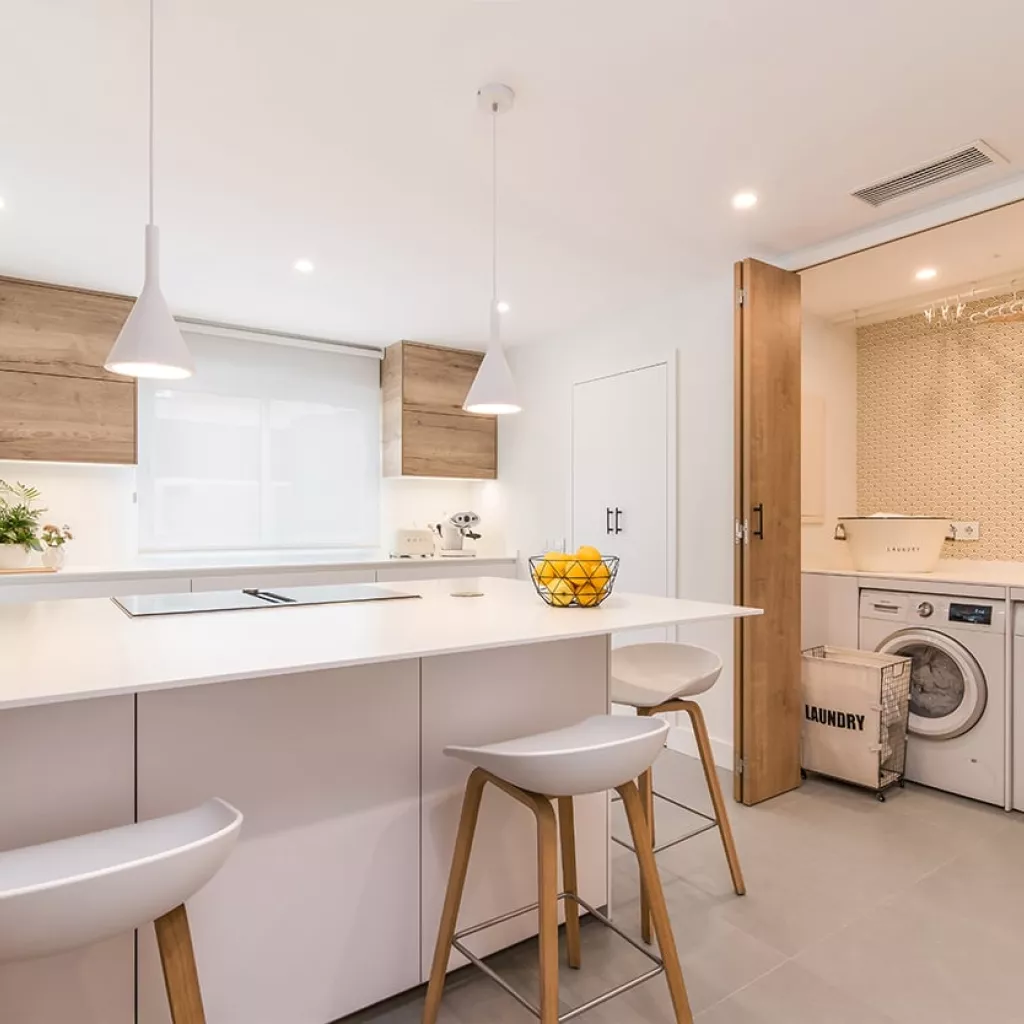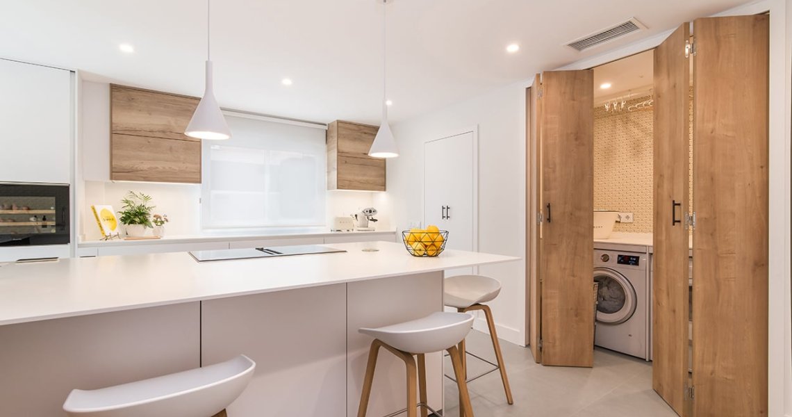 Además, cuenta con una pequeña lavandería escondida tras unas puertas escamoteables, permitiendo esconder lo que hay en su interior.