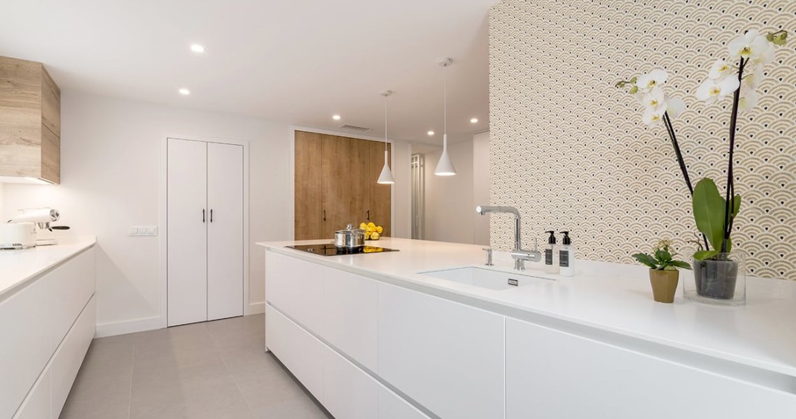 En el diseño de esta cocina Santos, es funcional, amplio y cómodo para el día a día, además de aportar muchísima luminosidad por el color de los muebles.