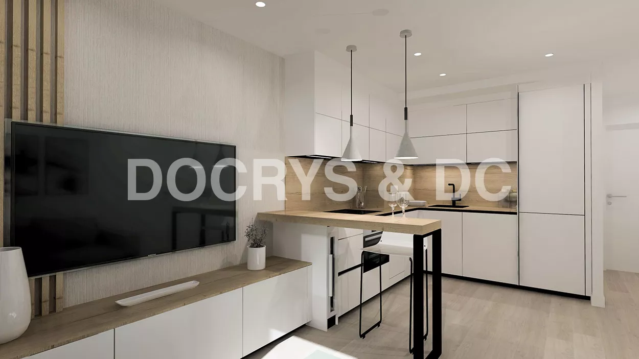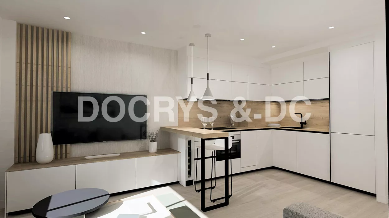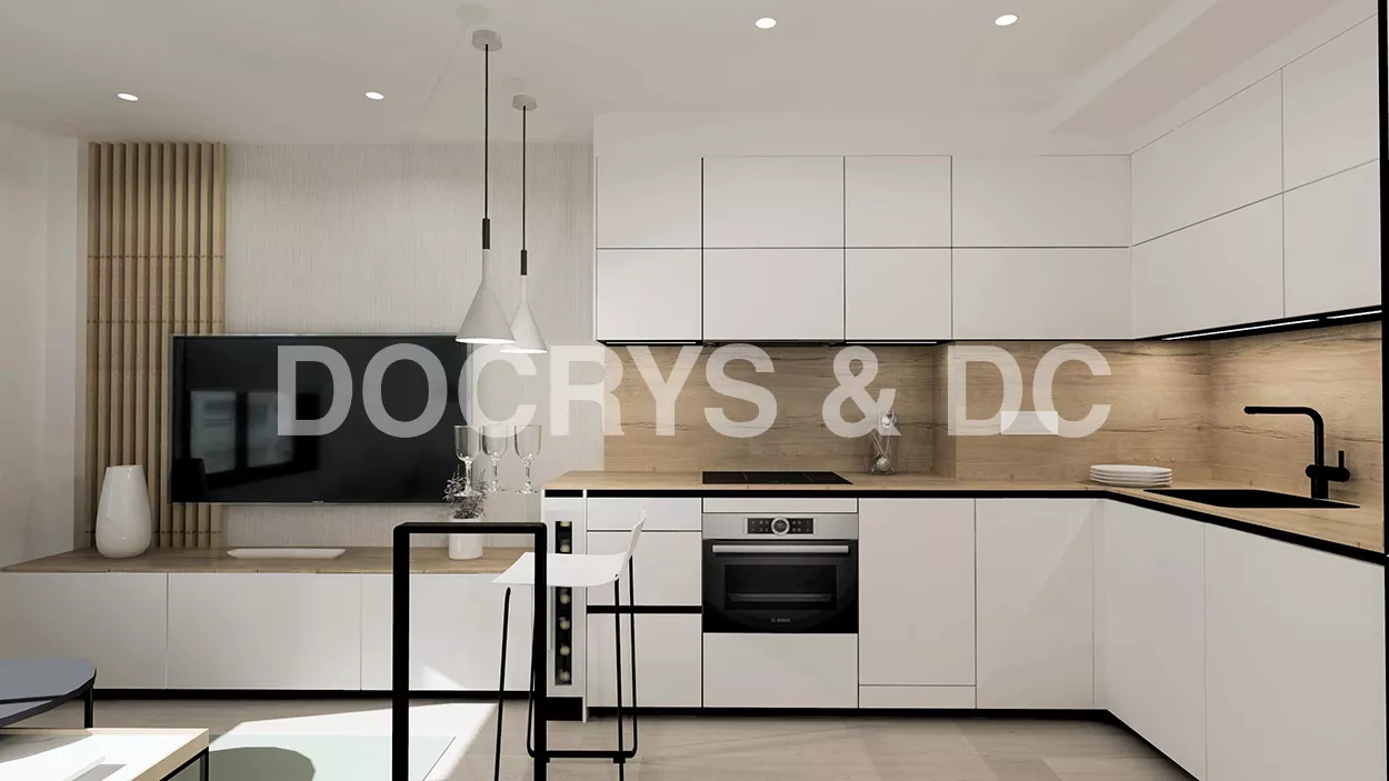 Una cocina blanca abierta al salón es un diseño que integra la cocina con el espacio del salón, creando un ambiente amplio y luminoso. En este diseño, la conexión entre la cocina y el salón hace que el espacio se vea mucho más grande, a pesar de ser una cocina de poco mobiliario, el espacio se siente más grande y luminoso. Contamos con muebles altos y bajos, zona de agua, y por otro lado horno, campana y placa.
