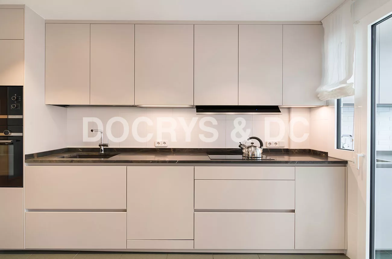 Cocina con hornacina en color Cashmere combinado con una encimera de granito. La tonalidad suave y neutral agrega una sensación de calma y elegancia al espacio, mientras que su versatilidad permite combinarlo con una variedad de estilos y materiales. Una cocina color Cashmere crea un ambiente acogedor y moderno al mismo tiempo. Su tono cálido y suave refleja la luz de manera sutil, haciendo que el espacio parezca más amplio y luminoso.