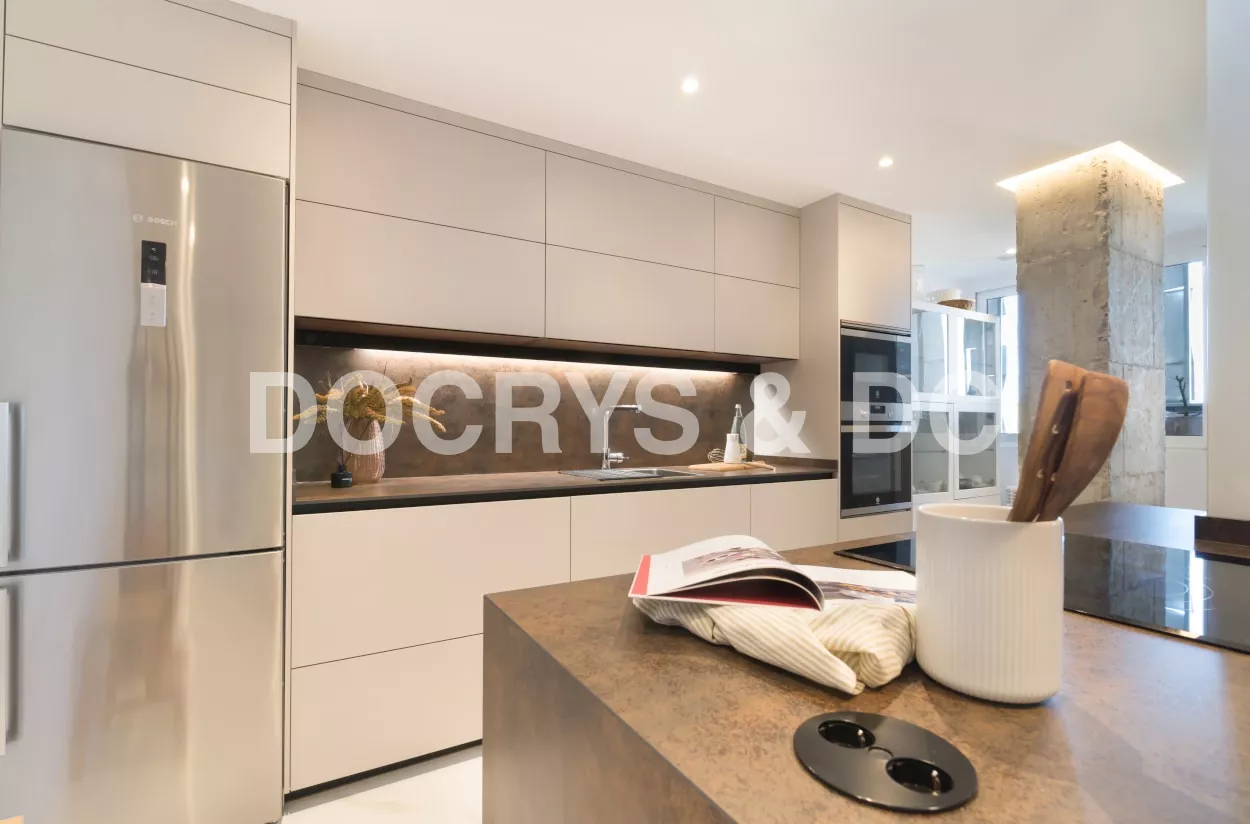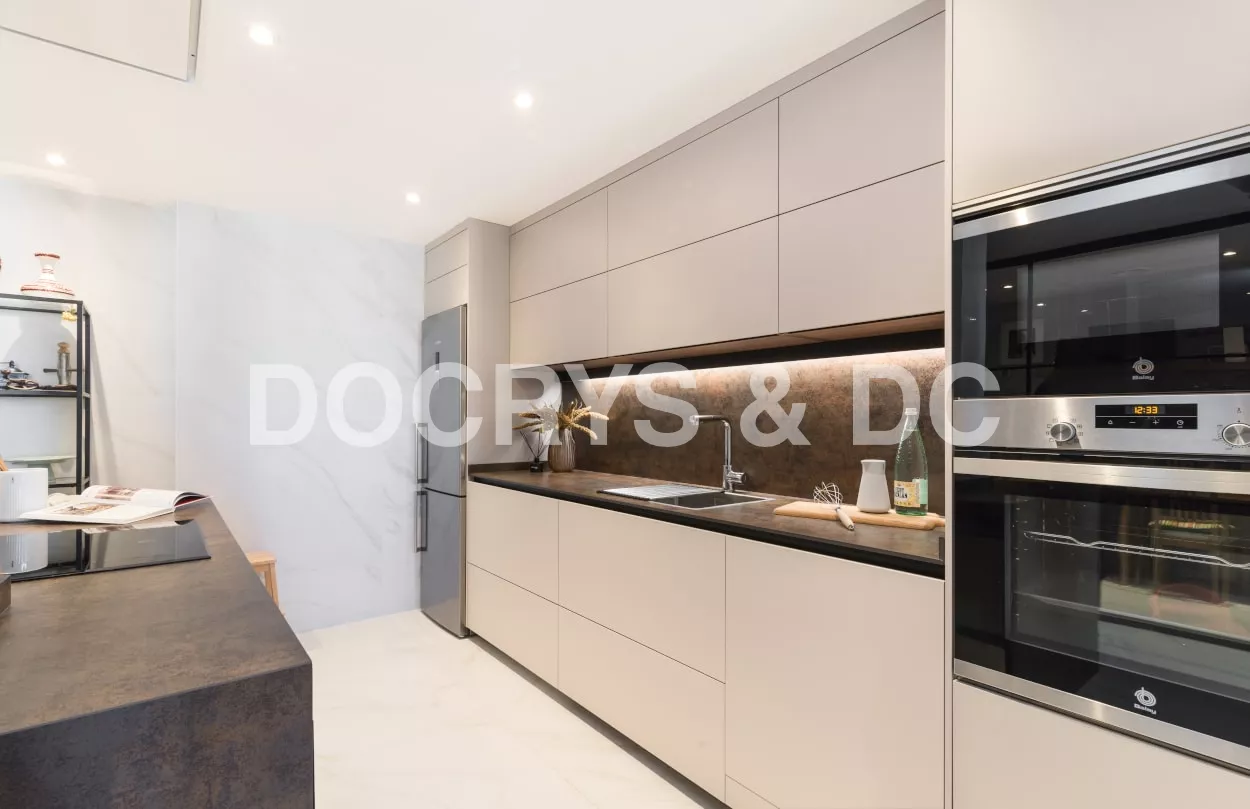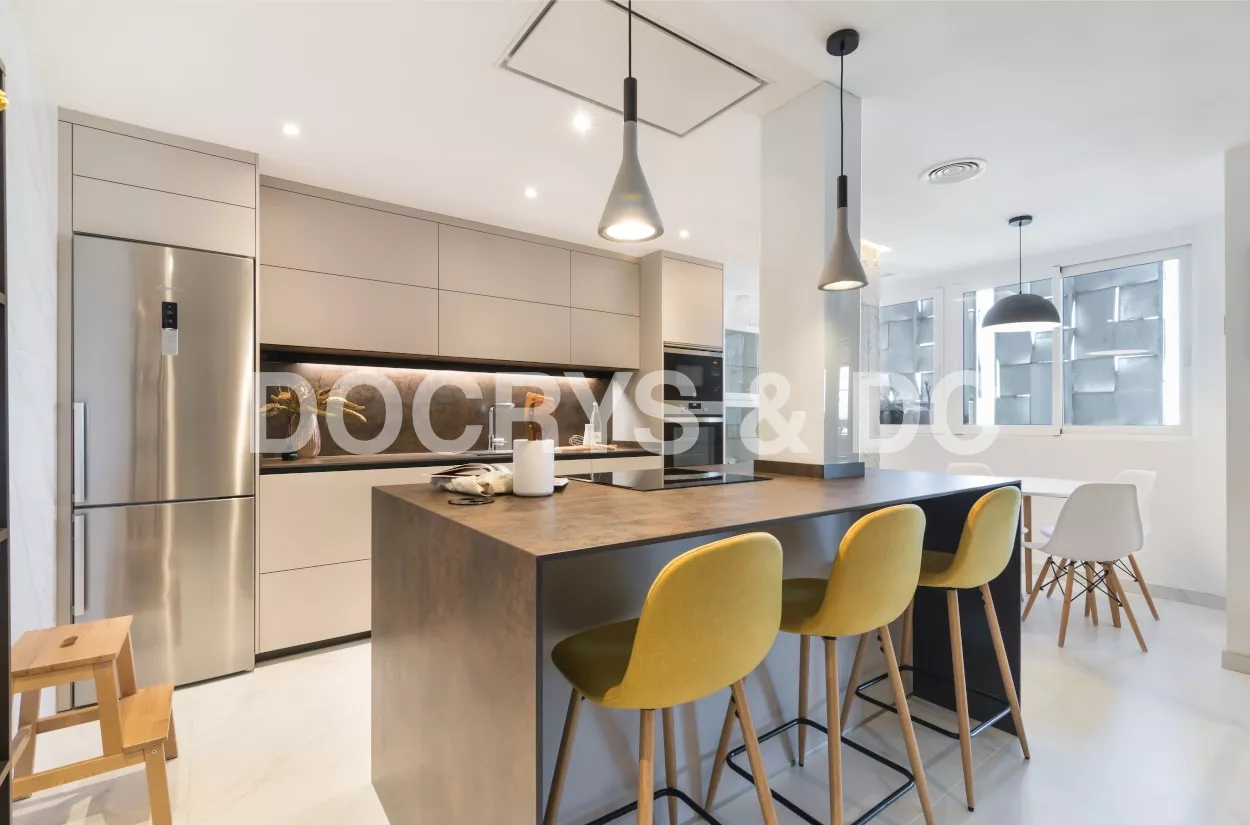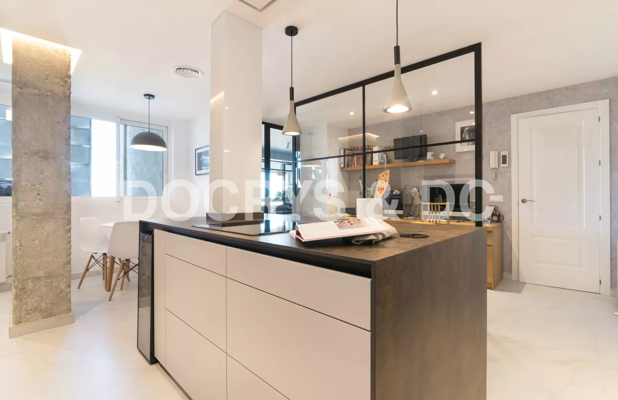 Esta cocina semiabierta al salón, forma parte del corazón de la vivienda, un espacio perfecto para compartir y disfrutar, sofisticado, elegante y luminoso.