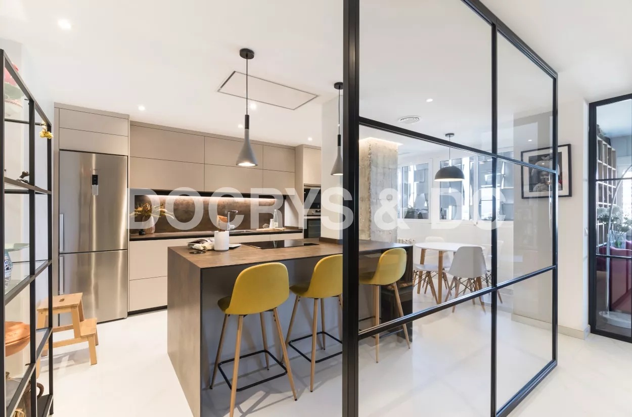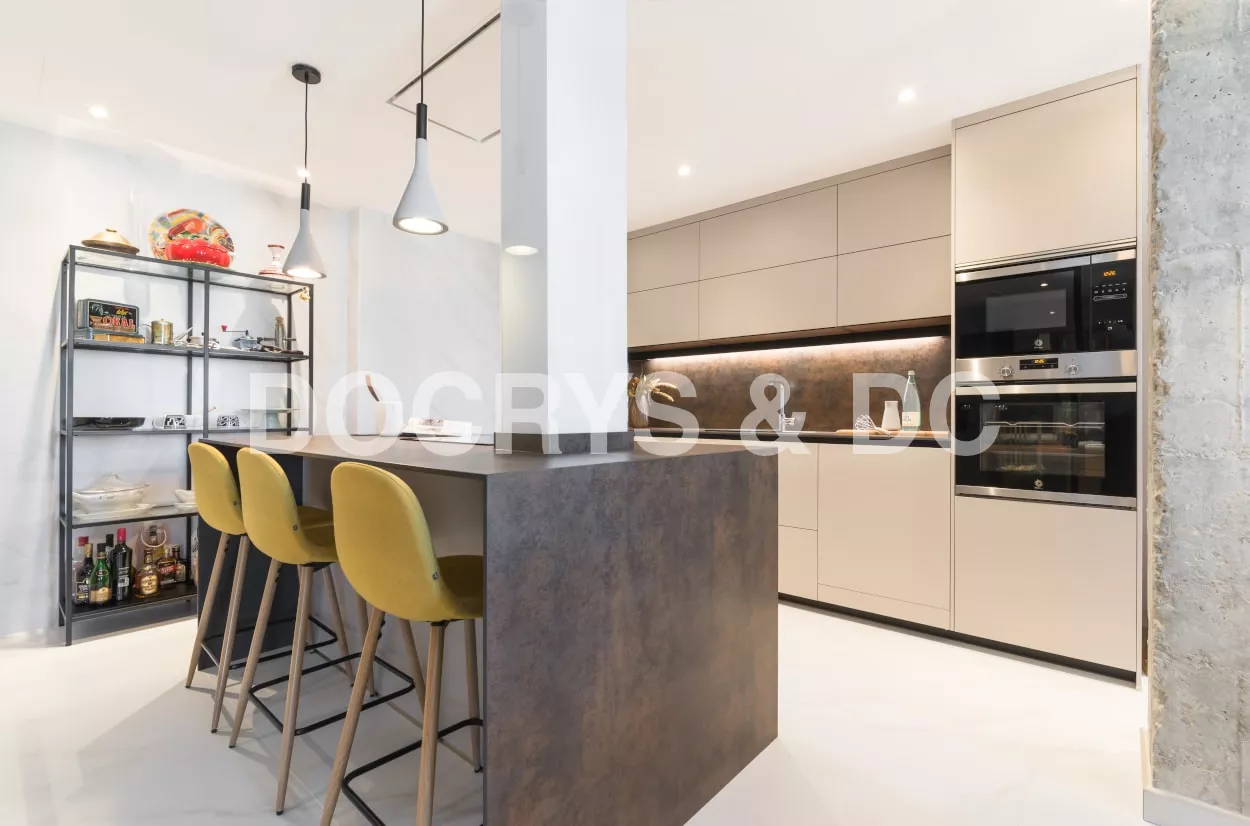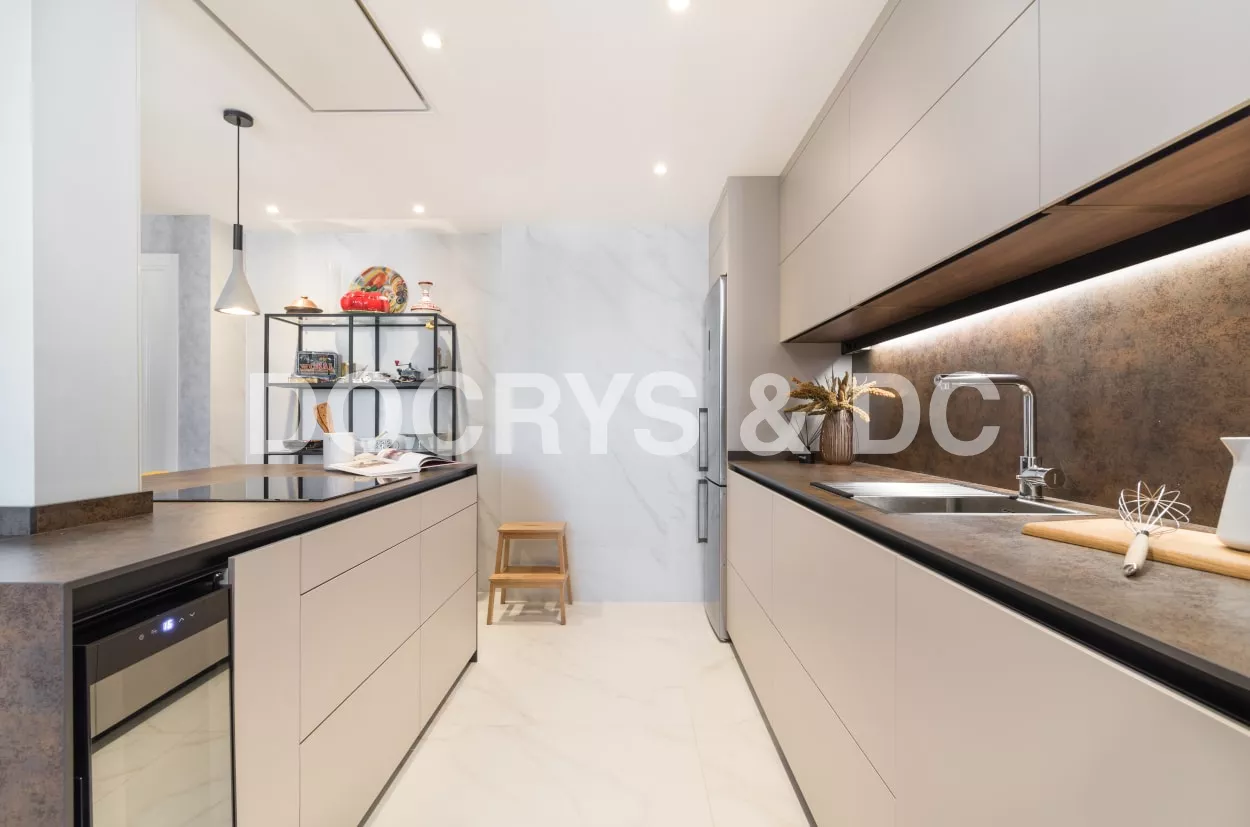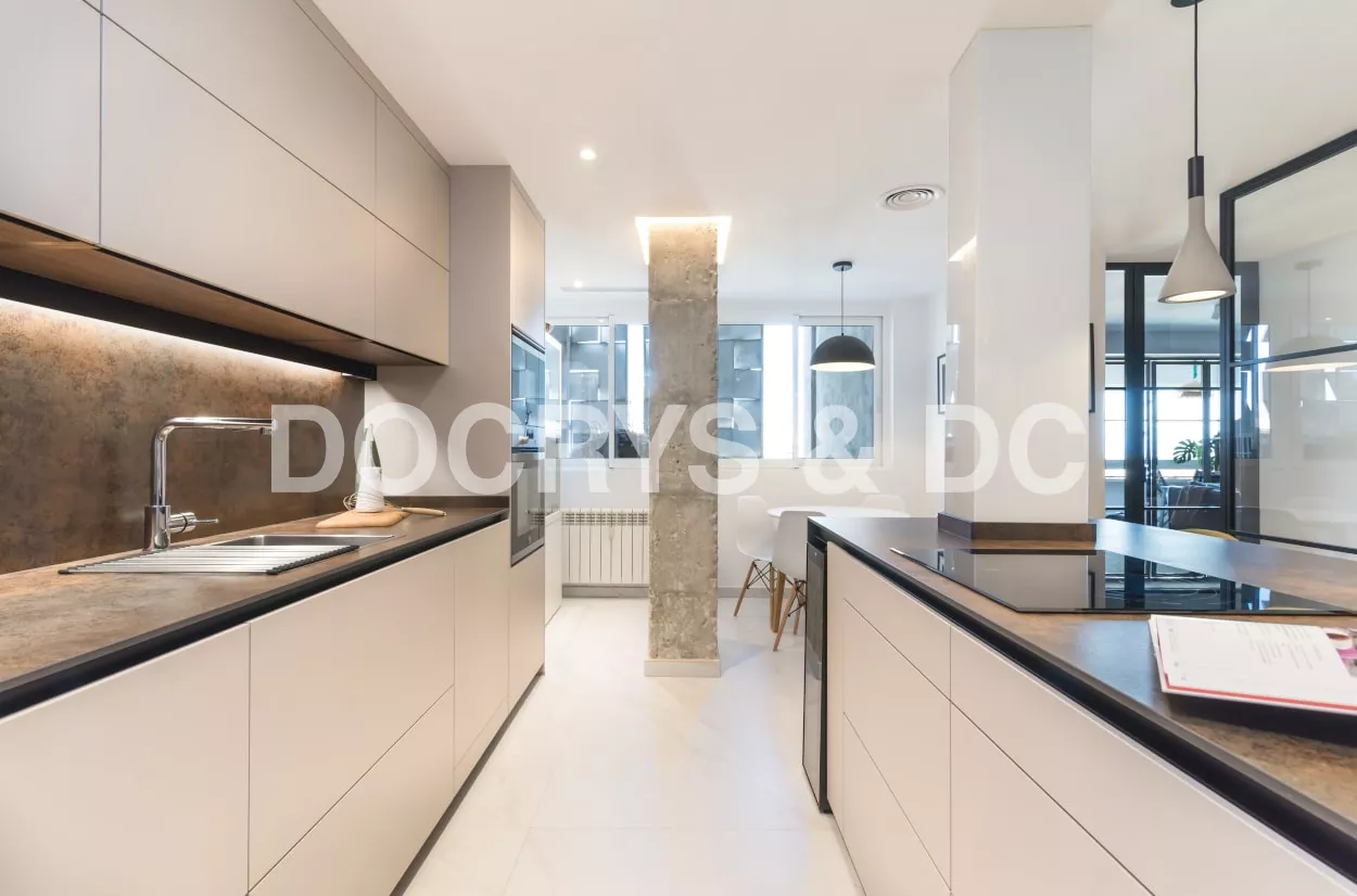 Esta cocina semiabierta al salón, forma parte del corazón de la vivienda, un espacio perfecto para compartir y disfrutar, sofisticado, elegante y luminoso.