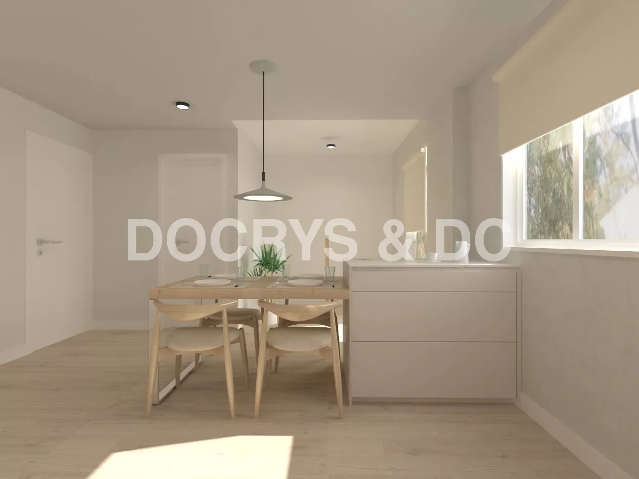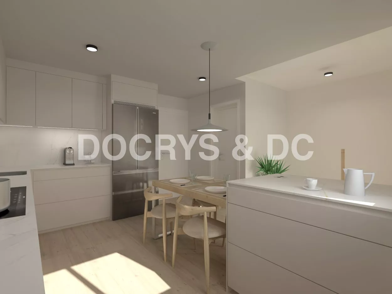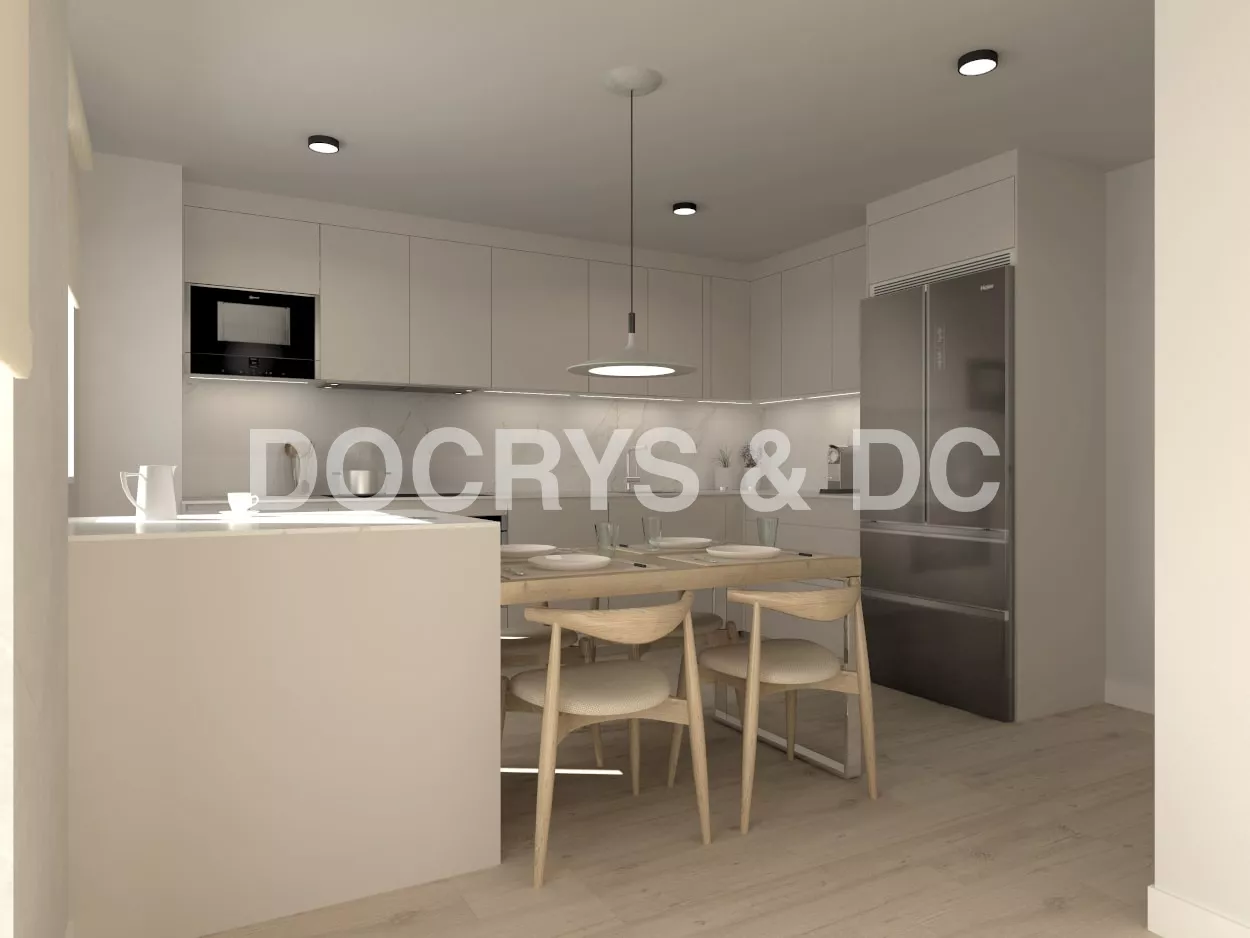 Además, cuenta con una pequeña península con una gran zona de trabajo, de está península se extiende una mesa de office para cuatro comensales.