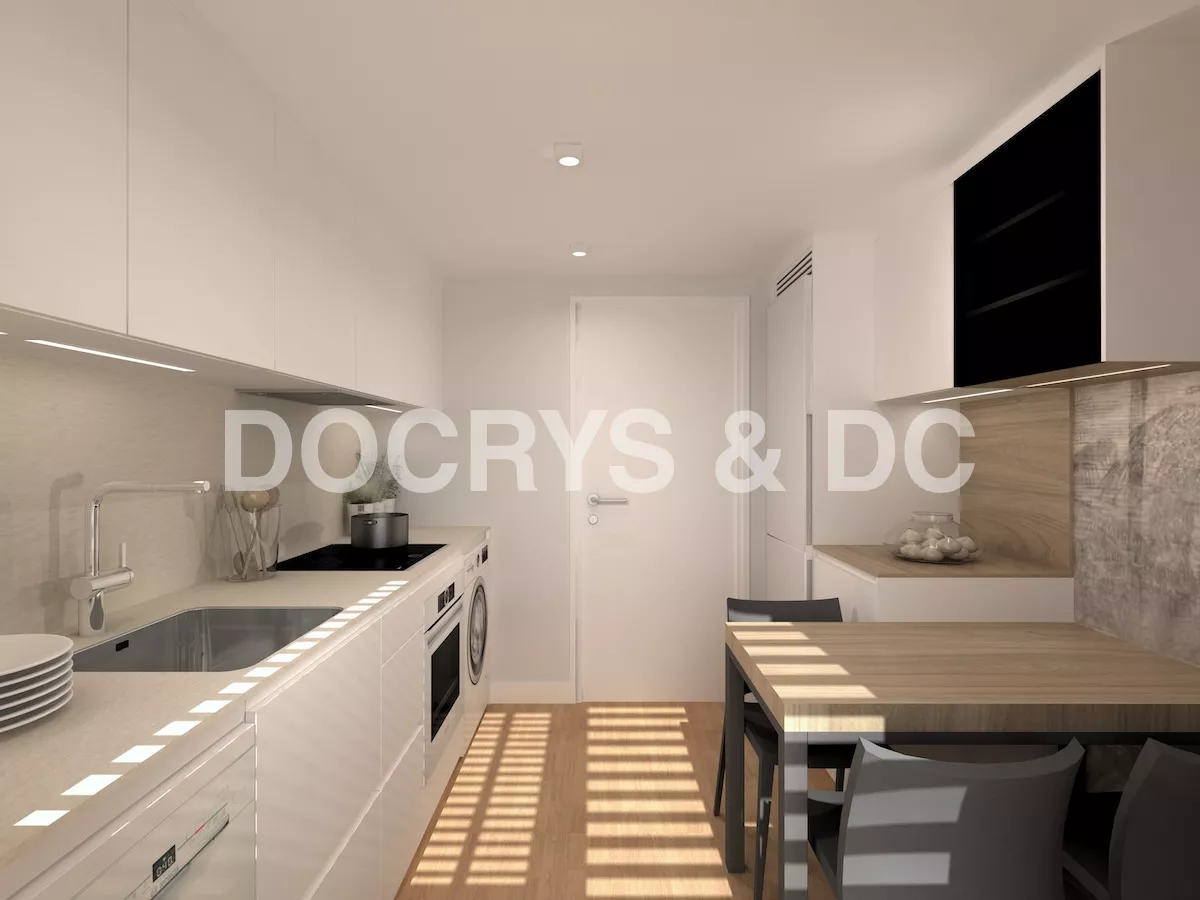 Proyecto finalizado de una cocina Santos en blanco Innsbruck de dos frentes que ofrece un diseño contemporáneo y donde hemos dispuesto de una encimera NEOLITH en blanco pacífico que van muy en sintonía con el color del mobiliario. Esta cocina irradia luminosidad y elegancia, mientras que el mesado Santos de laminado de madera de 6 ofrece un espacio acogedor para hasta tres comensales.