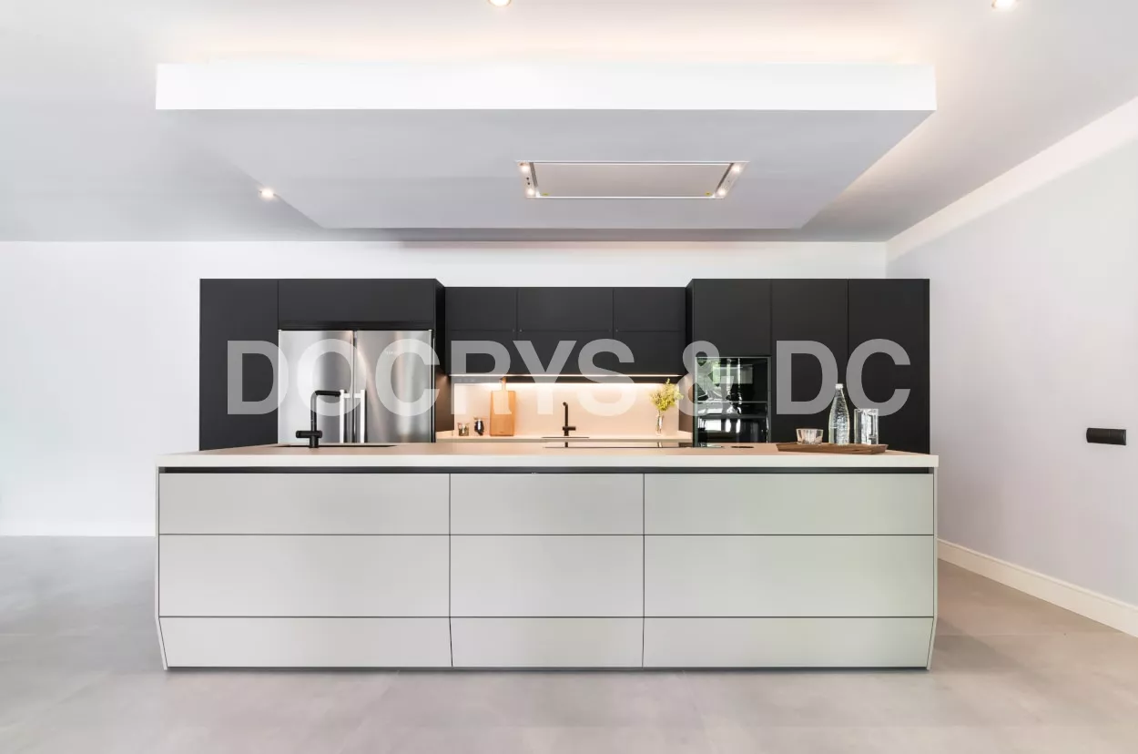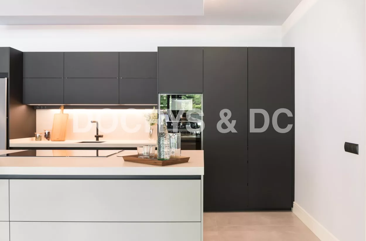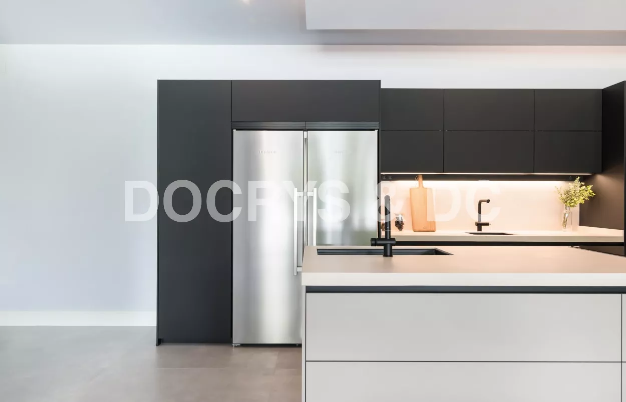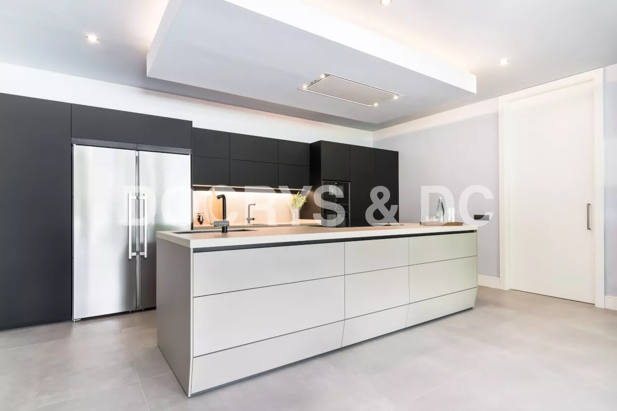 Esta cocina se ubica en una estancia de 17 m2 y está abierta al salón, creando un espacio de diseño, amplio, luminoso y funcional.