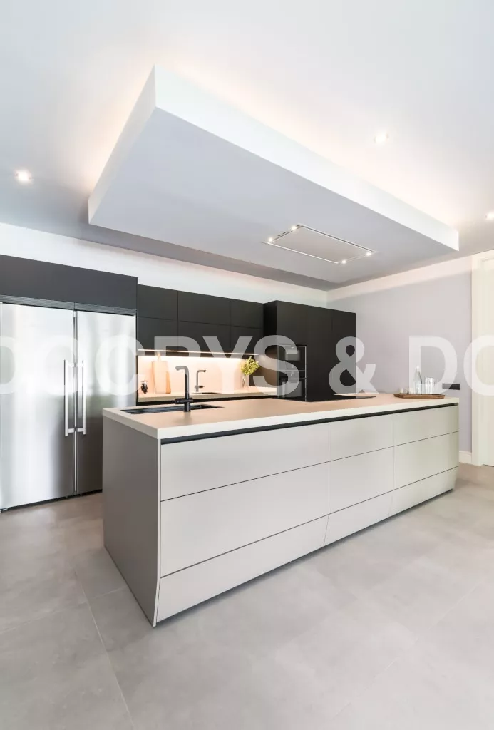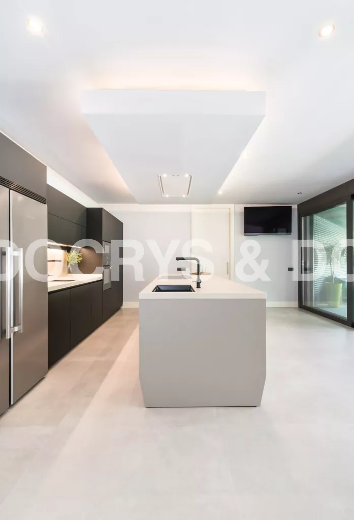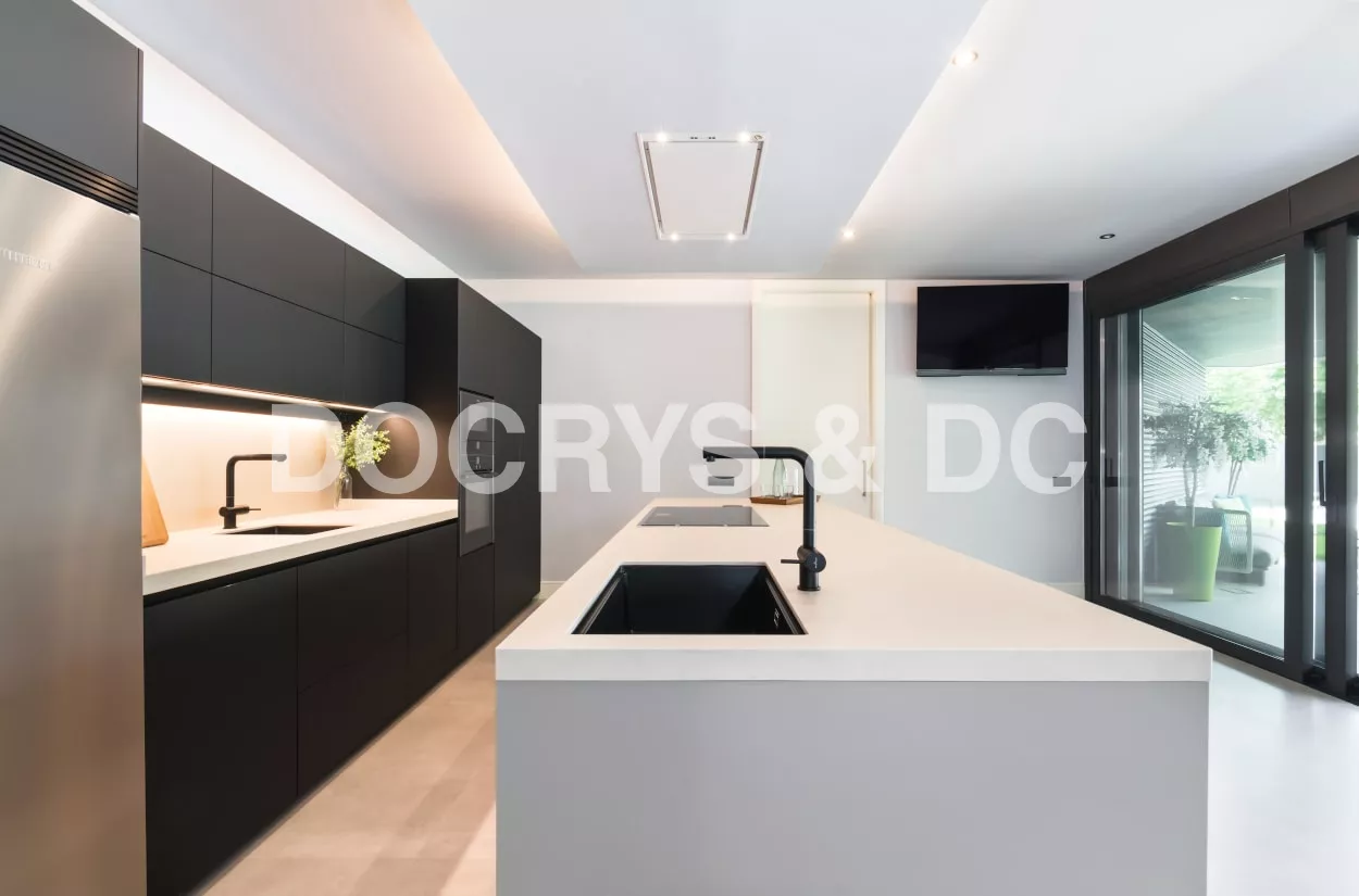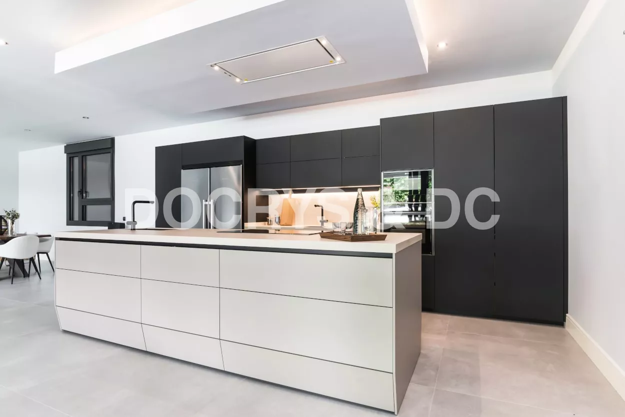 Esta cocina se ubica en una estancia de 17 m2 y está abierta al salón, creando un espacio de diseño, amplio, luminoso y funcional.