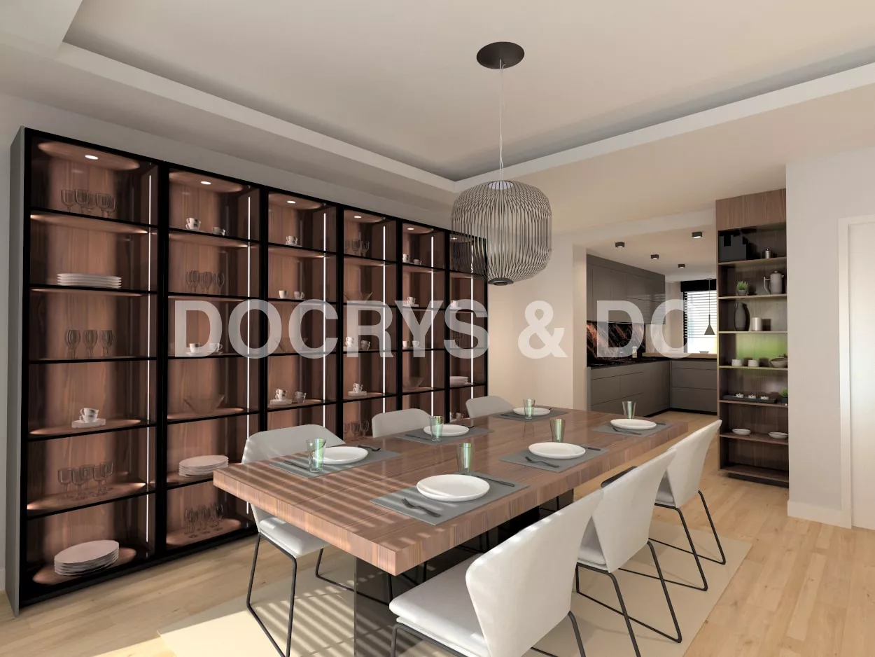 Esta cocina está abierta al salón, donde se encuentra una gran vitrina perfecta para almacenar la vajilla.