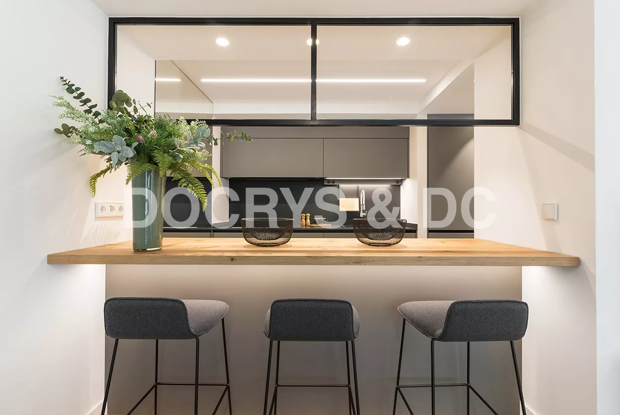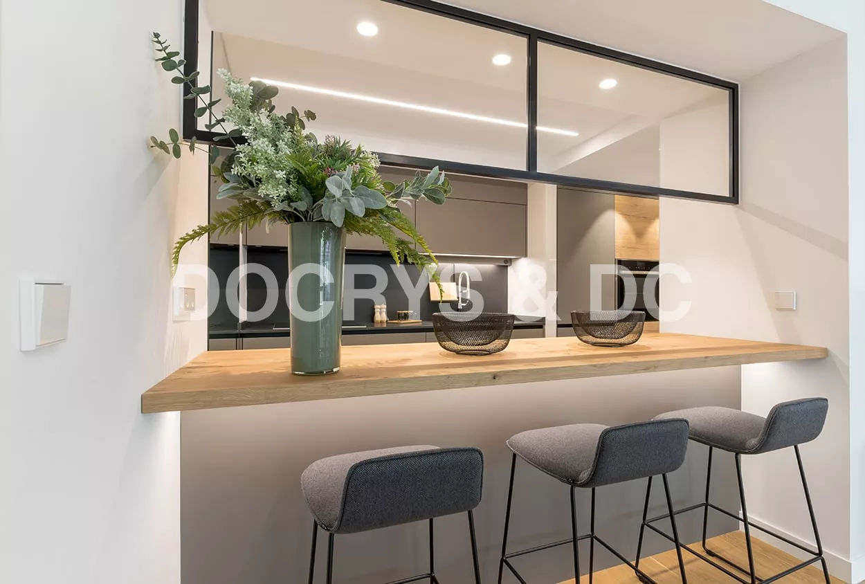 Además, cuenta con una barra, punto de conexión entre el salón y cocina, que hace las veces de zona de trabajo y zona para comidas rápidas.