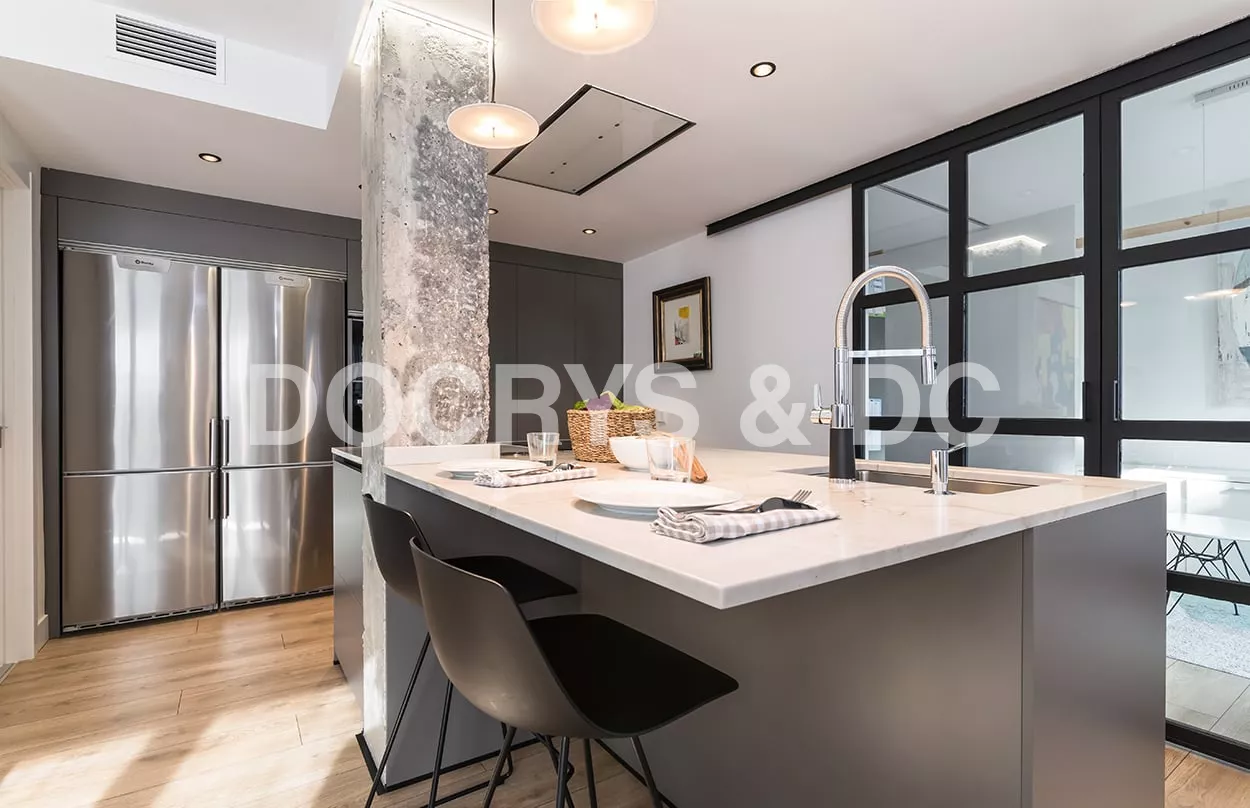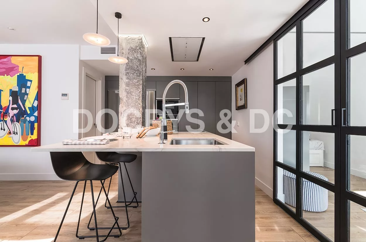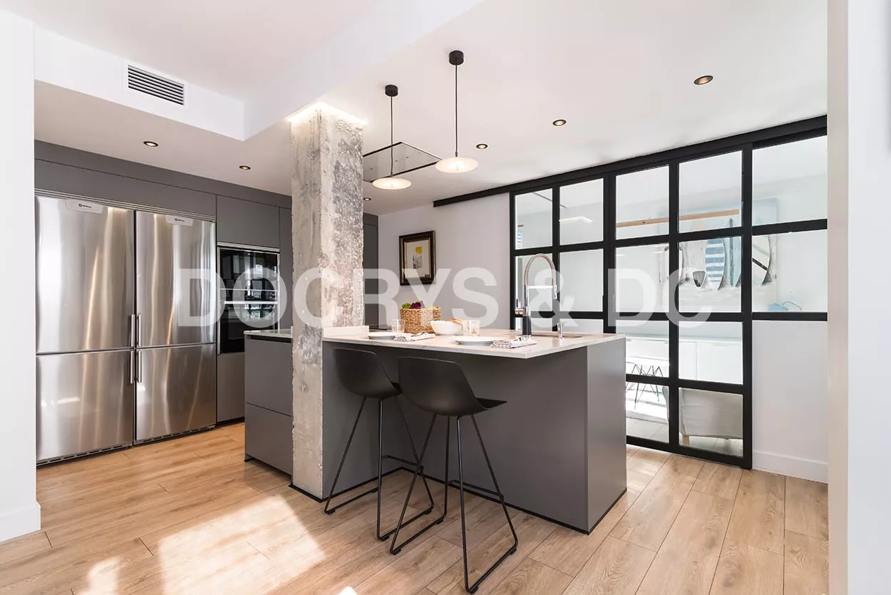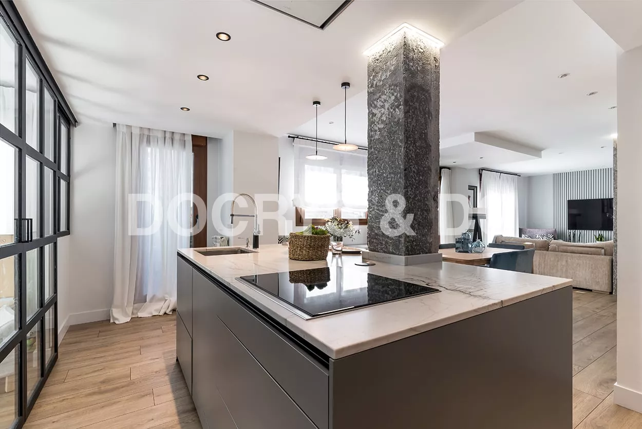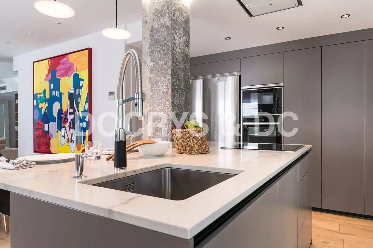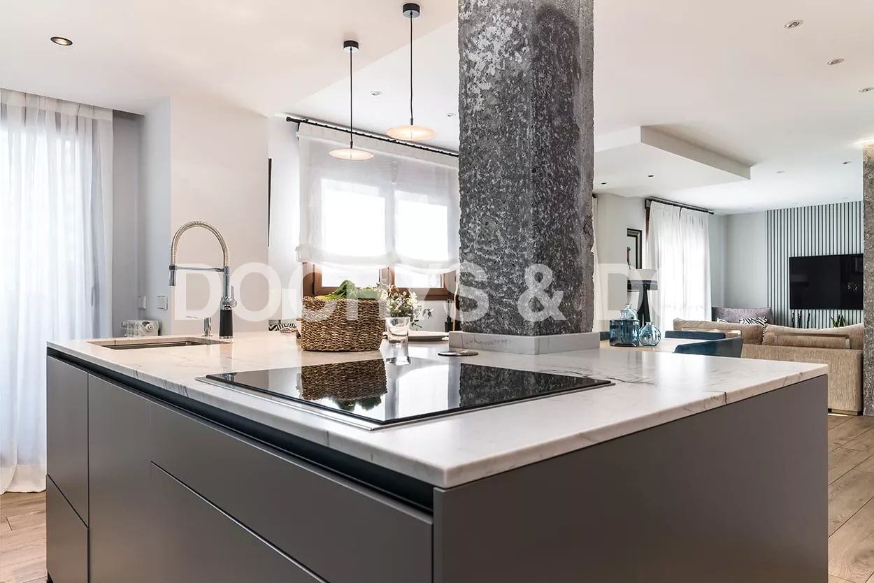 Esta cocina se encuentra abierta al salón, creando un espacio perfecto para compartir momentos en familia y amigos.