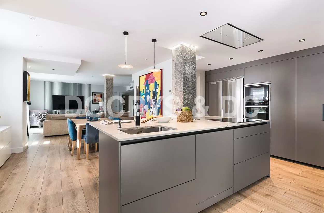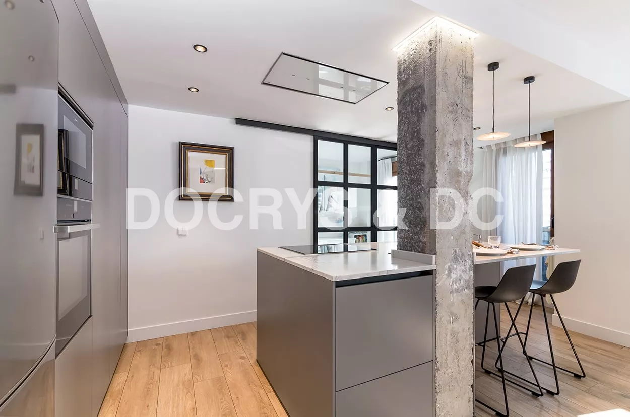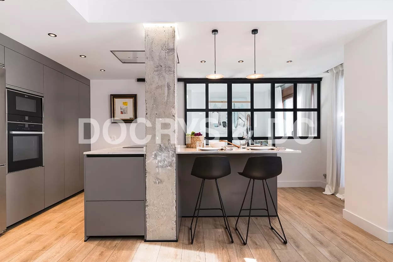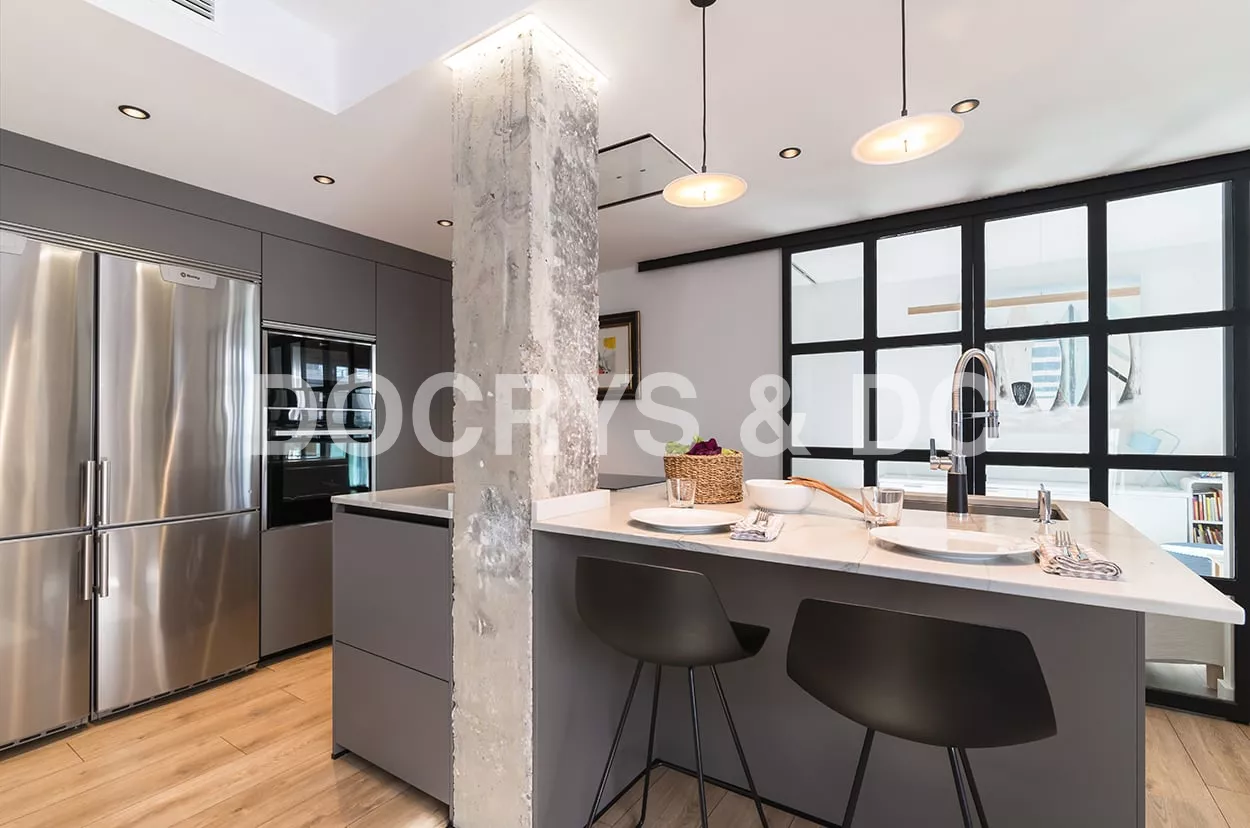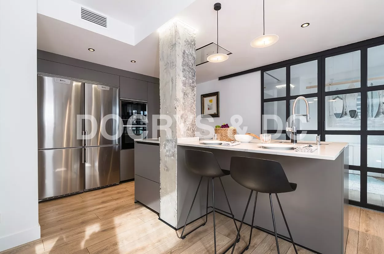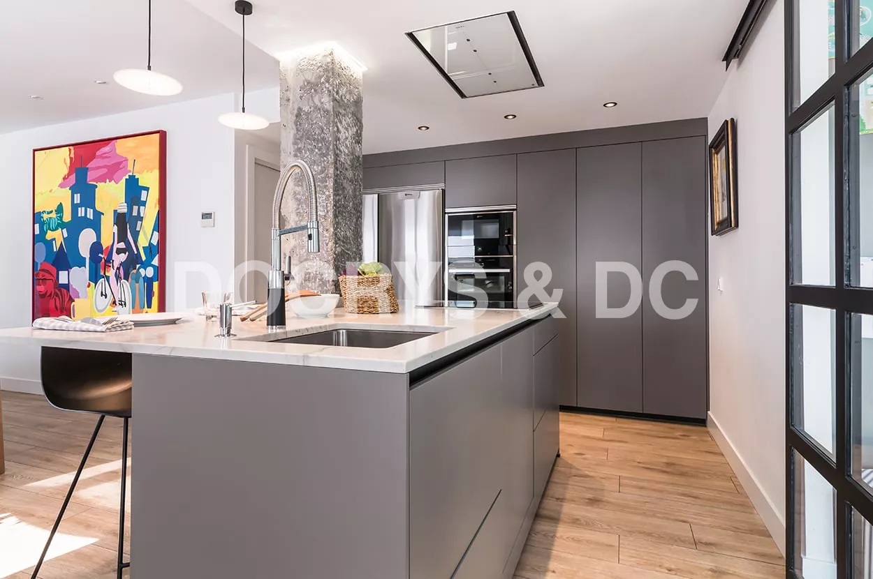 Esta cocina se encuentra abierta al salón, creando un espacio perfecto para compartir momentos en familia y amigos.